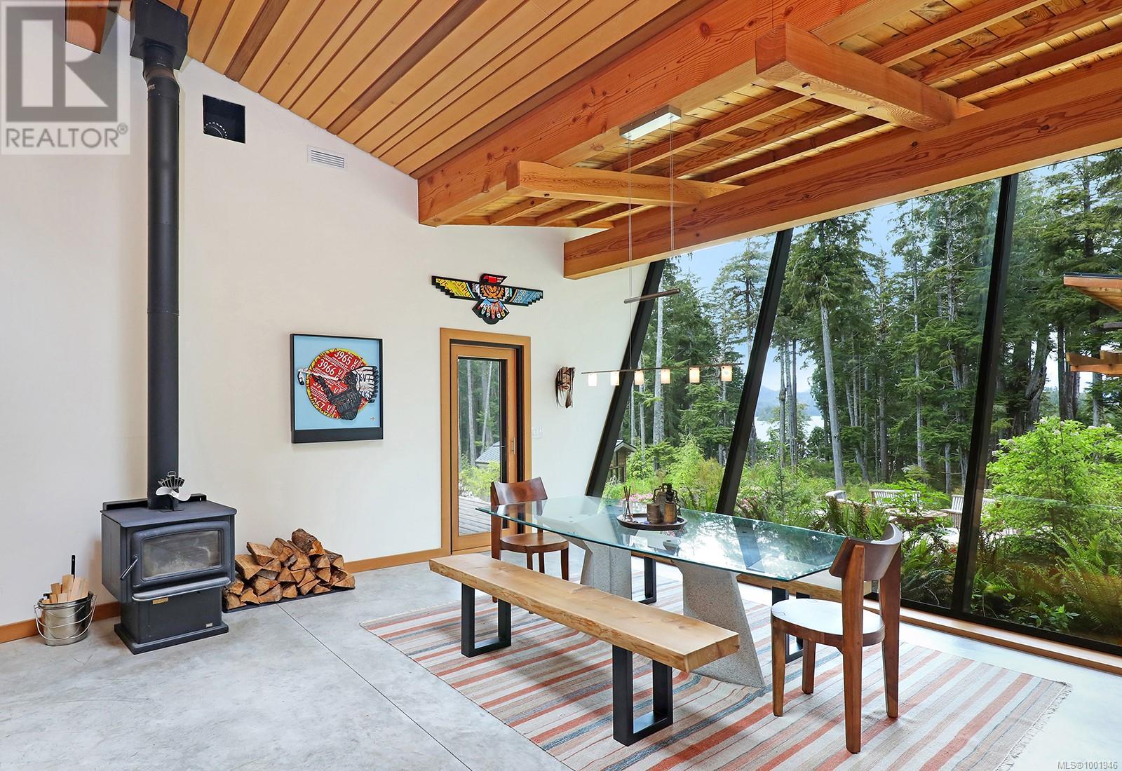 Tucked away on the wild West Coast lies a 21.5 acre private island sanctuary where nature sets the rhythm of life, from wind in the cedars to waves crashing on the rocky shore. More than a destination, this is the definition of the West Coast lifestyle: serene, self-sufficient, and soul-stirring. At its heart is a cozy, architect-designed home with three bedrooms and two bathrooms, crafted for comfort and connection to the land. Expansive windows frame unparalelled coastal views, while a nearby guest cabin with a loft offers space for friends and family. Five unique sitting areas invite quiet moments and stunning views of the mossy forests, sunlit coves, and starlit skies. A trail system winds through the lush island, encouraging daily exploration and reflection. Completely off-grid, the island blends sustainable living with modern ease, freedom and a lighter footprint. Whether you're gathering, or simply being, this is where the wild meets the wonderful. (id:2469)