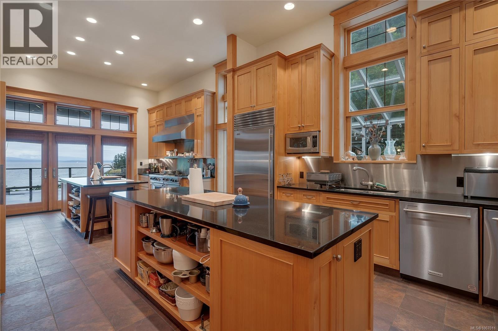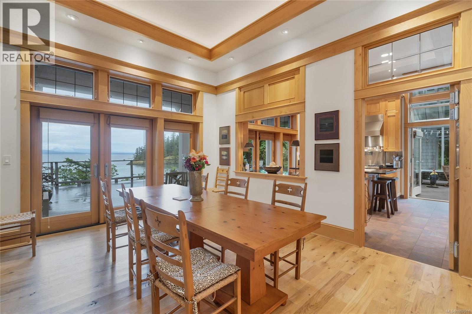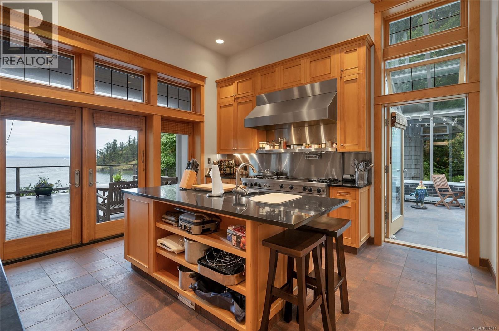 Unprecedented oceanfront estate! Overlooking the waters of Hyacinthe Bay on the east coast of Quadra Island, this 8.77 acre property features an oceanfront main residence fronted by a spacious deck, a duplex oceanfront guest residence, a four car garage with large 1 bedroom upper suite, a unique 1 bedroom with loft guest cabin, a boathouse, and a dock with power. The driveway opens into a circular paving stone parking area, with the garage to the right and the main residence to the left. Down a small path between the two is the guest duplex. A large path leads from the main residence and parking area through the lawn to the small guest cabin and then to the boathouse and dock. The property has been lightly landscaped near the living areas but is mostly in its natural state. The 7,315sqft, three floor main residence was built to accommodate a bed and breakfast, and as such has many extra touches which elevate the luxuriousness and comfort. The quality of material and build is immediately apparent, with attractive blond wood trim throughout the home and touches such as built-in units, transom windows over most of the doors, fireplaces in each bedroom, and a state-of-the-art kitchen. All custom-built by a respected local builder and reflecting a masterwork of design and craftsmanship. With approx. 1792ft of oceanfront, the property takes in two bays and overlooks two islets separated by a small channel from the property. There is an oyster lease in this channel, visible at low tide. This is an amazing area for kayaks and paddle boards. This home is made for multi-generational living and for large groups to enjoy. With the addition of the other buildings on the property, this would be ideal as a corporate retreat for entertaining guests and/or for hosting staff, or running as a business that offers retreats of various kinds (kayaking tours, yoga retreats, relaxation weekends, etc). This is one of the most versatile and stunning properties you will find on the islands! (id:2469)