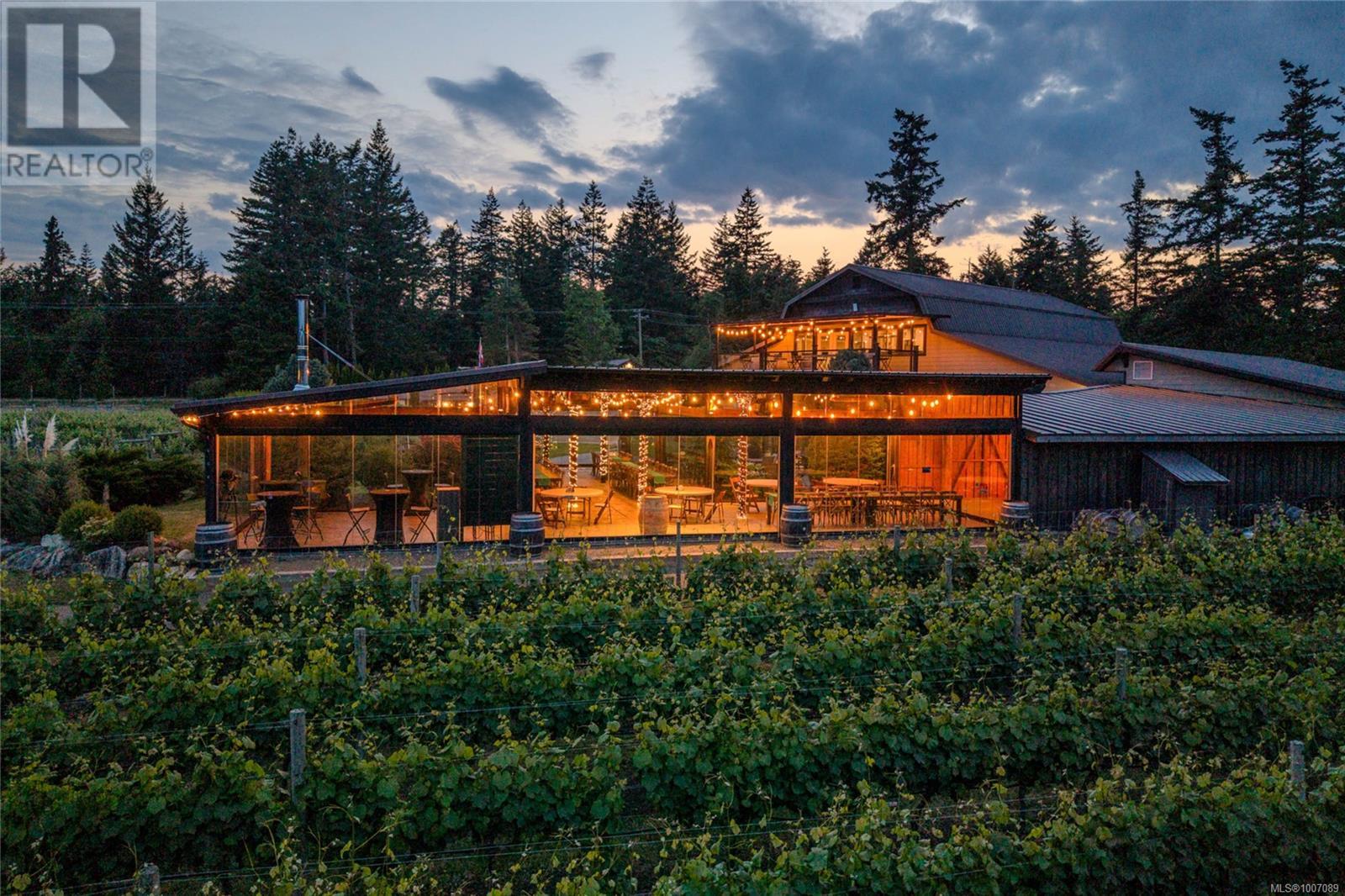 Presenting the offering of 40 Knots Estate Winery. This beloved Comox Valley business is situated on an idyllic, ocean-adjacent 23.5 acre estate. The offering includes the owned property, lease on the neighbouring property, equipment, business assets, and inventory (in addition to the listing price).The coastal property has 20.5 acres of vineyard planted with cool climate varietals. The vineyard is both sustainably and efficiently farmed - one of the only fully automated boutique vineyards. 40 Knots produces award-winning wines and ciders with their highest regarded wines and ciders scoring 93 points. Wine styles range from traditional sparkling wines to silky Pinot Noirs to Normandy-style ciders. Along with producing and selling wine, 40 Knots Winery has a popular vineyard terrace event centre able to host weddings, meeting, and corporate events year-round with panoramic vineyard views. The property structures include the 8,003 square foot winery building (home to the tasting room and production facilities), the event centre with 1,600 square feet of dining space, the 4,741 square foot country estate house, a 1,200 square foot workshop/shed, a washroom facility, and a pump house for irrigation. The property has municipal water and a well maintained septic system. With 4 bedrooms and 5 bathrooms, the character estate house features a primary bedroom with two closets and ensuite with soaker tub, a spacious kitchen with breakfast nook, two propane fireplaces, granite countertops, a large dining room with wet bar, a living room, a sitting room, a family room, and a spacious home office. The Comox Valley is an emerging wine region, offering superior growing conditions to other areas in Canada and a temperate Mediterranean climate. The winery is located close to the Comox Valley Airport, CFB, and Highway 19. The ferry to Departure Bay from the mainland is just 1.25 hours away. We respectfully ask that you do not disturb the staff regarding the sale of the business (id:2469)