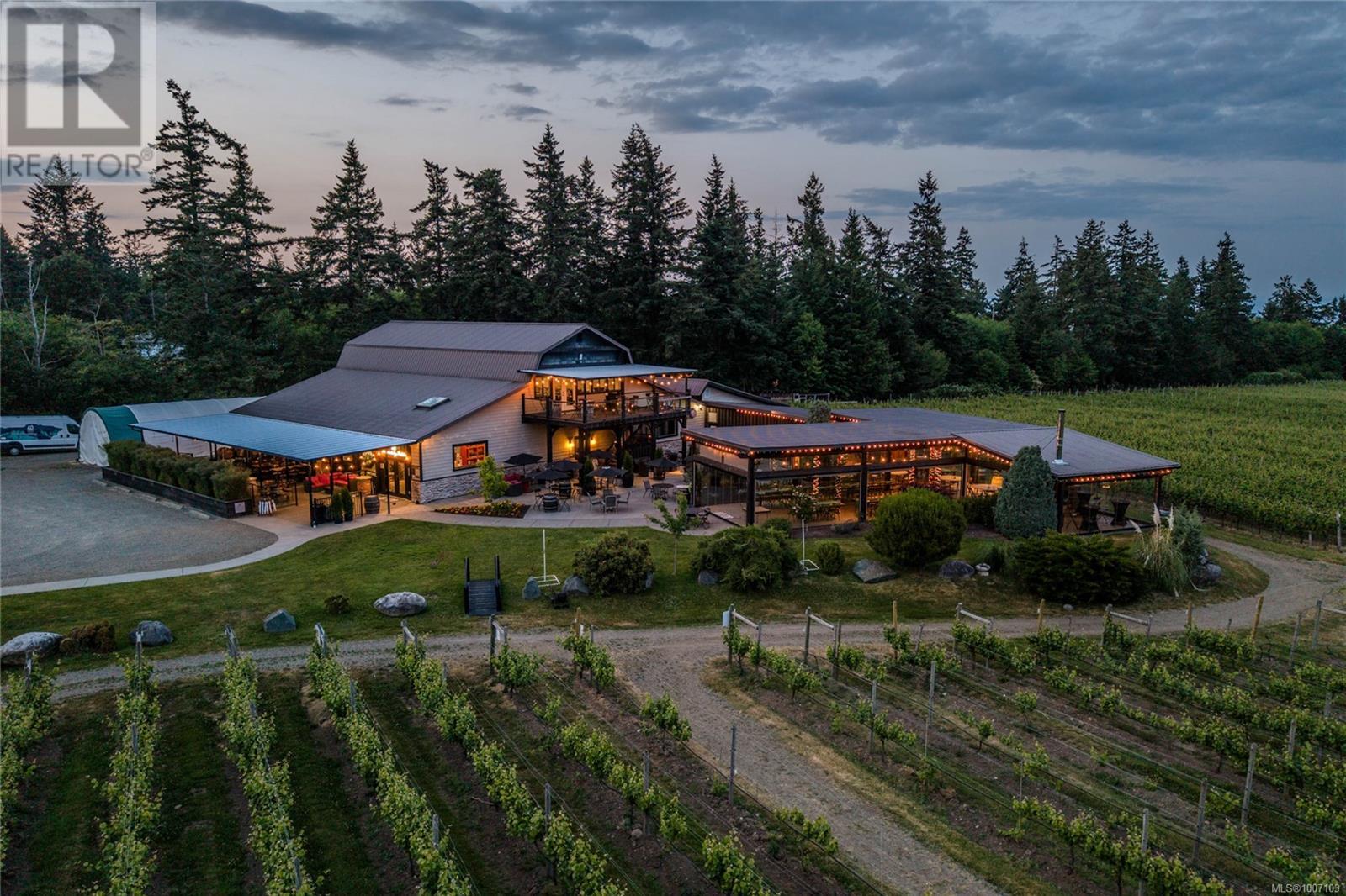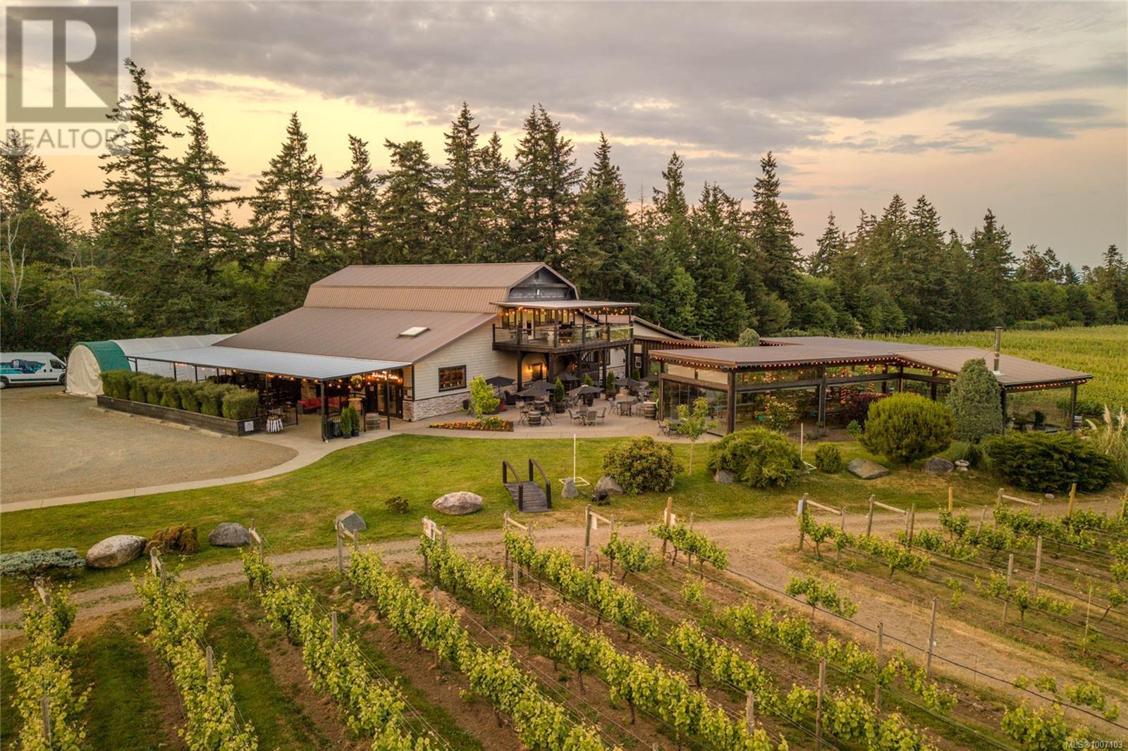 Presenting the offering of 40 Knots Estate Winery. This beloved Comox Valley business is situated on an idyllic, ocean-adjacent 23.5 acre estate. The offering includes the owned property, lease on the neighbouring property, equipment, business assets, and inventory (in addition to the listing price). The coastal property has 20.5 acres of vineyard planted with cool climate varietals. The vineyard is both sustainably and efficiently farmed - one of the only fully automated boutique vineyards. 40 Knots produces award-winning wines and ciders with their highest regarded wines and ciders scoring 93 points. Wine styles range from traditional sparkling wines to silky Pinot Noirs to Normandy-style ciders. Along with producing and selling wine, 40 Knots Winery has a popular vineyard terrace event centre able to host weddings, meeting, and corporate events year-round with panoramic vineyard views. The property structures include the 8,003 square foot winery building (home to the tasting room and production facilities), the event centre with 1,600 square feet of dining space, the 4,741 square foot country estate house, a 1,200 square foot workshop/shed, a washroom facility, and a pump house for irrigation. The property has municipal water and a well maintained septic system. With 4 bedrooms and 5 bathrooms, the character estate house features a primary bedroom with two closets and ensuite with soaker tub, a spacious kitchen with breakfast nook, two propane fireplaces, granite countertops, a large dining room with wet bar, a living room, a sitting room, a family room, and a spacious home office. The Comox Valley is an emerging wine region, offering superior growing conditions to other areas in Canada and a temperate Mediterranean climate. The winery is located close to the Comox Valley Airport, CFB, and Highway 19. The ferry to Departure Bay from the mainland is just 1.25 hours away. We respectfully ask that you do not disturb the staff regarding the sale of the business (id:2469)