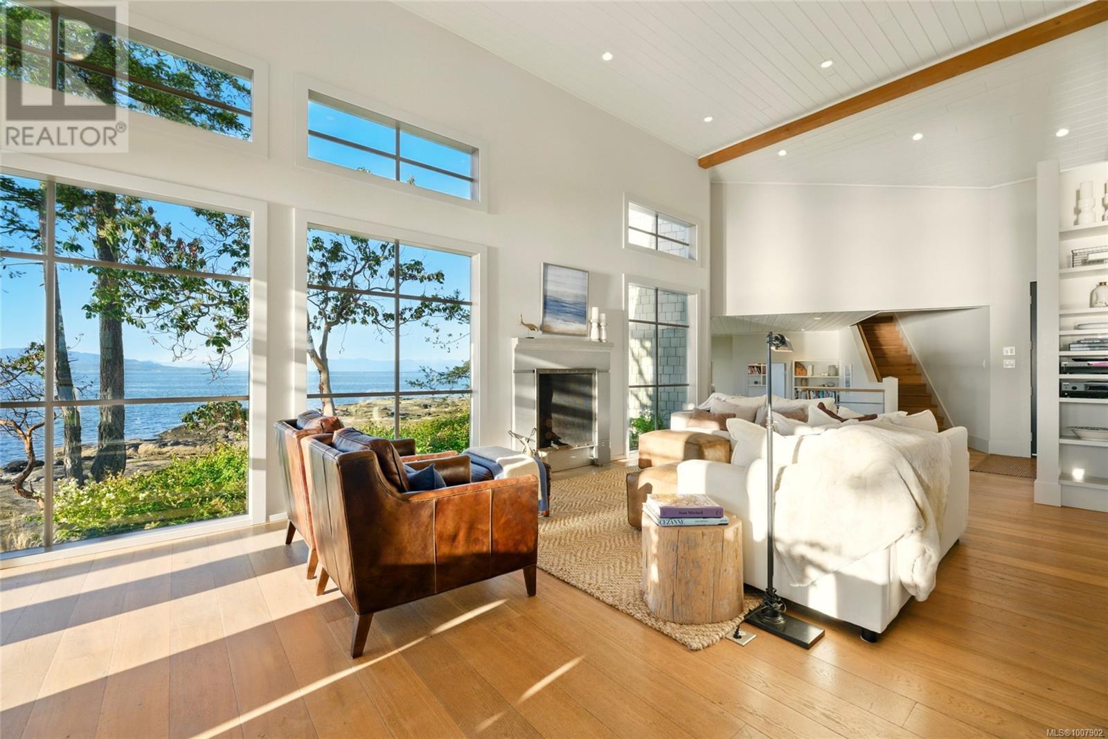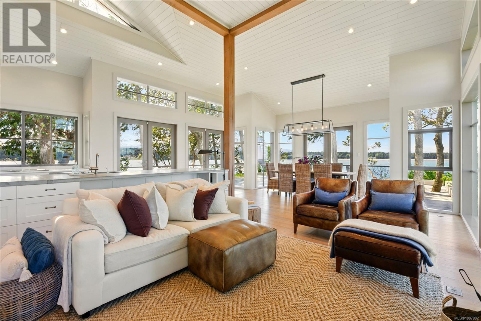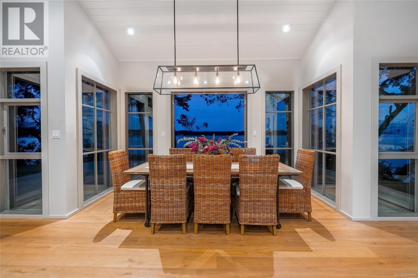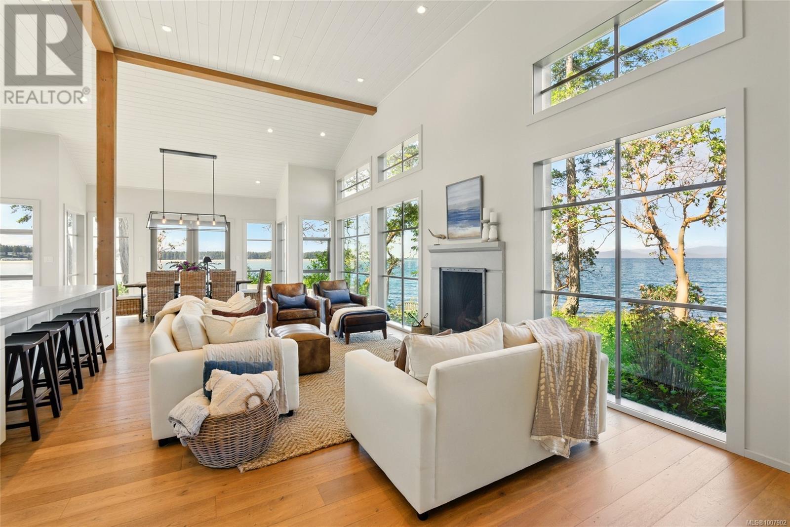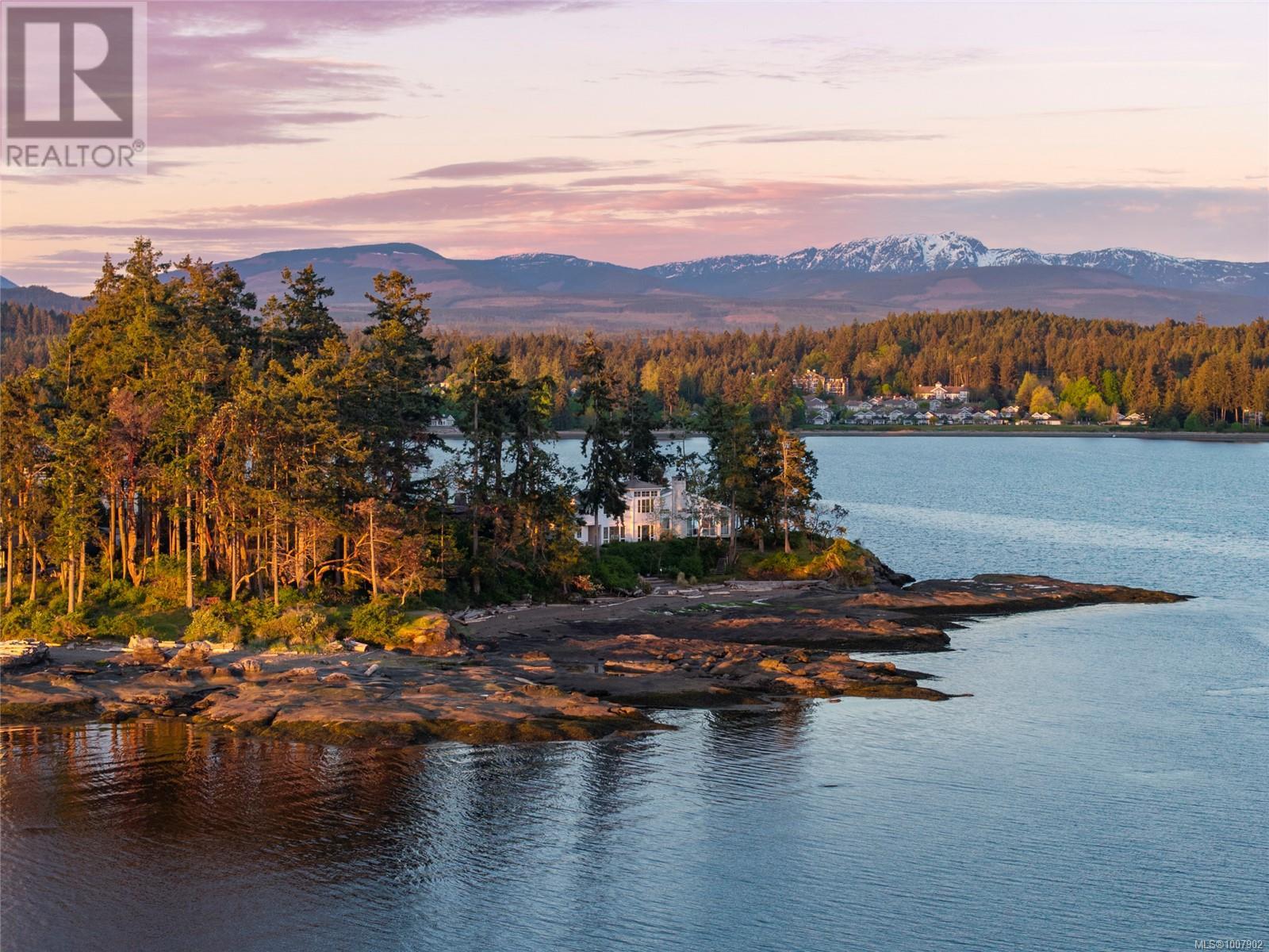 Privately perched at the promontory of Madrona Point in Nanoose Bay, this custom waterfront residence—masterfully crafted by RDolan Construction in 2011—embodies timeless Cape Cod elegance set amidst one of Vancouver Island’s most captivating natural settings. Situated on a serene 0.5-acre parcel, banked by neighbouring parkland and surrounded by lush native plant life, thoughtfully integrated into the landscaping to create a seamless transition between architecture and environment. An ideal retreat to escape to or enjoy year around with an exposure that cannot be replicated on this coastline. From the moment you step inside, the artistry of the design reveals itself: soaring 14-ft painted pine tongue-and-groove ceilings, hand-painted fir beams, engineered hardwood floors, and radiant in-floor heating create a space that is both refined and deeply comforting. The open-concept main level is anchored by a striking 12-ft custom concrete island—an entertainer’s dream—framed by expansive living and dining areas, a custom wood-burning fireplace, and floor-to-ceiling windows that bathe the home in light and offer uninterrupted ocean vistas. The main home has 2 generous primary suites—each with its own walk-in closet and spa-inspired ensuite—allowing for the ease of main-level living or a private upper retreat, all without sacrificing views of the Salish Sea. Connected by a breezeway, a charming guest accommodation with loft sleeps four and features a private NE-facing deck—perfect for quiet mornings and sunrises. Step outside to enjoy 270° views, daily sea life sightings, water activities, garden beds, and a boat lift for a 20' craft. A rare and artful expression of coastal living—the true pearl of Madrona Drive. (id:2469)