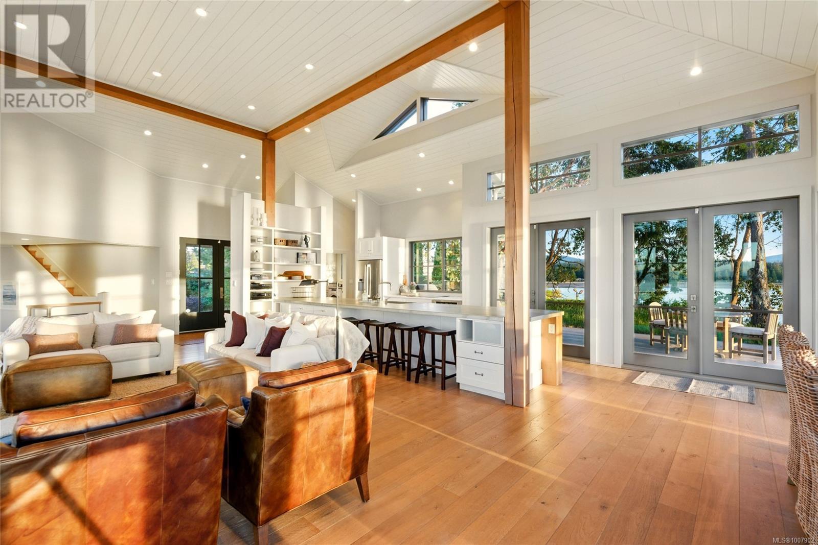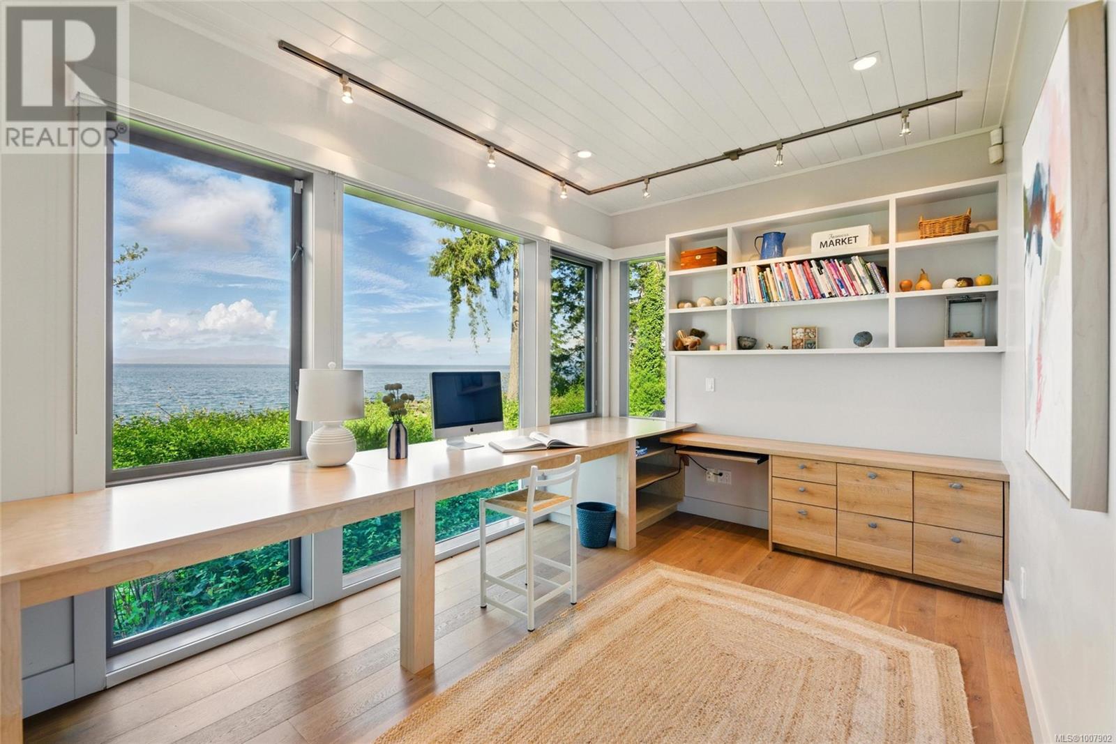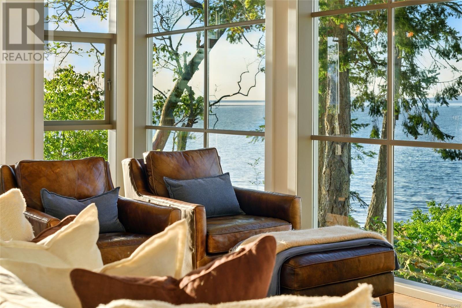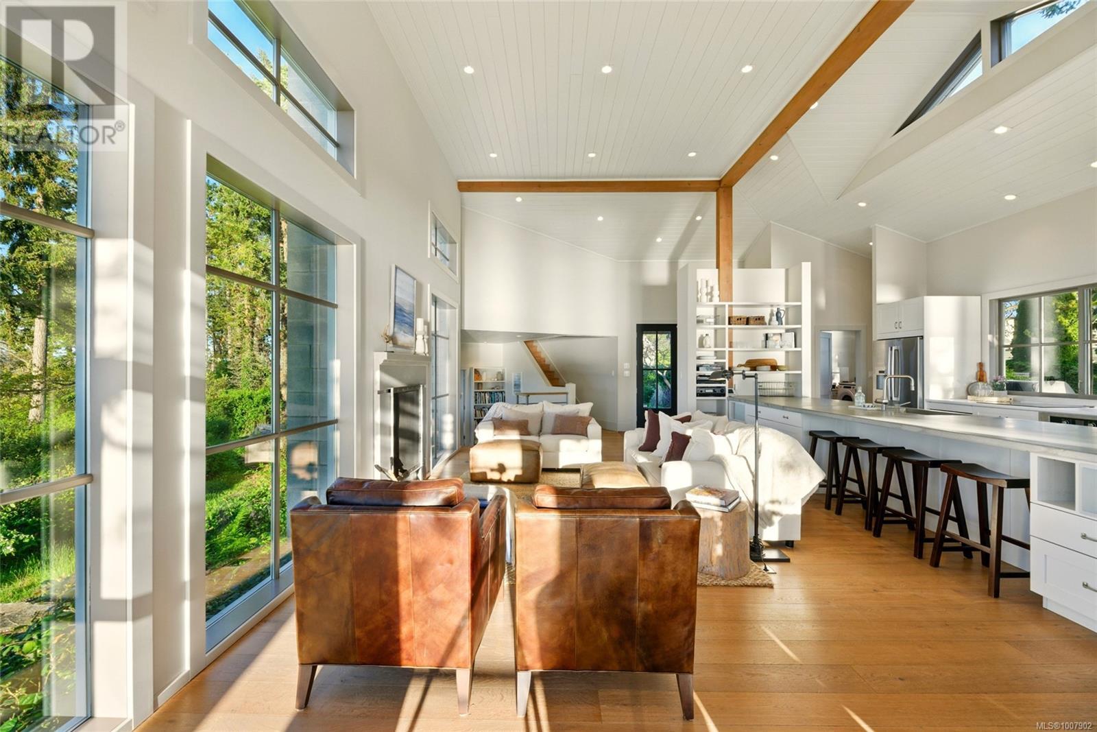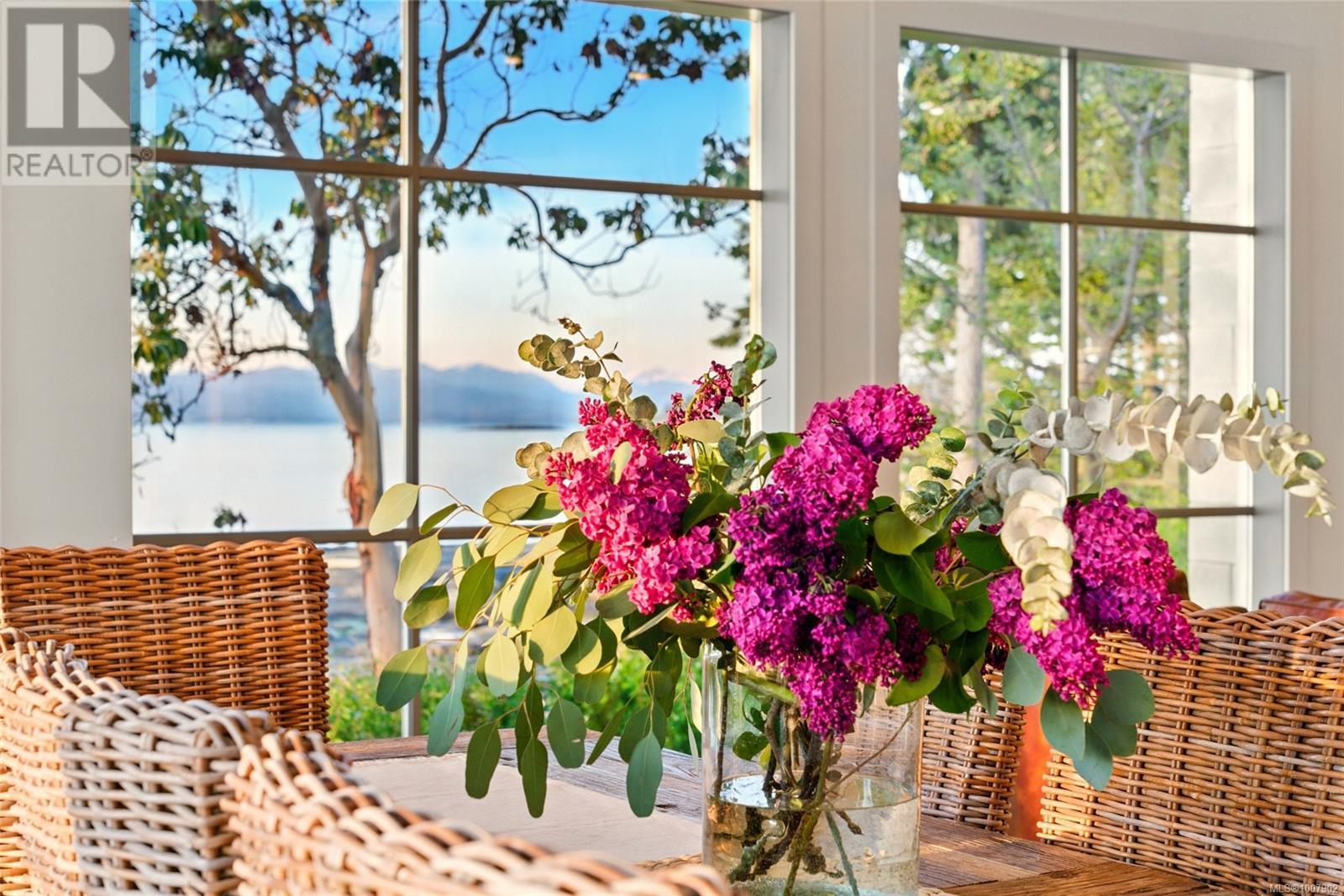 Privately perched at the promontory of Madrona Point in Nanoose Bay, this custom waterfront residence—masterfully crafted by RDolan Construction in 2011—embodies timeless Cape Cod elegance set amidst one of Vancouver Island’s most captivating natural settings. Situated on a serene 0.5-acre parcel, banked by neighbouring parkland and surrounded by lush native plant life, thoughtfully integrated into the landscaping to create a seamless transition between architecture and environment. An ideal retreat to escape to or enjoy year around with an exposure that cannot be replicated on this coastline. From the moment you step inside, the artistry of the design reveals itself: soaring 14-ft painted pine tongue-and-groove ceilings, hand-painted fir beams, engineered hardwood floors, and radiant in-floor heating create a space that is both refined and deeply comforting. The open-concept main level is anchored by a striking 12-ft custom concrete island—an entertainer’s dream—framed by expansive living and dining areas, a custom wood-burning fireplace, and floor-to-ceiling windows that bathe the home in light and offer uninterrupted ocean vistas. The main home has 2 generous primary suites—each with its own walk-in closet and spa-inspired ensuite—allowing for the ease of main-level living or a private upper retreat, all without sacrificing views of the Salish Sea. Connected by a breezeway, a charming guest accommodation with loft sleeps four and features a private NE-facing deck—perfect for quiet mornings and sunrises. Step outside to enjoy 270° views, daily sea life sightings, water activities, garden beds, and a boat lift for a 20' craft. A rare and artful expression of coastal living—the true pearl of Madrona Drive. (id:2469)