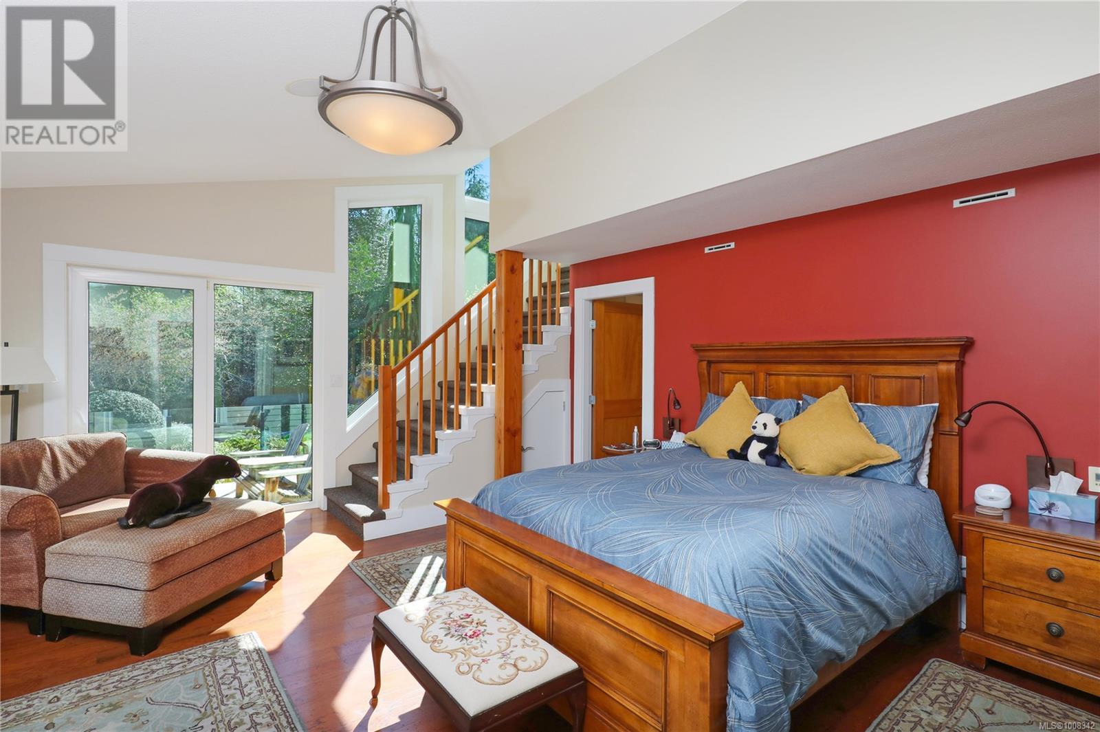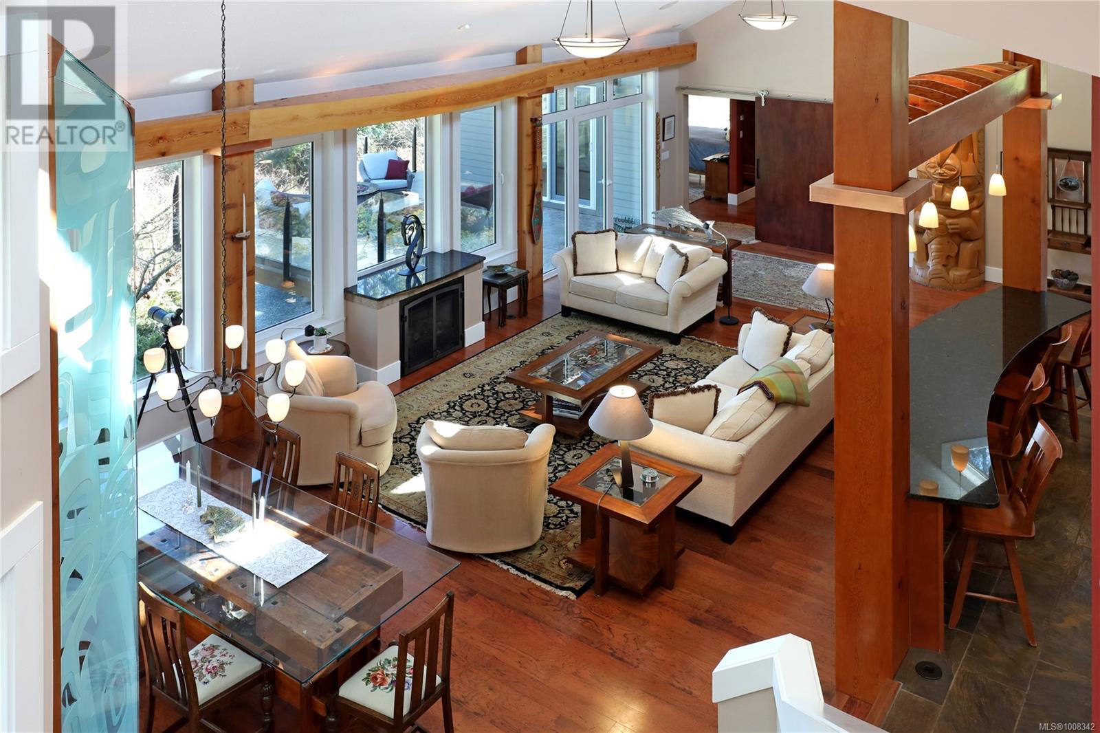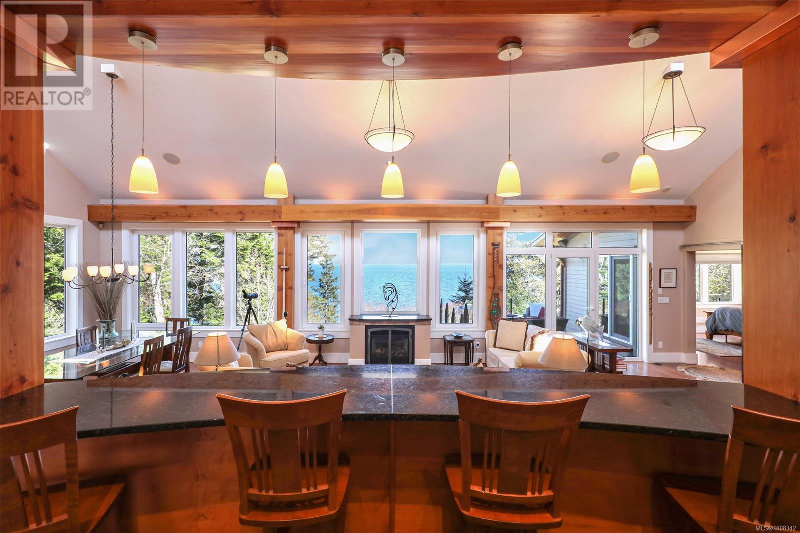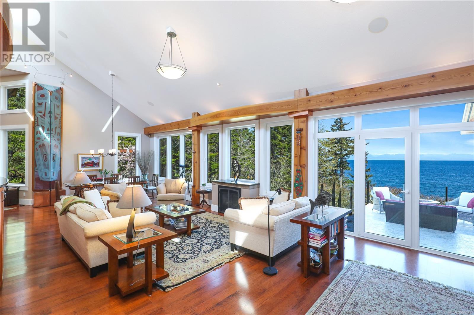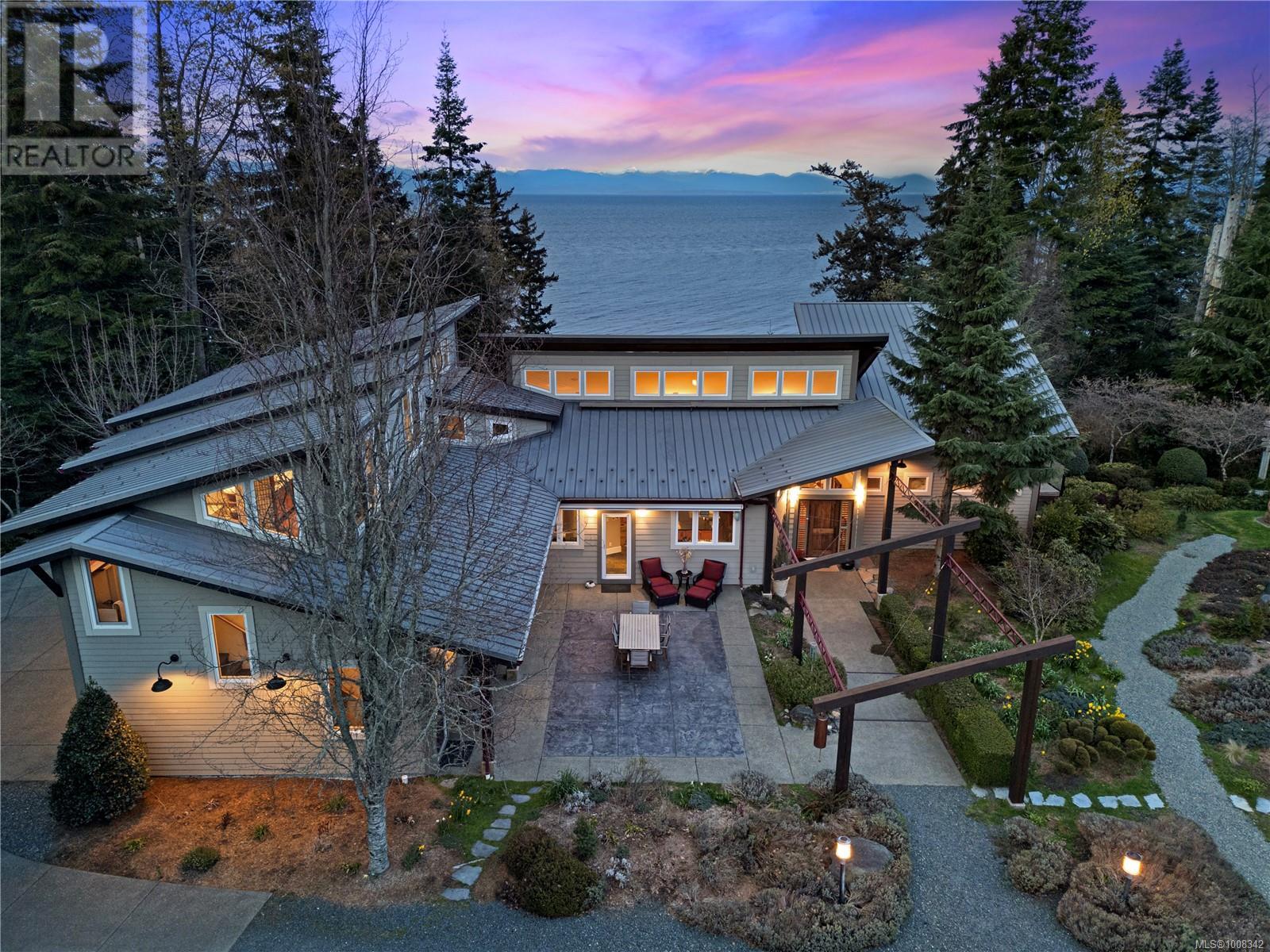 Foreign Buyer Exempt waterfront. Welcome to Bellaire, a professionally landscaped and whimsically accented 4.97ac parcel, exceptional vistas from a custom, award winning luminous home. Inside, slate and hickory floors, granite counters, maple cabinets, ingenious use of natural light, morning and afternoon sun, showcasing high-end finishes and luxurious amenities. The primary bedroom is sequestered at one end, with spa ensuite and private office. The kitchen tiered above the living room to allow for unobscured views. The upper level is a suite: a bathroom, small kitchen, and placid sitting area, all above a 3-car garage. The lower-level area has built-in mahogany cabinetry, a small kitchenette, entry to the patio and gardens. Fully equipped gym, steam shower bathroom, 2 bedrooms, wine cellar finish off the main house. A carriage house above a 2-car garage with independent services overlooking fire pit, kennel and fenced garden, this is a private, peaceful and stunning estate. A must see. (id:2469)