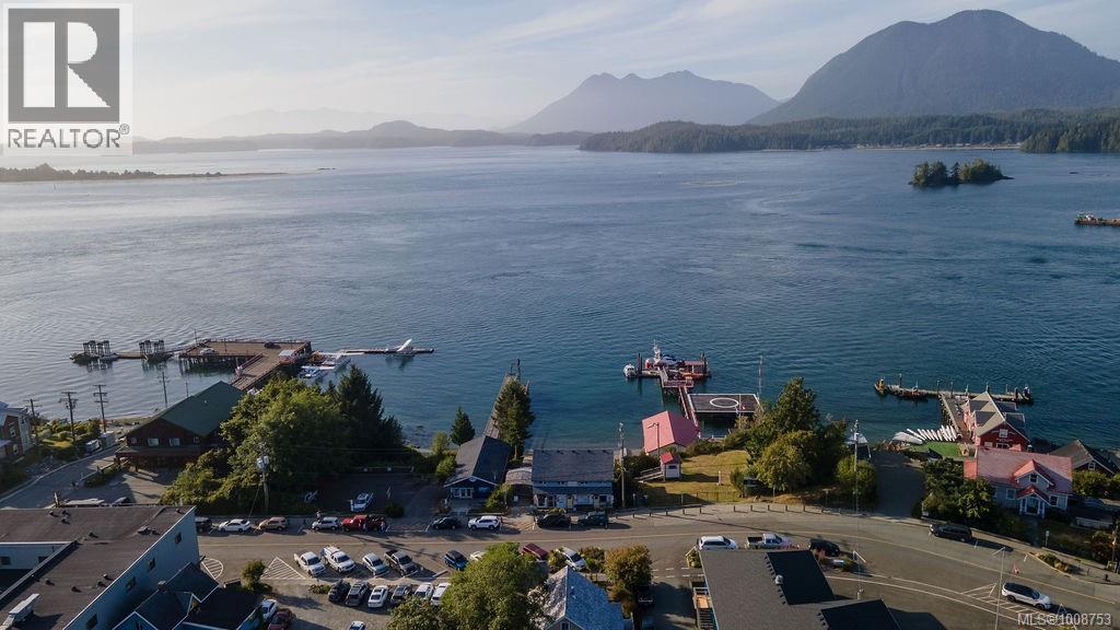 Prime Downtown Commercial Waterfront – Tofino, BC A proven income generator with rare downtown commercial waterfront zoning, allowing hotel, restaurant, retail, marina, or mixed-use development. Walk-on waterfront offers unobstructed Clayoquot Sound views, with potential to extend into a valuable foreshore water lot. Exceptional Northwest facing sunsets. For 37 years, this site has hosted a thriving business, benefiting from decades of goodwill, visibility, and loyal clientele. Steps from Tofino’s bustling core, it blends high foot traffic with stunning natural beauty. Upstairs, five guest rooms with shared kitchen suit group bookings, staff housing, or short-term rentals. Flexible zoning, established location, and global appeal make this one of Tofino’s most promising waterfront assets—ready for your vision! or live there upstairs with business downstairs.. (id:2469)
