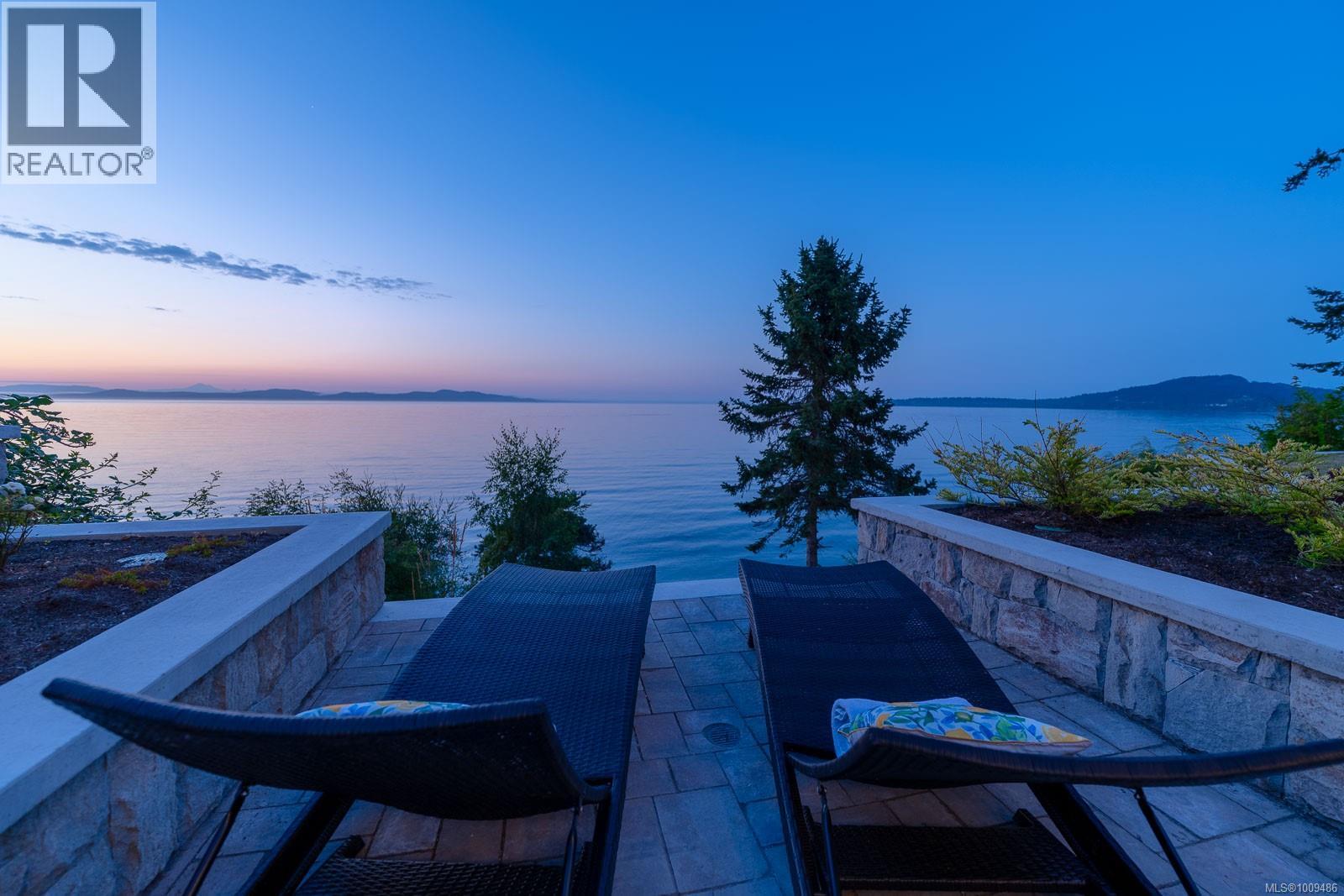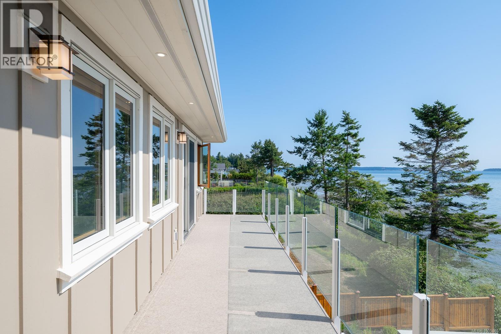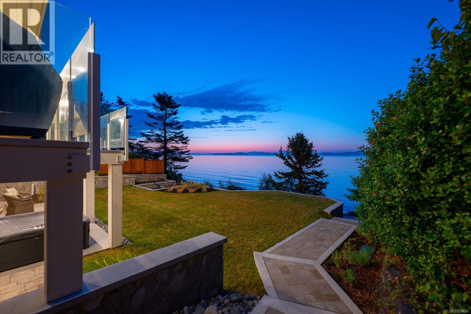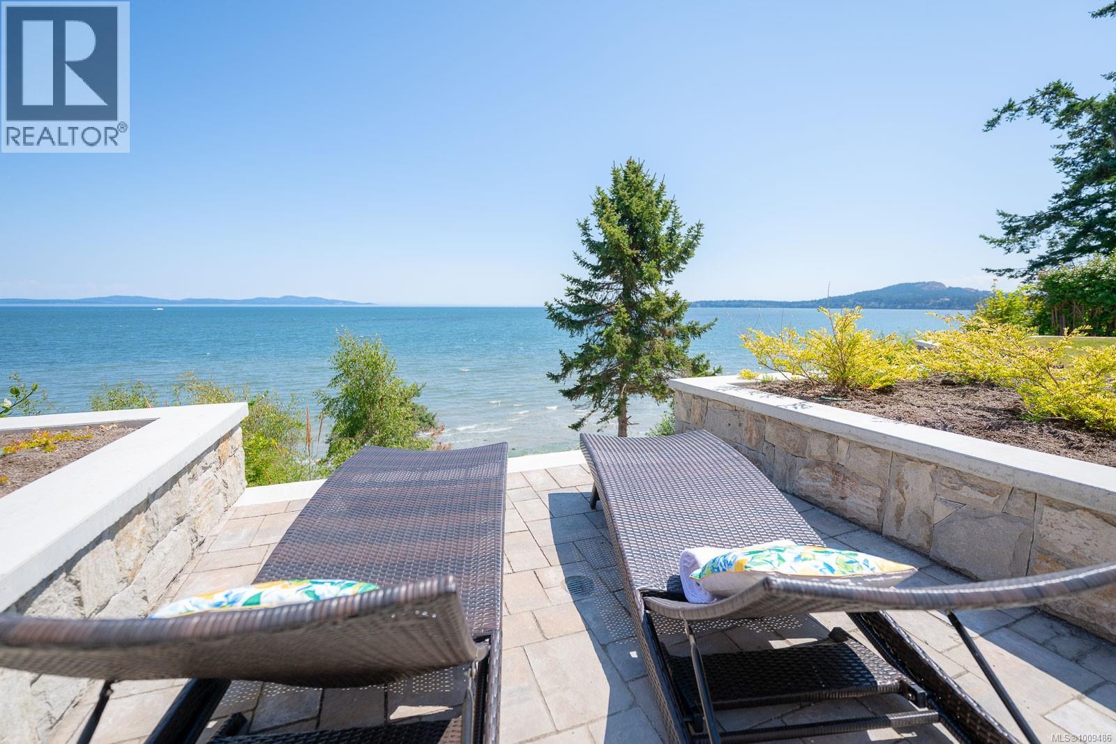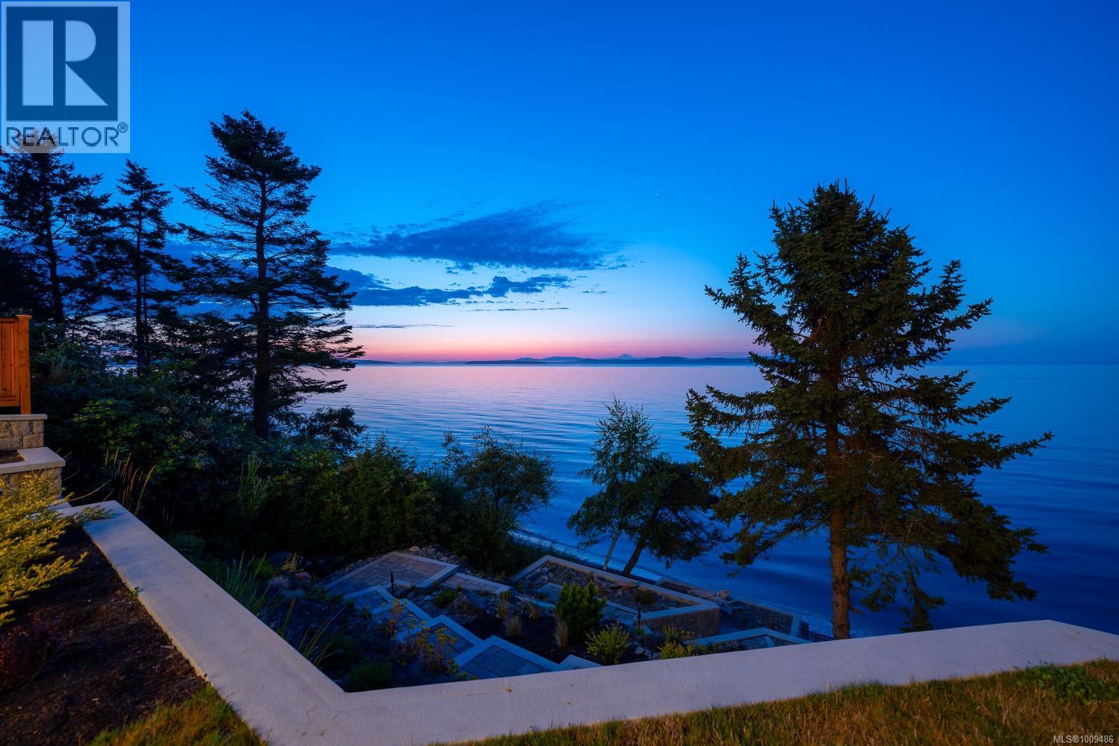 A spectacular vista awaits at this waterfront West Coast masterpiece in Cordova Bay. Situated on a 0.40-acre lot with 70 feet of beach access on Victoria's ''Street of Dreams,'' this 4,800 sq ft home features distinctive cedar timber frame architecture and luxury Loewen windows. The interior boasts a soaring two-story foyer, natural limestone flooring, and an elevator to all three floors. The gourmet kitchen is a chef's delight with a quartz island, 48'' Refrigerator/Freezer, dual fuel range, multiple dishwashers, and a butler's pantry. Entertain in the separate dining room with a built-in wine fridge or the living room with its wood-burning fireplace. The main floor also includes a bedroom with ensuite access and two spa bathrooms. The upstairs master suite features awe-inspiring views, motorized Lutron blinds, a lavish walk-in dressing room, and a ''his and her'' ensuite with a freestanding tub and two-person body sprays. Two additional bedrooms, another spa bathroom, and a full laundry room complete the upper level. The lower floor offers a custom fir wine cellar and a self-contained 2-bedroom ocean-view suite with its own kitchen, laundry, walkout patio, and hot tub. Eco-conscious buyers will appreciate the 14kW solar system and EV charger. The property includes a heated double garage, a double carport, radiant heating, heat pump A/C, and a masterpiece of masonry featuring Basalt stone walls and living wall softscaping. An offering of this calibre is a truly extraordinary treasure. (id:2469)