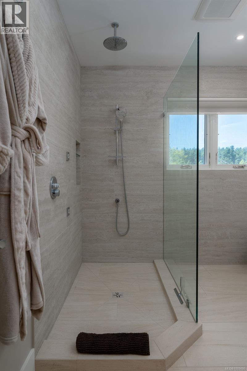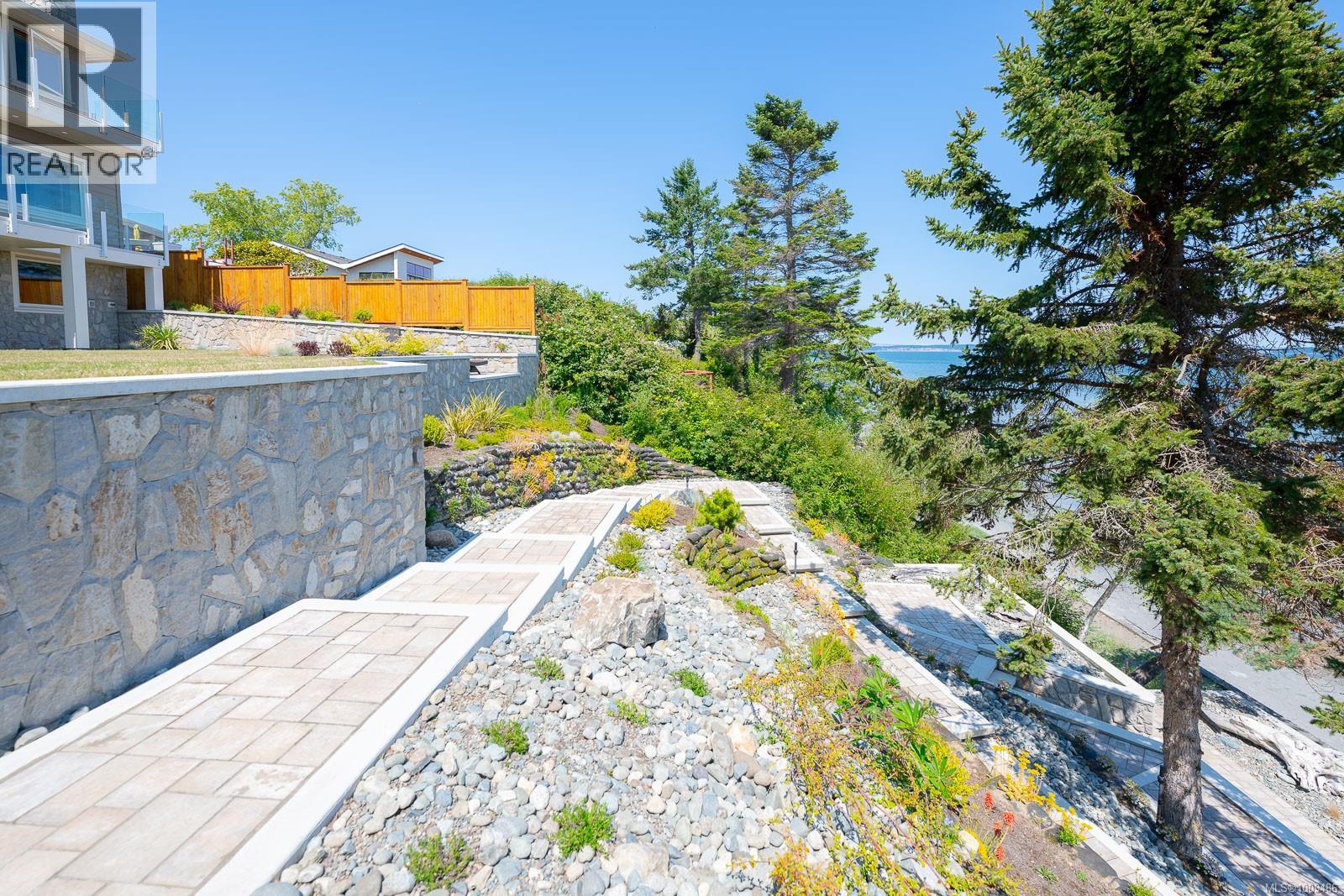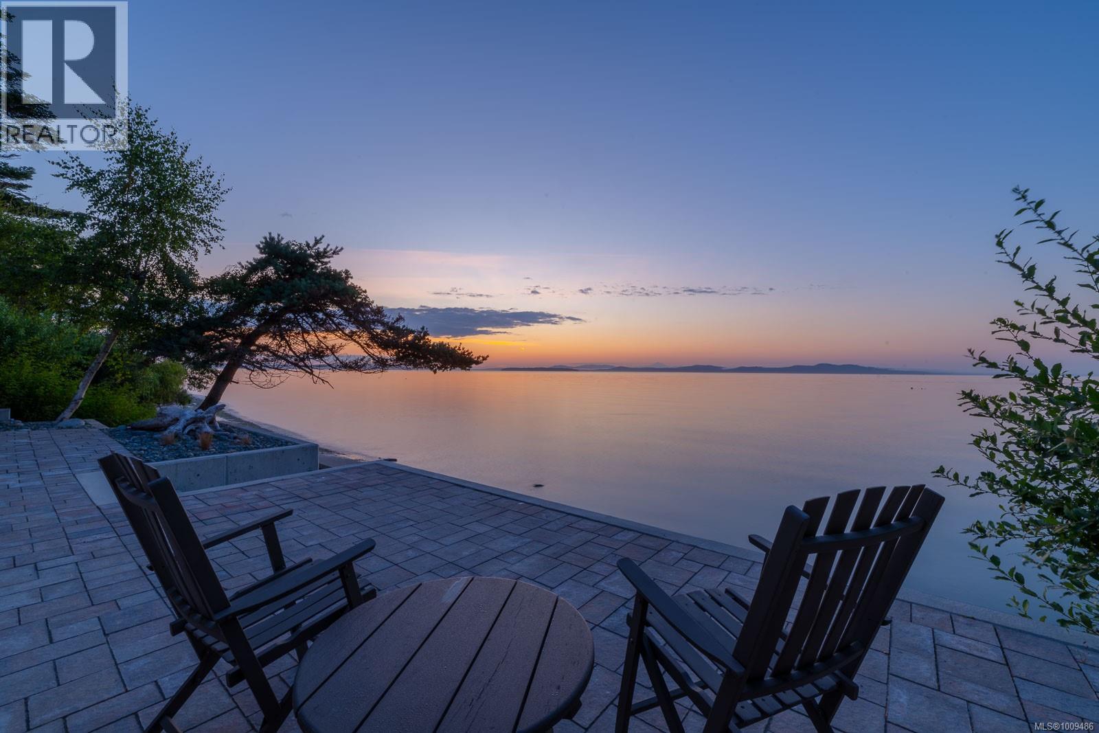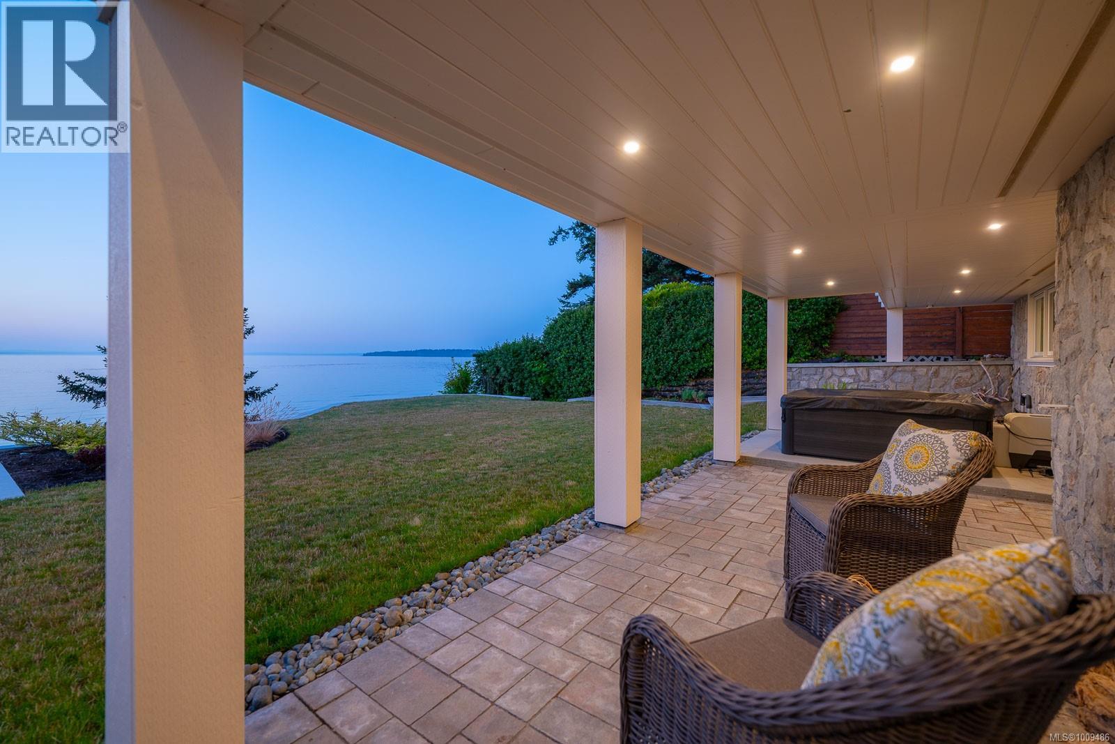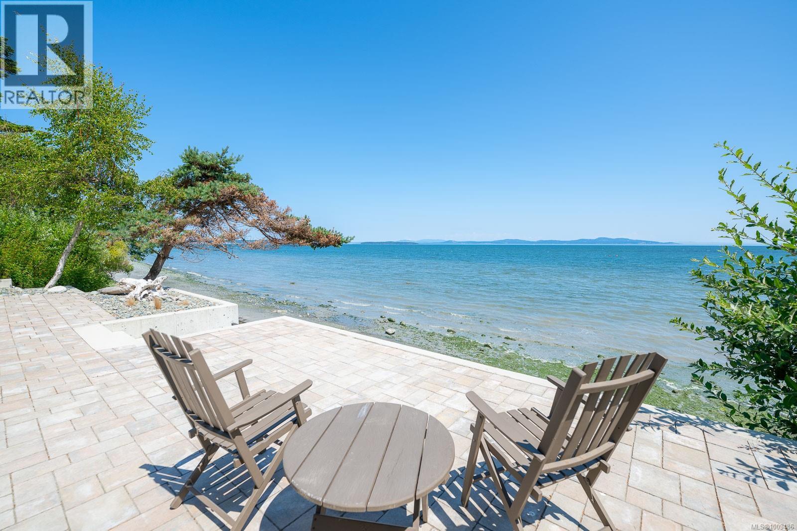 A spectacular vista awaits at this waterfront West Coast masterpiece in Cordova Bay. Situated on a 0.40-acre lot with 70 feet of beach access on Victoria's ''Street of Dreams,'' this 4,800 sq ft home features distinctive cedar timber frame architecture and luxury Loewen windows. The interior boasts a soaring two-story foyer, natural limestone flooring, and an elevator to all three floors. The gourmet kitchen is a chef's delight with a quartz island, 48'' Refrigerator/Freezer, dual fuel range, multiple dishwashers, and a butler's pantry. Entertain in the separate dining room with a built-in wine fridge or the living room with its wood-burning fireplace. The main floor also includes a bedroom with ensuite access and two spa bathrooms. The upstairs master suite features awe-inspiring views, motorized Lutron blinds, a lavish walk-in dressing room, and a ''his and her'' ensuite with a freestanding tub and two-person body sprays. Two additional bedrooms, another spa bathroom, and a full laundry room complete the upper level. The lower floor offers a custom fir wine cellar and a self-contained 2-bedroom ocean-view suite with its own kitchen, laundry, walkout patio, and hot tub. Eco-conscious buyers will appreciate the 14kW solar system and EV charger. The property includes a heated double garage, a double carport, radiant heating, heat pump A/C, and a masterpiece of masonry featuring Basalt stone walls and living wall softscaping. An offering of this calibre is a truly extraordinary treasure. (id:2469)