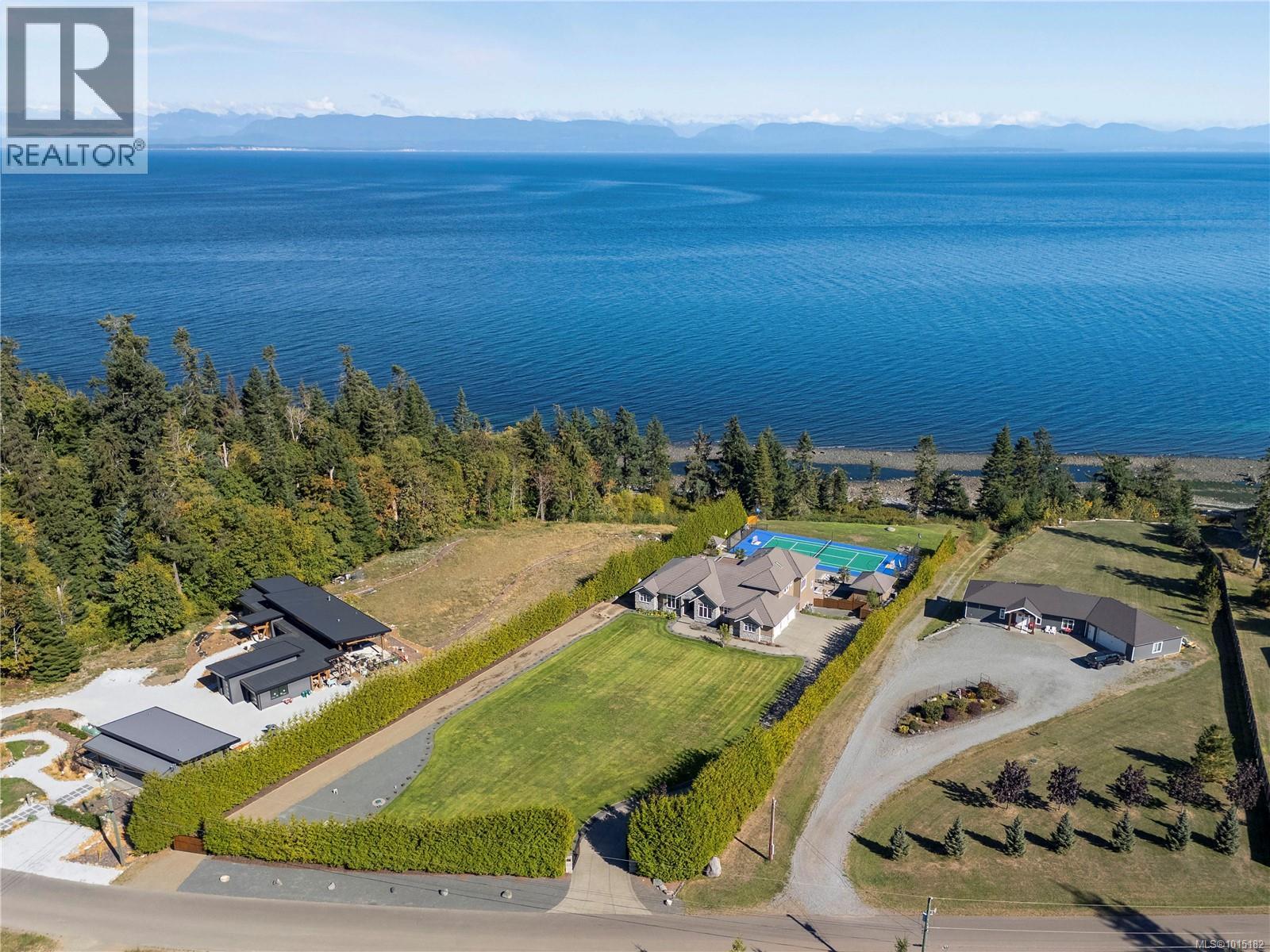 Settled on a 2.47-ac oceanfront parcel, this 6589 sqft home has numerous conveniences and high-end finishes. Inside the 4-bd, 6-bth residence, you will find finishes like Brazilian cherry hardwood, heated tiles & basement, coffered ceilings, gas fireplaces, quartz counters, turn & tilt windows, and impressive natural lighting. Dramatic vistas dominate. Interior amenities: sound insulated media room, games room, gym and sauna, wine cellar, formal office, separate dining room, ensuites for every bedroom, chef’s kitchen and 3-car garage. Outside: freshly painted tennis / pickleball / bball / ball hockey court, putting green, oversized chess, covered deck & patio, ht tb, 8’ deep pool, ocean access, fenced yard, gated entrance, fire columns & landscaped throughout. Infrastructure: generator, security system, 2 wells, built-in bbq, 400-amp service, electric charger roughed in, O/D electric heaters, and speaker system. Meant to be seen in person. Book a showing today. Foreign Buyer Ban Exempt (id:2469)