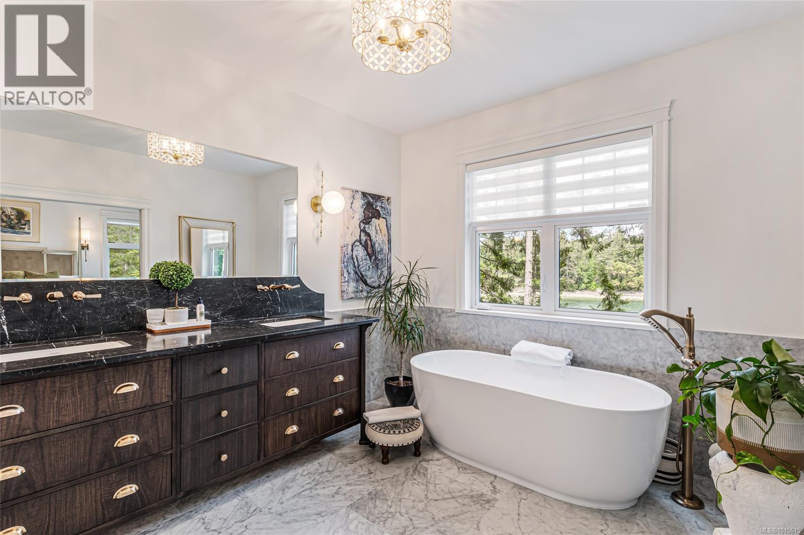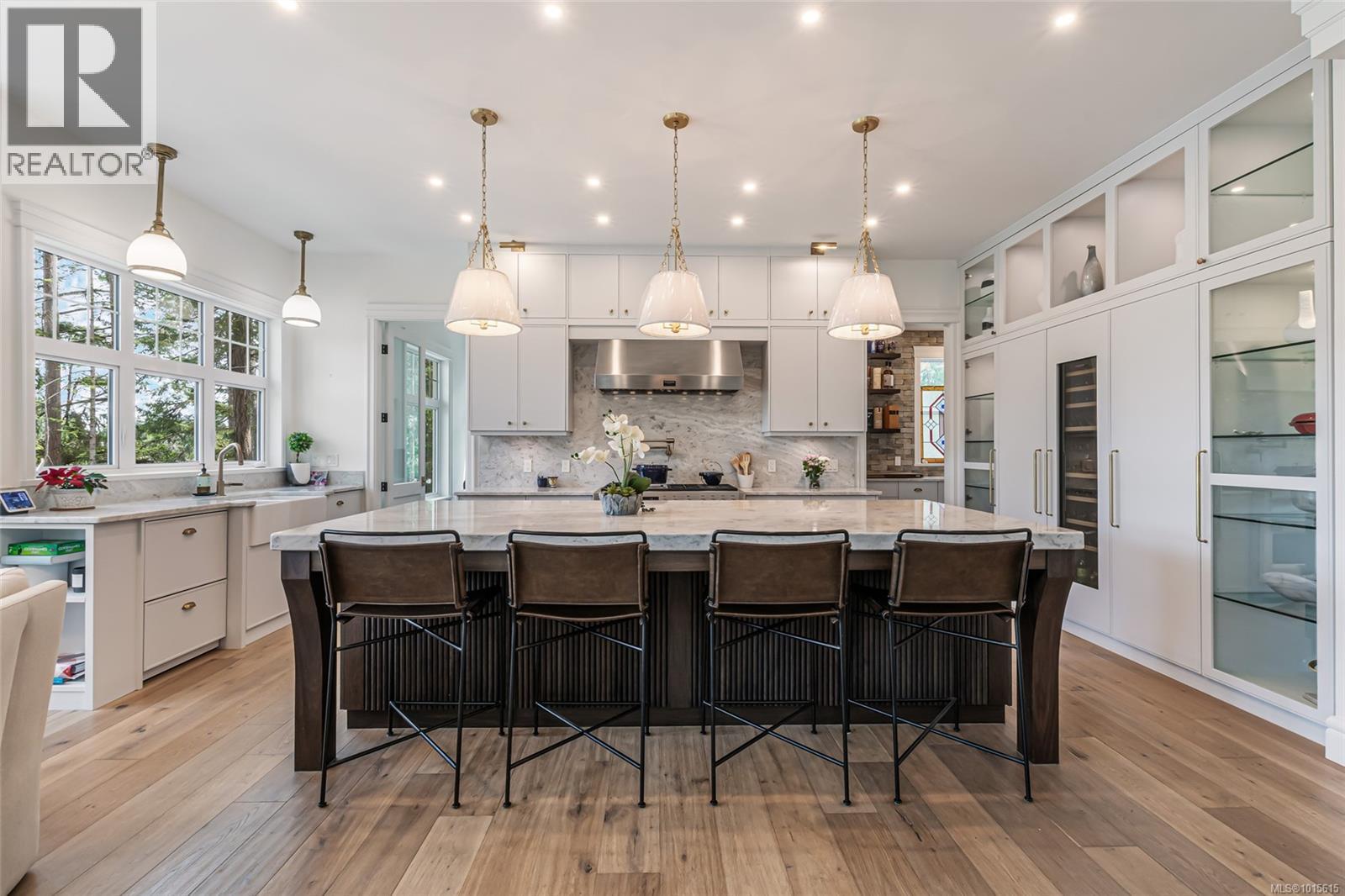 3 year old Oceanfront home tucked down a private lane. The elegant waterfront masterpiece blends modern classical coastal design with luxury. Nestled in tranquil protected “Evening Cove” and offering excellent private access to the beach plus own anchoring Buoy. This spectacular home boasts over 6000 sqft of opulent living space plus a 700 sqft garage so room for everything. Five bedrooms, 6 bathrooms, kitchen absolute showpiece with custom built walnut wrapped milled cabinetry. Appliances befitting this home three door Trio Liebherr fridge, freezer, wine fridge, Fisher Paykel double drawer dishwasher and Fulgor 48 inch stove. You’ll love the spectacular stone fireplace, Russian Oak floors and grand staircase. Multi use flex suite over garage plus a lovely legal one bedroom in part of lower level. Beautiful grounds including amazing swim spa by waters edge, stamped driveway and walks, huge deck space(s). Some of the warmest ocean waters North of California, great crabbing, prawning and fishing within minutes, 10 minutes to airport, golf, 25 minutes to ferry. Too many other amazing features and finishings to list here on this gorgeous ¾ acre property, Paradise! (id:2469)