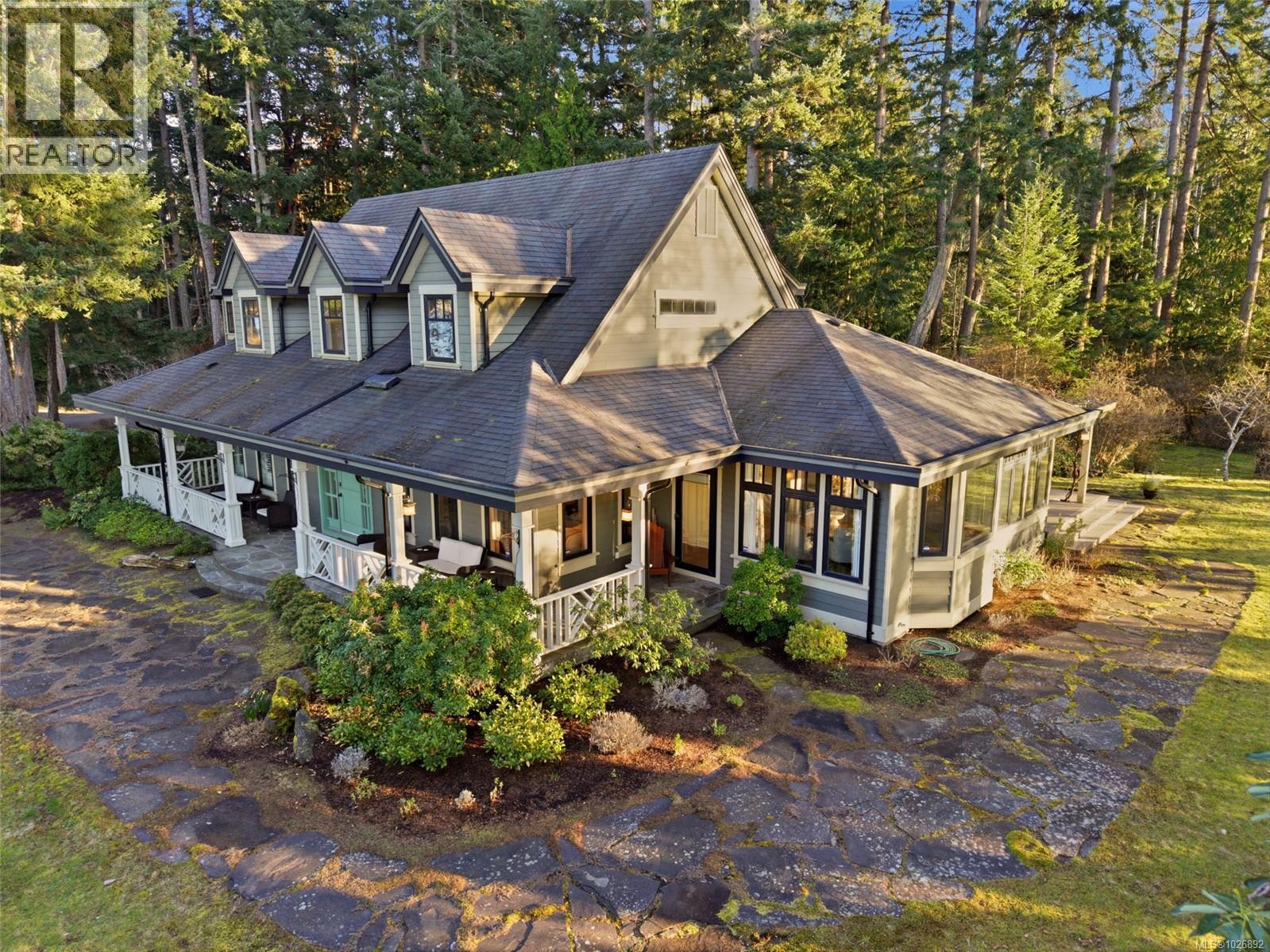 Enchanting Nanoose Bay Oceanfront Retreat! Resting on a scenic peninsula between Wall Beach and Northwest Bay, this stunning 4131 sqft 4 Bed+Bonus Room/5 Bath Cape Cod–style home sits on a spectacular gated 4.83-acre estate. Surrounded by beautiful scenery, the property offers the ultimate in privacy and tranquility yet you are only mins from shopping and amenities. Featured in 'Style at Home' magazine and beautifully styled by an interior designer, this spectacular seaside home showcases elegant finishes, stylish architectural detailing, formal Living and Dining Rooms, skylights and large windows, a Bonus Room for guests or recreation, and 1200' of sandstone oceanfront with picture-perfect views of the Beachcomber Peninsula, Strait of Georgia, and Wall Beach, with Mt Arrowsmith in the distance. A long entry drive winds through towering trees to this casually refined home. A wrap-around veranda with stone flooring leads through a Dutch door to a two-storey foyer. The elegant Living Room offers wainscoting and an elec fireplace, while the formal Dining Room features a coffered ceiling, bay window, and veranda access. A Butler’s Pantry connects to a stunning Chef’s Kitchen with island, skylights, extensive white cabinetry, premium appliances, and a Breakfast Nook. The Family Room has a wood-burning fireplace and doors to a huge deck with southwest-facing views toward Wall Beach. The main level also offers a Study, Powder Room, and a luxurious Primary Suite with veranda access, walk-in closet, and spa ensuite with soaker tub and steam shower. A skylit Gallery Hall, large Laundry Room, and Double Garage complete the level. Upstairs are three Bedrooms, incl one with a 5-piece ensuite, and a separate staircase leads up to a spacious Bonus Room with a Kitchenette, Bath, and ocean views—ideal for guests or extended family. Set on a private 4.83-acre forested estate with a bocce court, Rec Room, and a trail to explore the property. Great extras, visit our website for more. (id:2469)