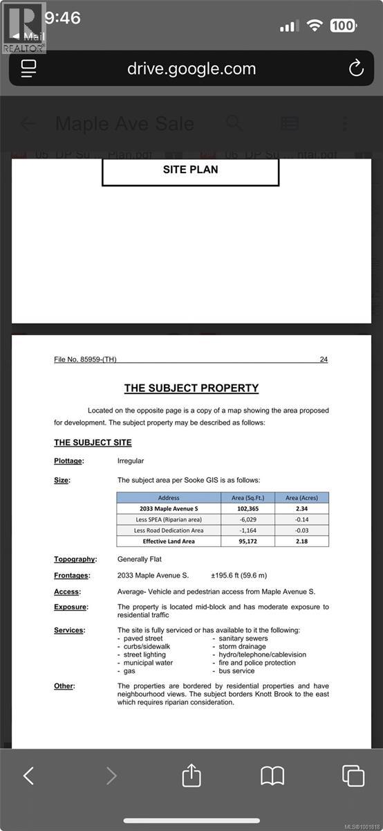 2.35 acres of Prime development opportunity in the heart of Sooke. This centrally located RM2-zoned property is offered for sale with significant density potential & supporting documentation in place. The current OCP supports the development of 47 units. Structures have been removed; the site is ready for development (not excavated). Development Permit Submitted: Mar 2025 for a 47-unit condo development. The design Concept consists of 8 buildings, 6 units per building (1 building includes a flex space for gym or storage). The draft OCP allows up to 65 units, with the site plan designed to accommodate 3 additional buildings. Meetings held with the District of Sooke with verbal support received for current DP submission. This project offers multiple build-out strategies depending on your investment goals, the project could proceed as strata-titled condos for sale or as CMHC rental units with stratified buildings. Call for your full package today! (id:2469)