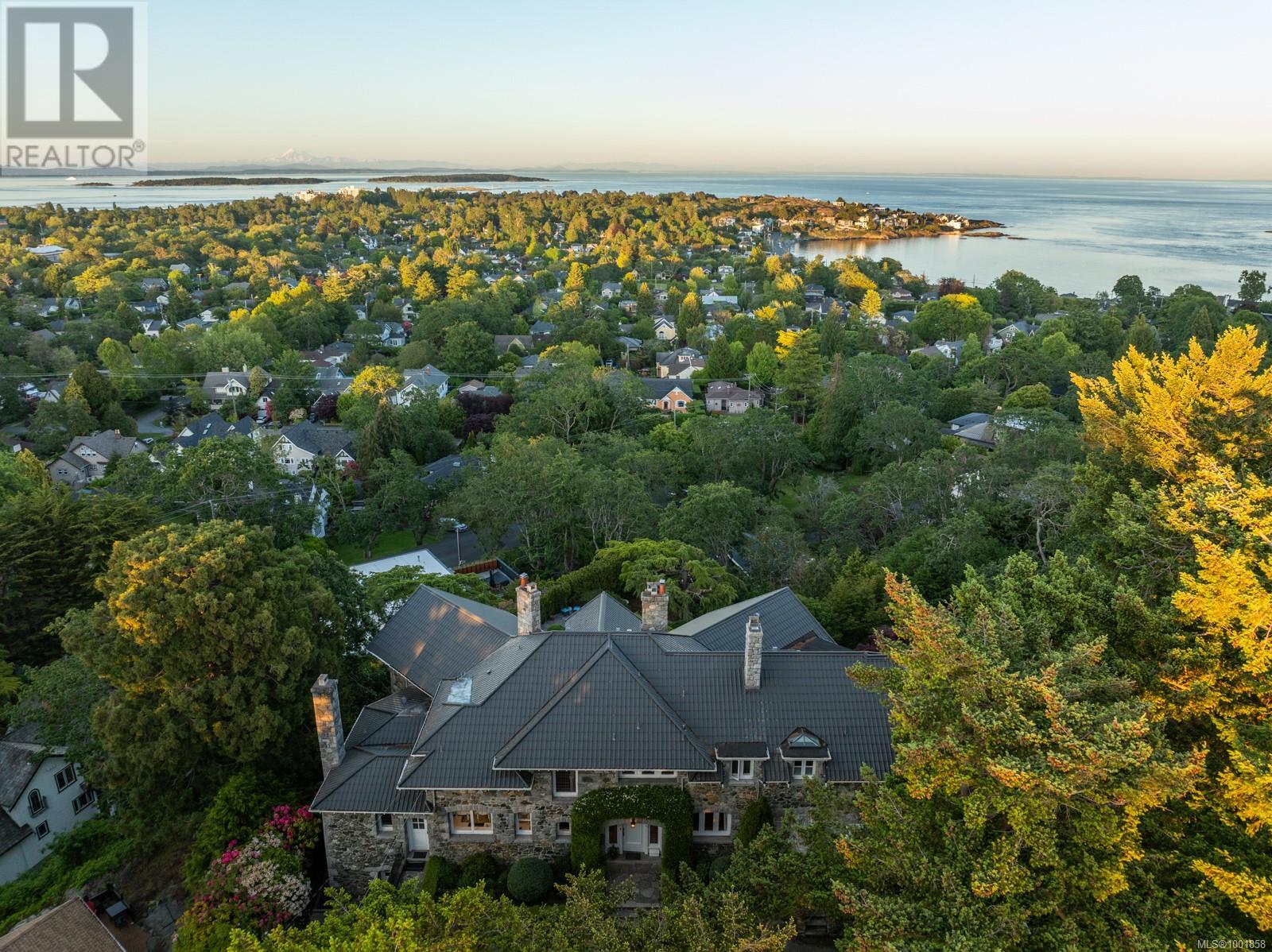 Introducing 'Kingsmount', a landmark Castle like estate in prestigious Oak Bay. Designed by D.C. Frame and Samuel Maclure, this exquisite example of British Arts and Crafts architecture combines old-world charm with modern luxury. The grand main floor is ideal for entertaining with a chef’s kitchen, elegant dining, impressive living room, music room, office, library, and sitting room. Upstairs features a stately primary suite plus six more bedrooms—many with fireplaces, walk-ins, and two 4pc baths. The lower level includes a guest suite with private entrance, wine room, and workshop. Experience true indoor/outdoor living with sweeping ocean views and a clear sightline to Mt. Baker. The park-like grounds offer serene privacy with patios, a water feature, garden paths, and mature trees. Located near trails, beaches, parks, schools, Oak Bay Village, shops, dining, and more. Just steps from Gonzales Hill Park. Truly a rare and refined opportunity! (id:2469)