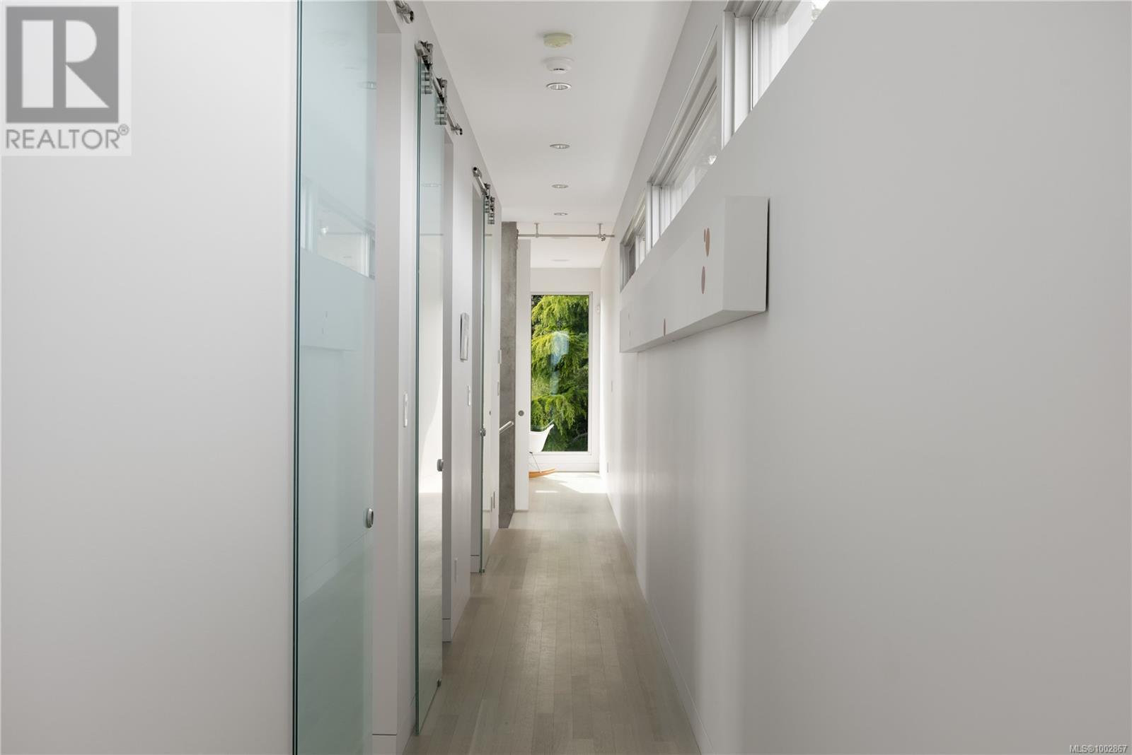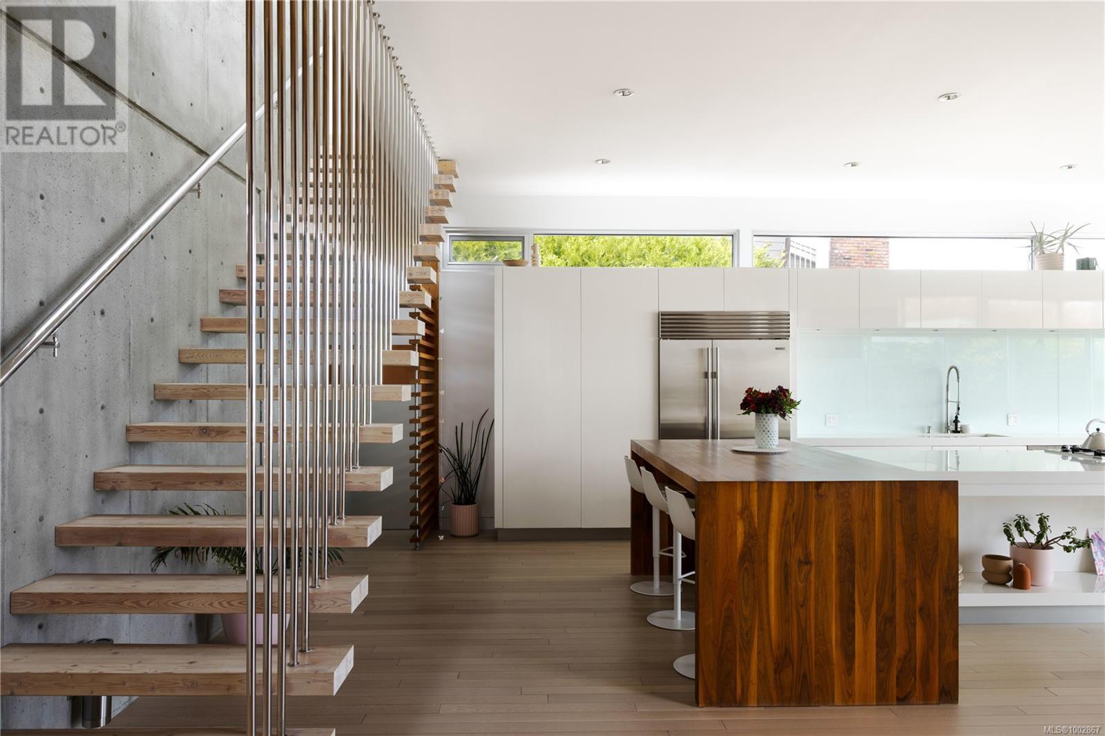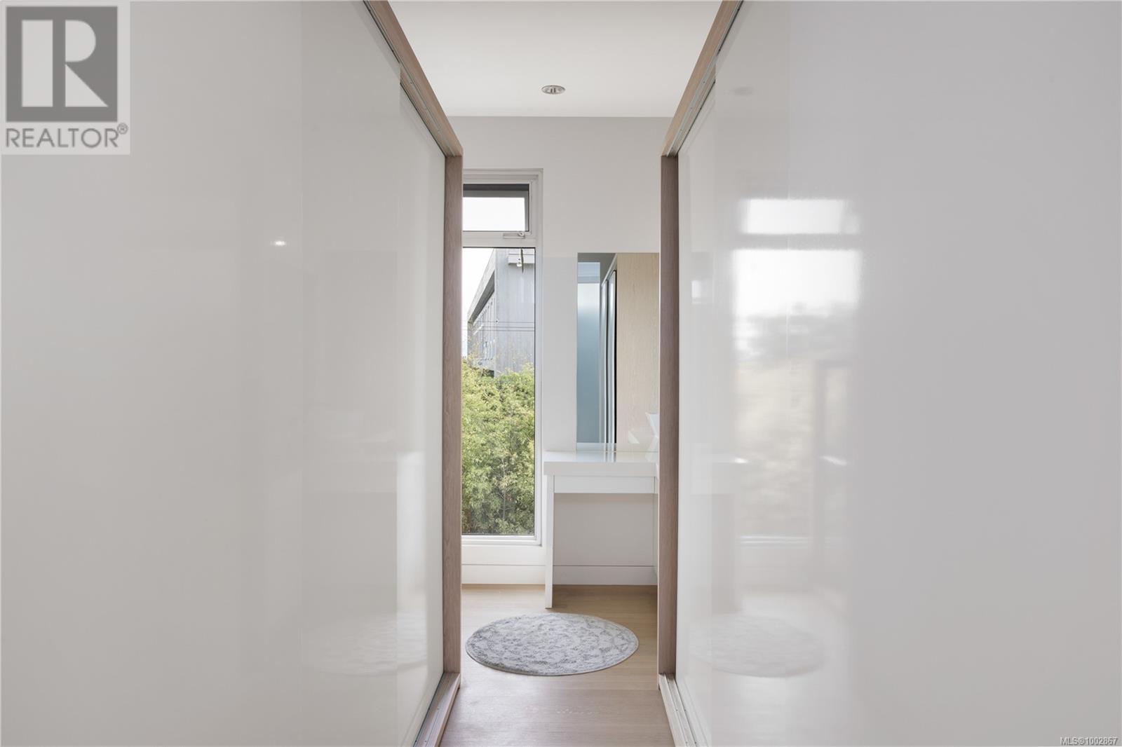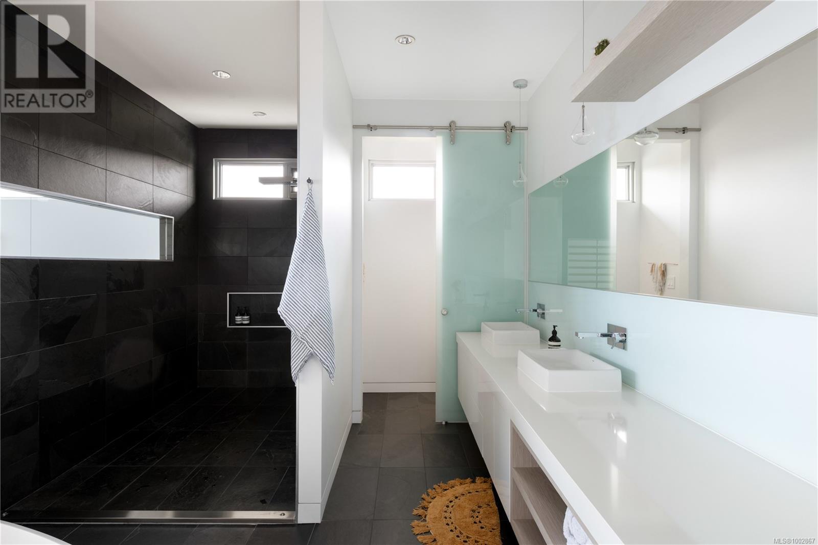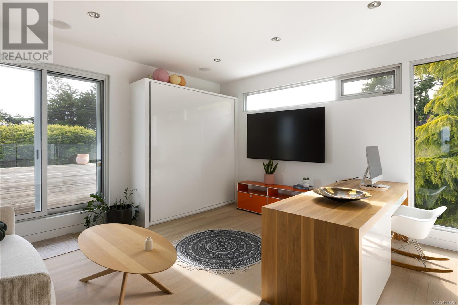 A striking example of modern minimalism perched on the southern edge of Oak Bay, this custom-built oceanfront residence offers panoramic views from nearly every room. Designed for seamless indoor-outdoor living, the main floor boasts 11’ ceilings and expansive glass walls that open onto multiple patios, a sleek swimming pool, and a dedicated gym/studio. The chef’s kitchen features integrated appliances and a massive island perfect for entertaining. Upstairs, the serene primary suite includes a walk-in closet, spa-like ensuite, and private covered balcony. Also accessible from the upper floor is the expansive rooftop deck - perfect for yoga, stargazing, or sunset gatherings. Radiant in-floor heating, custom millwork, and architectural detailing throughout provide comfort and sophistication. Tucked on a private corner lot with a 2-car garage, carport, and lush landscaping, this is coastal living redefined: luxurious, tranquil, and effortlessly connected to nature. (id:2469)