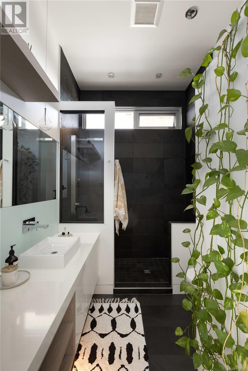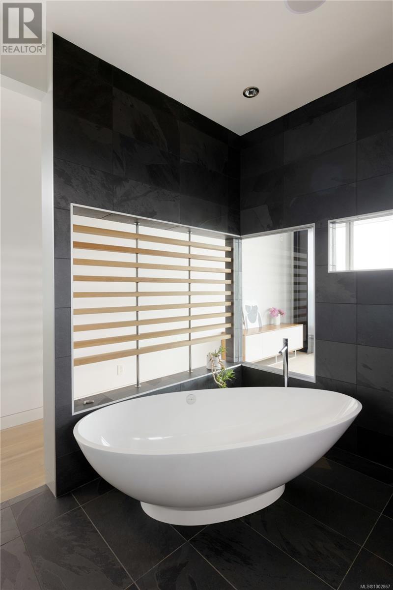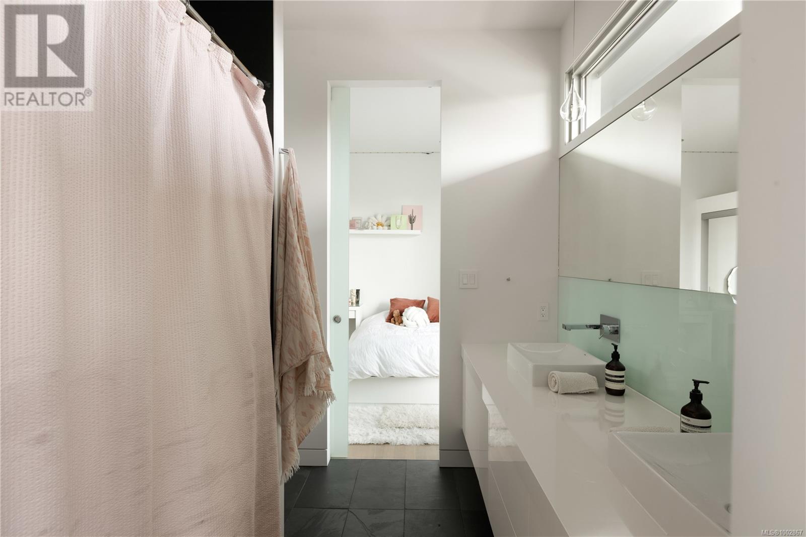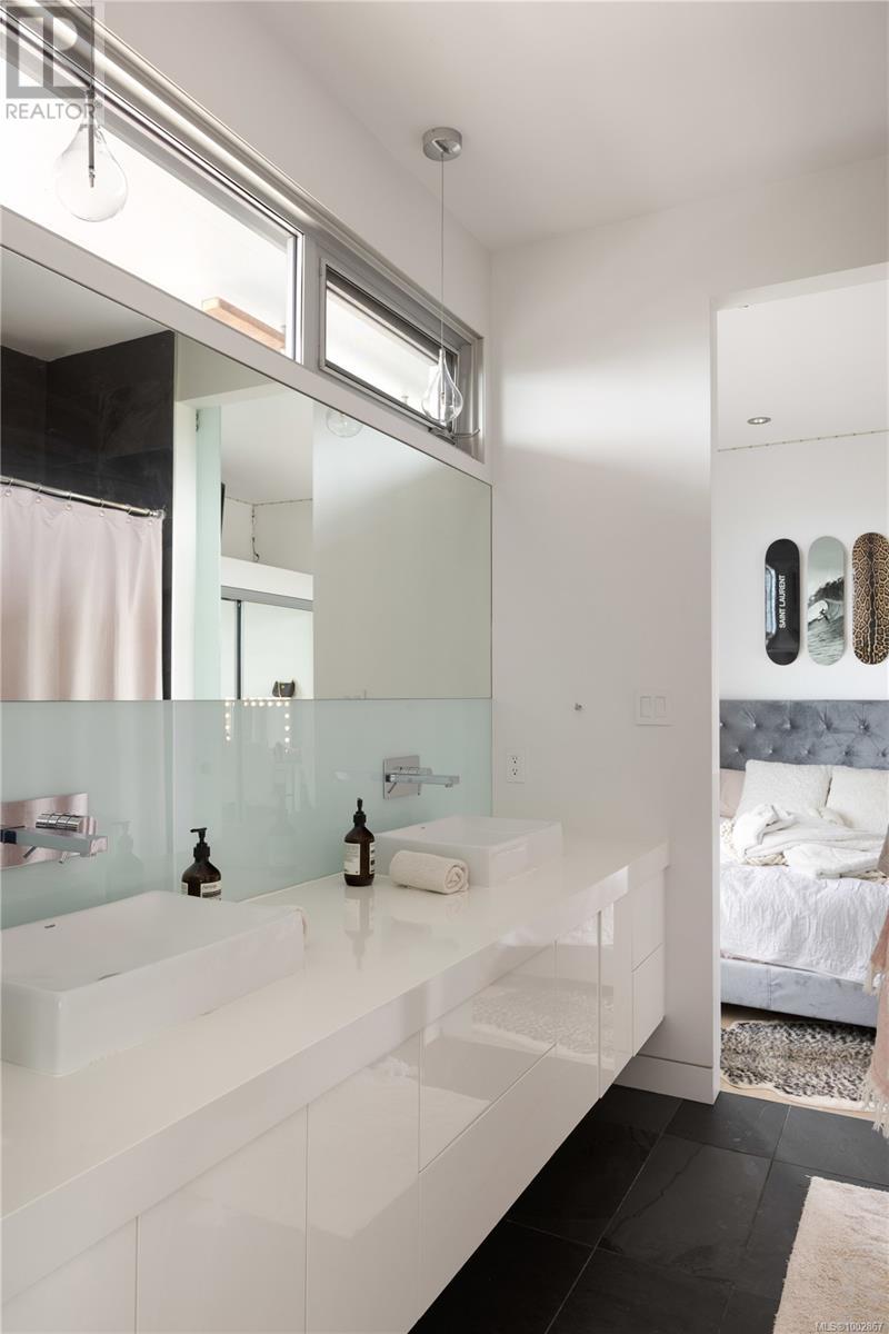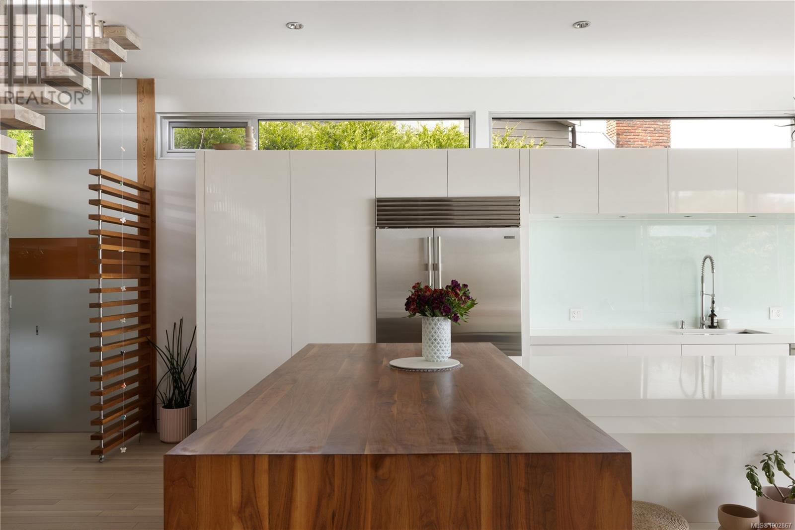 A striking example of modern minimalism perched on the southern edge of Oak Bay, this custom-built oceanfront residence offers panoramic views from nearly every room. Designed for seamless indoor-outdoor living, the main floor boasts 11’ ceilings and expansive glass walls that open onto multiple patios, a sleek swimming pool, and a dedicated gym/studio. The chef’s kitchen features integrated appliances and a massive island perfect for entertaining. Upstairs, the serene primary suite includes a walk-in closet, spa-like ensuite, and private covered balcony. Also accessible from the upper floor is the expansive rooftop deck - perfect for yoga, stargazing, or sunset gatherings. Radiant in-floor heating, custom millwork, and architectural detailing throughout provide comfort and sophistication. Tucked on a private corner lot with a 2-car garage, carport, and lush landscaping, this is coastal living redefined: luxurious, tranquil, and effortlessly connected to nature. (id:2469)