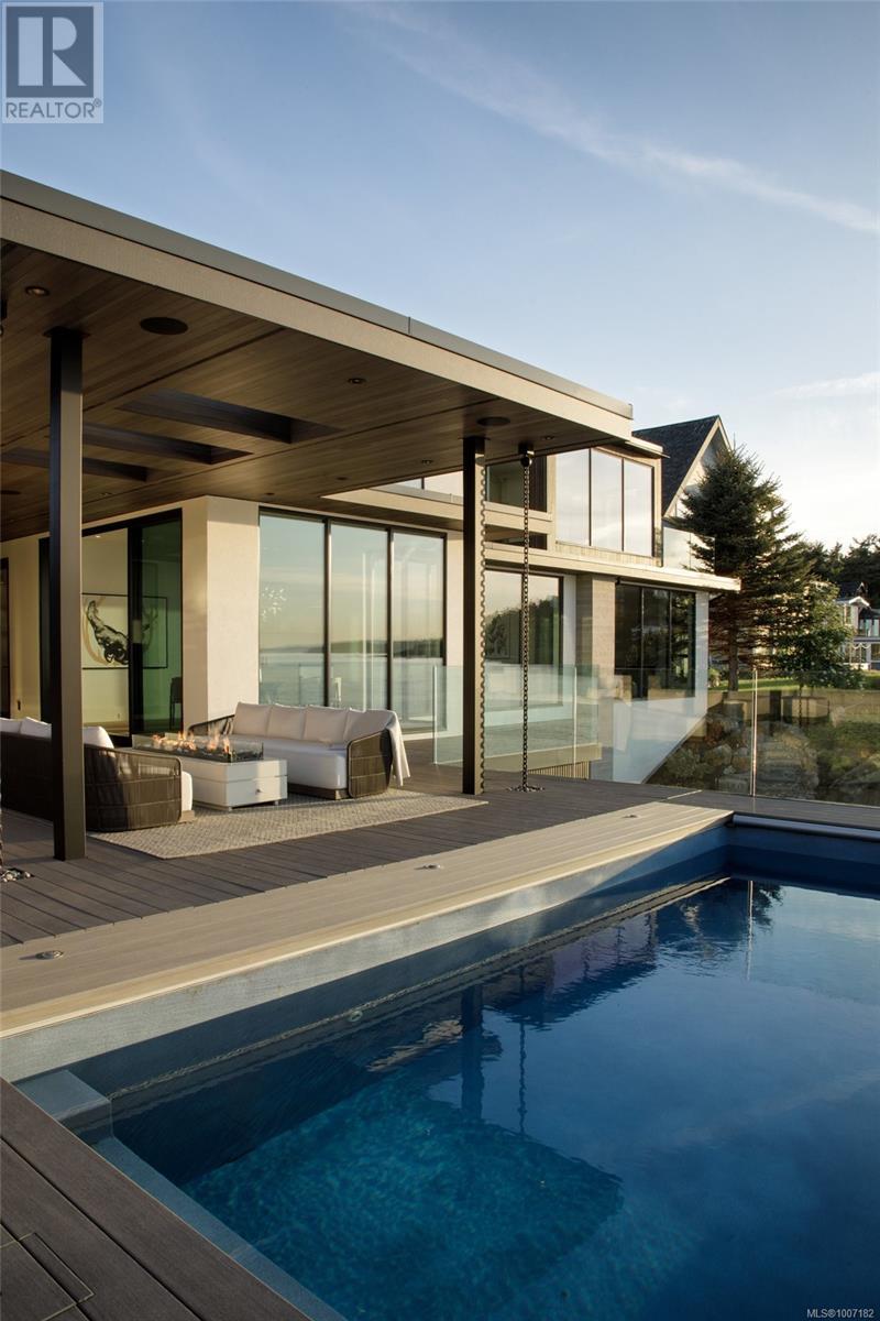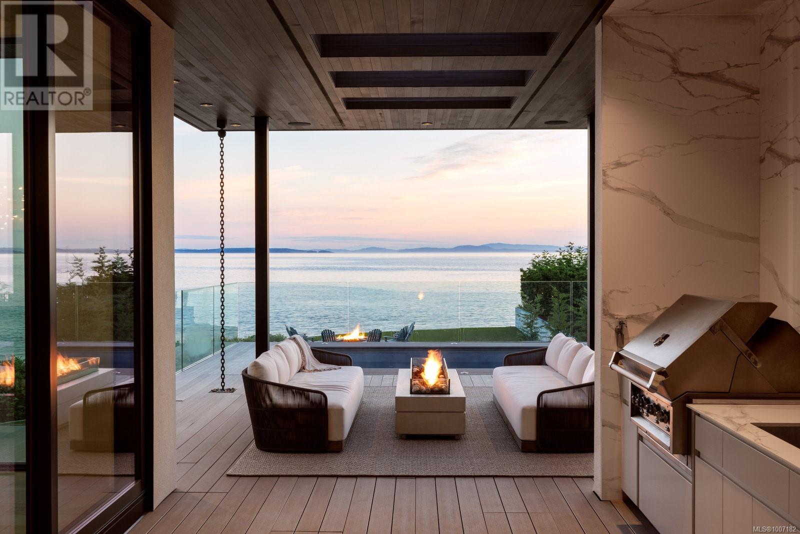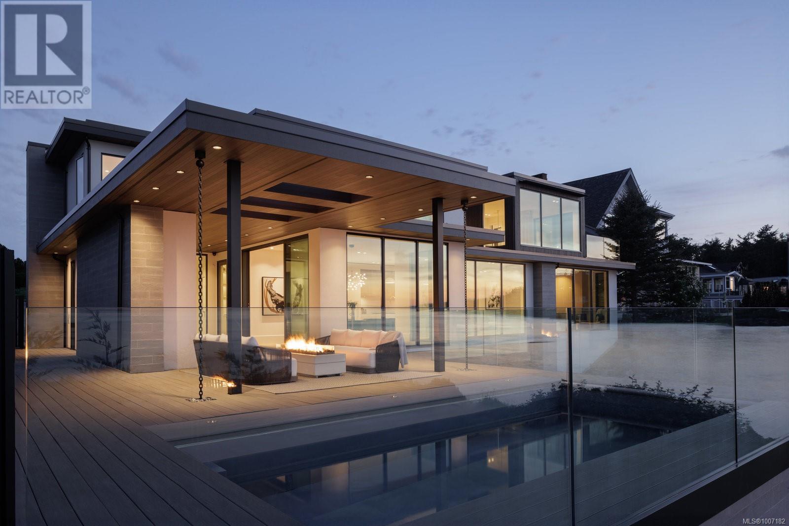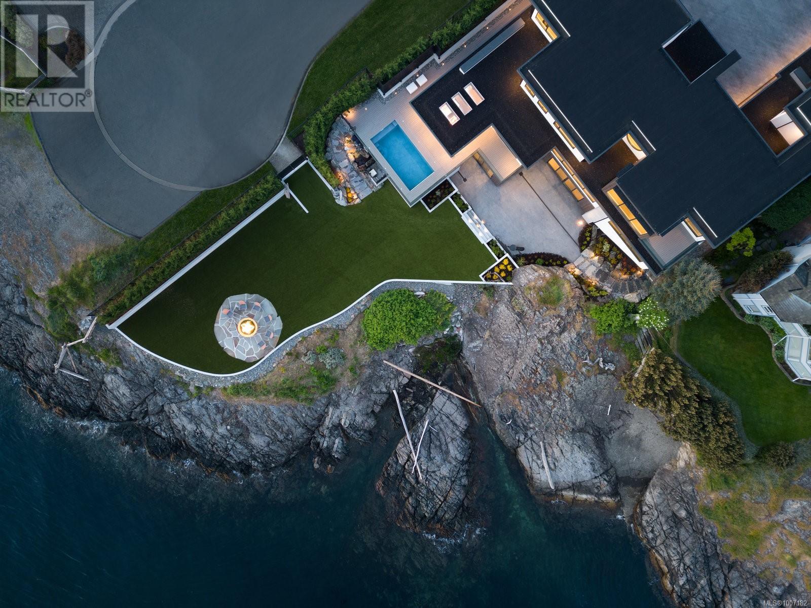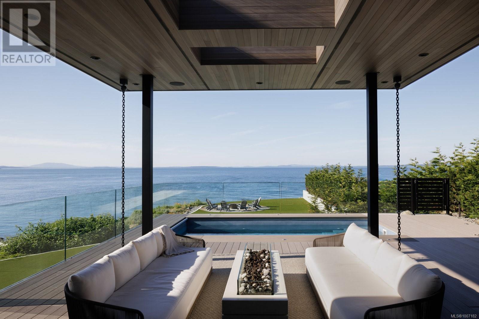 Experience Unparalleled Luxury at Vista del Mare. Perfectly positioned on over half an acre of prime waterfront in the prestigious Ten Mile Point, this architectural masterpiece by Robert Blaney, brought to life by Terry Johal Developments, promises to leave you breathless. Winner of 4 CARE Awards, including Best Single Family Detached Home, Best Innovative Feature, Best Primary Suite and Best Custom Millwork. Step into grandeur with 10-foot ceilings and a show-stopping steel and white oak floating spiral staircase that sets the tone for the rest of this captivating home. The expansive floor-to-ceiling windows on all three levels not only flood the interior with natural light but also offer uninterrupted views of Haro Strait and San Juan Island, making every room a visual delight. The neutral colour palette, accented by targeted designer lighting, creates an ambiance that is both clean and invigorating. The main floor's open-plan design maximizes these ocean views, seamlessly integrating the living, dining, and kitchen areas for effortless entertaining and everyday living. The sky-lit covered patio, adjacent to your complete outdoor kitchen with a deluxe Hestan grill and Fontana Forni pizza oven - imported from Italy- allows for al fresco dining with the backdrop of stunning seascapes, with the occasional killer whale and aurora borealis sighting. Enjoy a dip in the heated pool, followed by a rinse in the outdoor shower. Car enthusiasts will appreciate the attached three-car garage, equipped with two vehicle elevators. Above the garage, a separate, well-insulated guest suite offers a private living area, bedroom, and full bath. (id:2469)