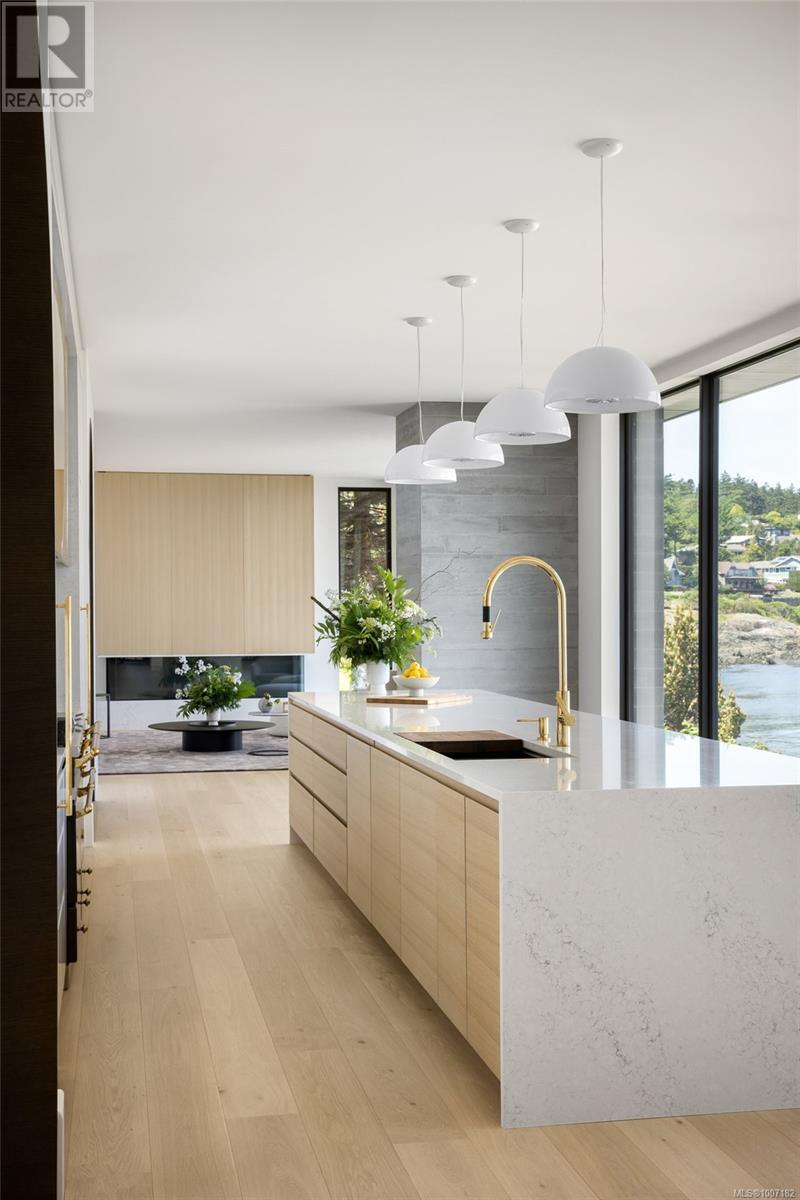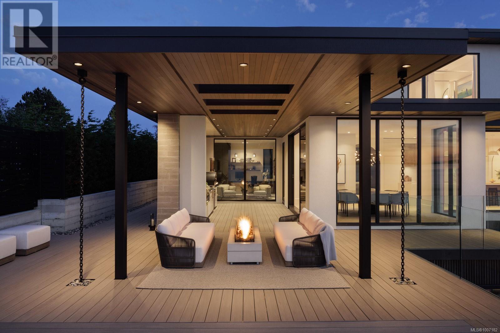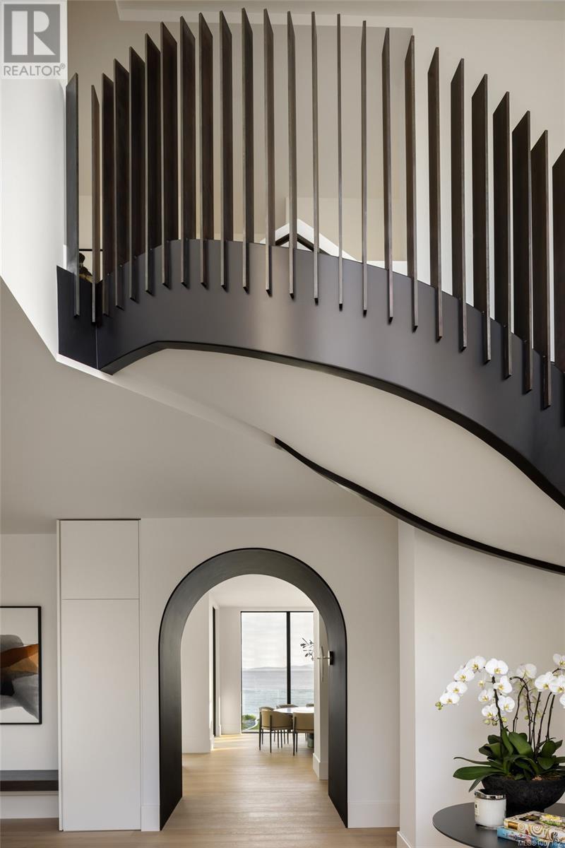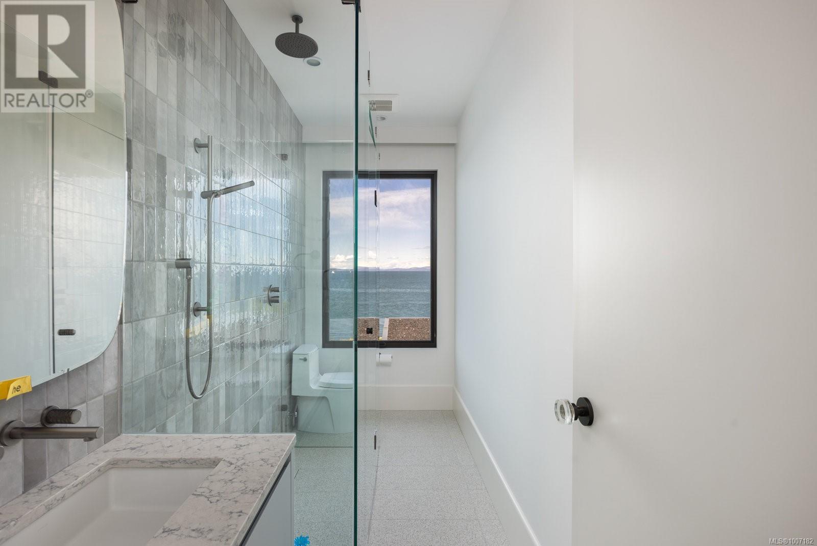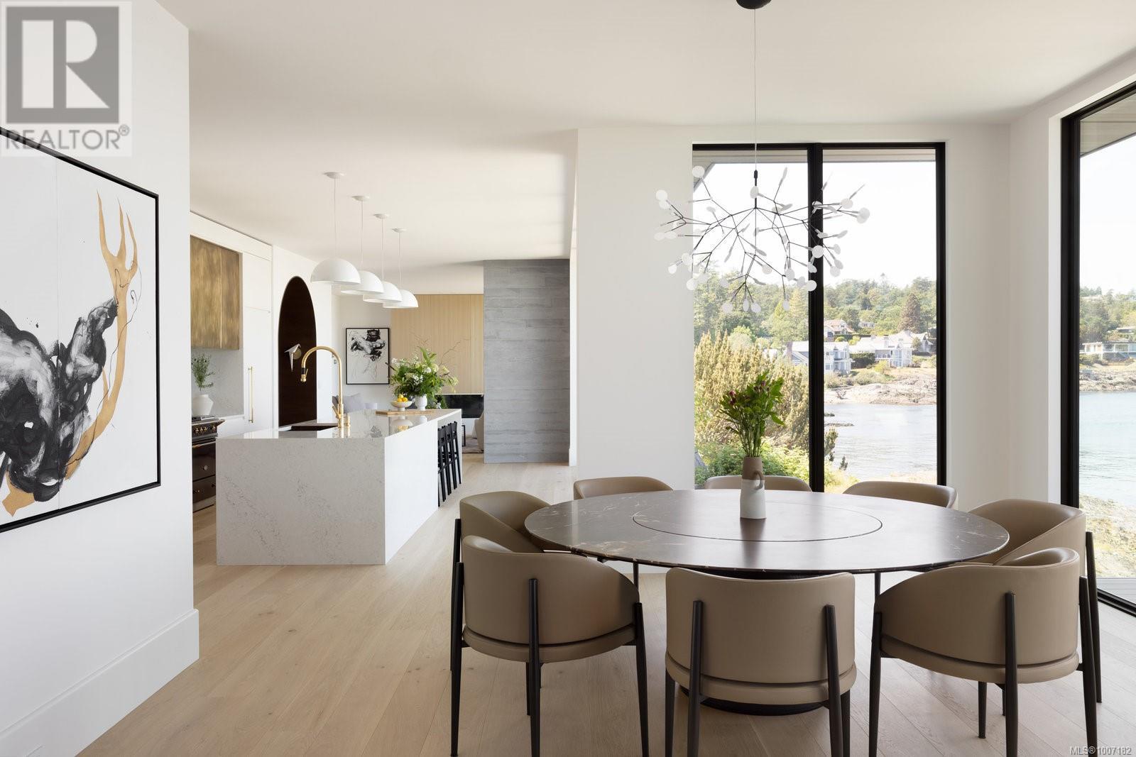 Experience Unparalleled Luxury at Vista del Mare. Perfectly positioned on over half an acre of prime waterfront in the prestigious Ten Mile Point, this architectural masterpiece by Robert Blaney, brought to life by Terry Johal Developments, promises to leave you breathless. Winner of 4 CARE Awards, including Best Single Family Detached Home, Best Innovative Feature, Best Primary Suite and Best Custom Millwork. Step into grandeur with 10-foot ceilings and a show-stopping steel and white oak floating spiral staircase that sets the tone for the rest of this captivating home. The expansive floor-to-ceiling windows on all three levels not only flood the interior with natural light but also offer uninterrupted views of Haro Strait and San Juan Island, making every room a visual delight. The neutral colour palette, accented by targeted designer lighting, creates an ambiance that is both clean and invigorating. The main floor's open-plan design maximizes these ocean views, seamlessly integrating the living, dining, and kitchen areas for effortless entertaining and everyday living. The sky-lit covered patio, adjacent to your complete outdoor kitchen with a deluxe Hestan grill and Fontana Forni pizza oven - imported from Italy- allows for al fresco dining with the backdrop of stunning seascapes, with the occasional killer whale and aurora borealis sighting. Enjoy a dip in the heated pool, followed by a rinse in the outdoor shower. Car enthusiasts will appreciate the attached three-car garage, equipped with two vehicle elevators. Above the garage, a separate, well-insulated guest suite offers a private living area, bedroom, and full bath. (id:2469)