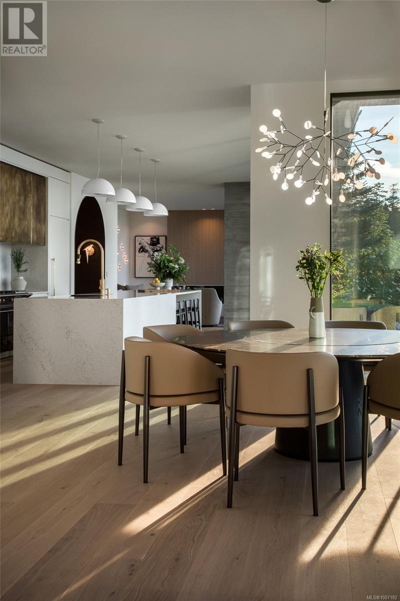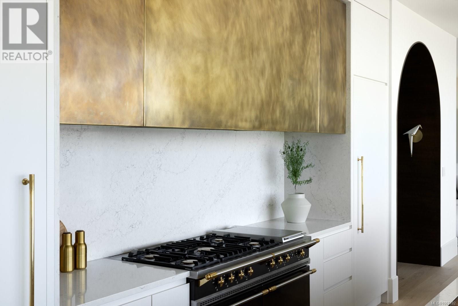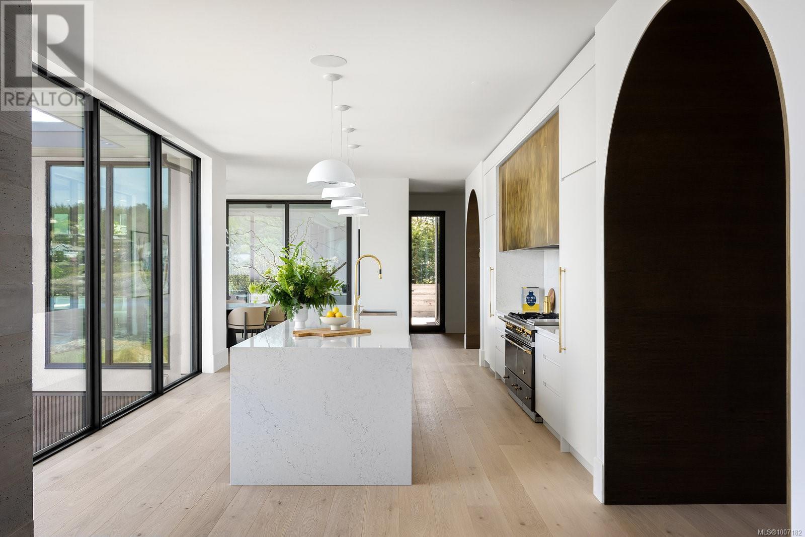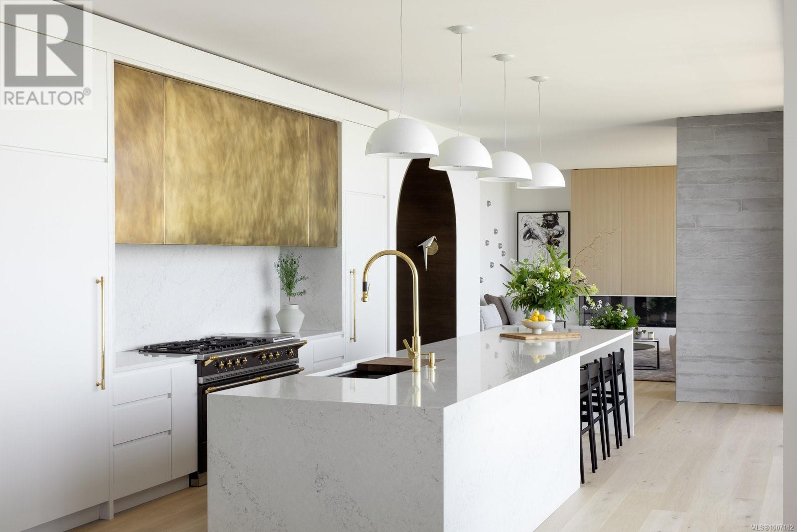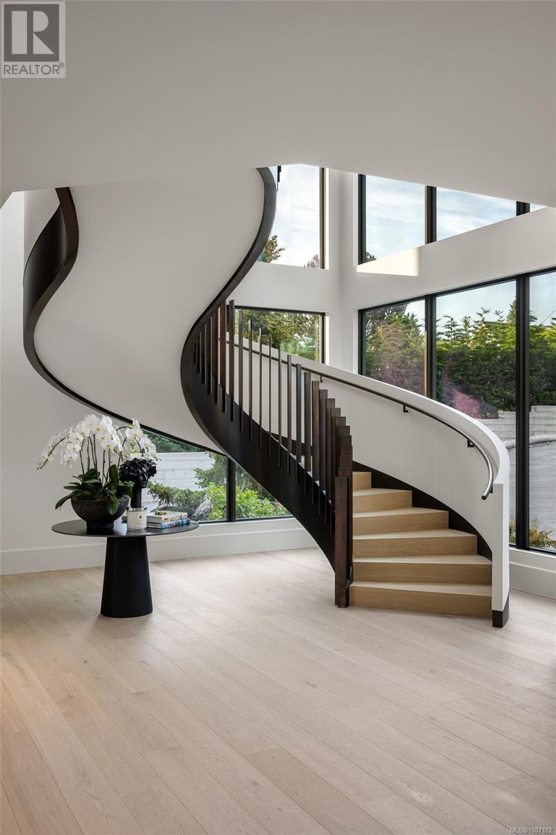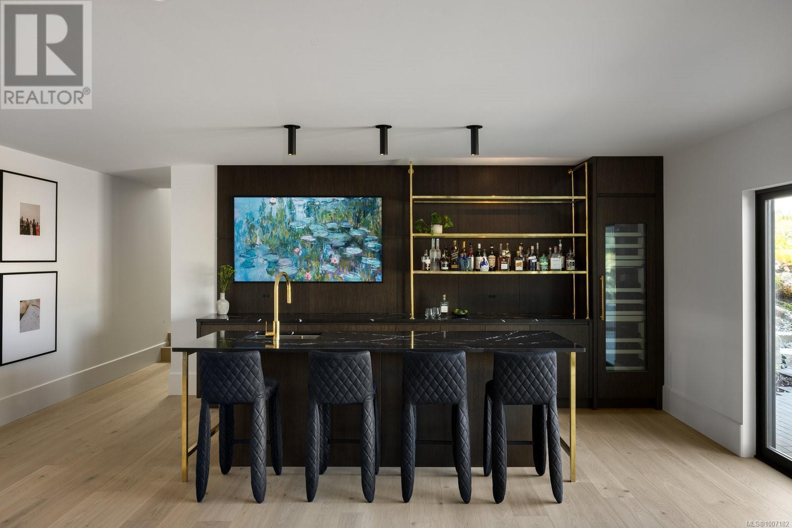 Experience Unparalleled Luxury at Vista del Mare. Perfectly positioned on over half an acre of prime waterfront in the prestigious Ten Mile Point, this architectural masterpiece by Robert Blaney, brought to life by Terry Johal Developments, promises to leave you breathless. Winner of 4 CARE Awards, including Best Single Family Detached Home, Best Innovative Feature, Best Primary Suite and Best Custom Millwork. Step into grandeur with 10-foot ceilings and a show-stopping steel and white oak floating spiral staircase that sets the tone for the rest of this captivating home. The expansive floor-to-ceiling windows on all three levels not only flood the interior with natural light but also offer uninterrupted views of Haro Strait and San Juan Island, making every room a visual delight. The neutral colour palette, accented by targeted designer lighting, creates an ambiance that is both clean and invigorating. The main floor's open-plan design maximizes these ocean views, seamlessly integrating the living, dining, and kitchen areas for effortless entertaining and everyday living. The sky-lit covered patio, adjacent to your complete outdoor kitchen with a deluxe Hestan grill and Fontana Forni pizza oven - imported from Italy- allows for al fresco dining with the backdrop of stunning seascapes, with the occasional killer whale and aurora borealis sighting. Enjoy a dip in the heated pool, followed by a rinse in the outdoor shower. Car enthusiasts will appreciate the attached three-car garage, equipped with two vehicle elevators. Above the garage, a separate, well-insulated guest suite offers a private living area, bedroom, and full bath. (id:2469)