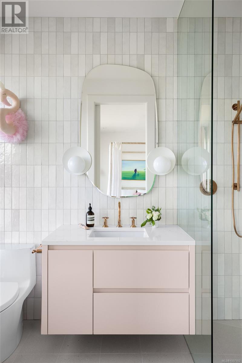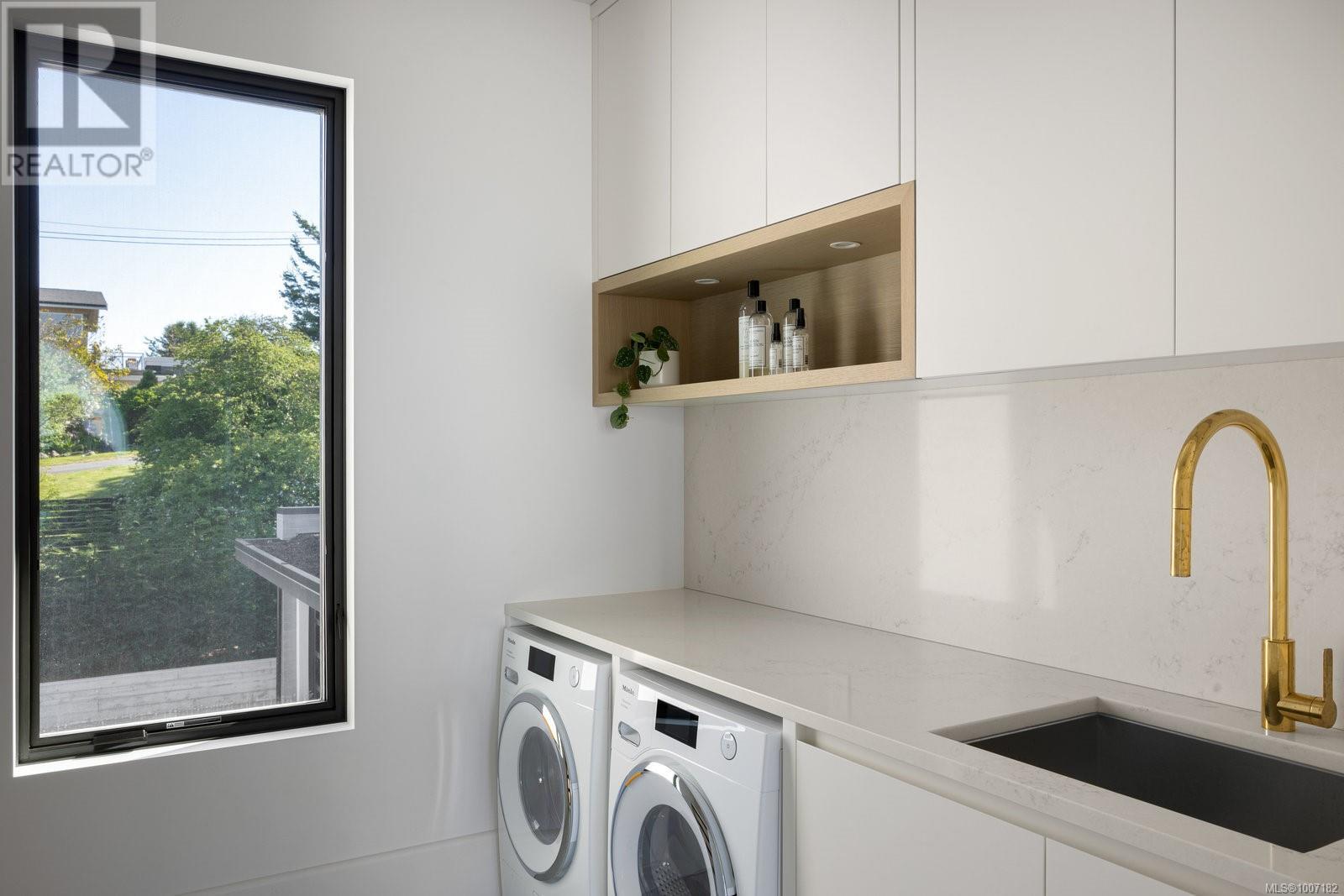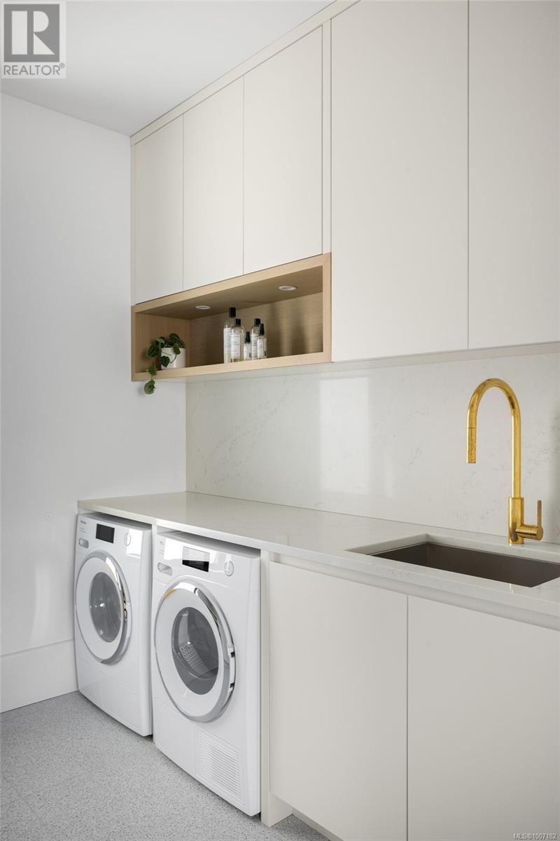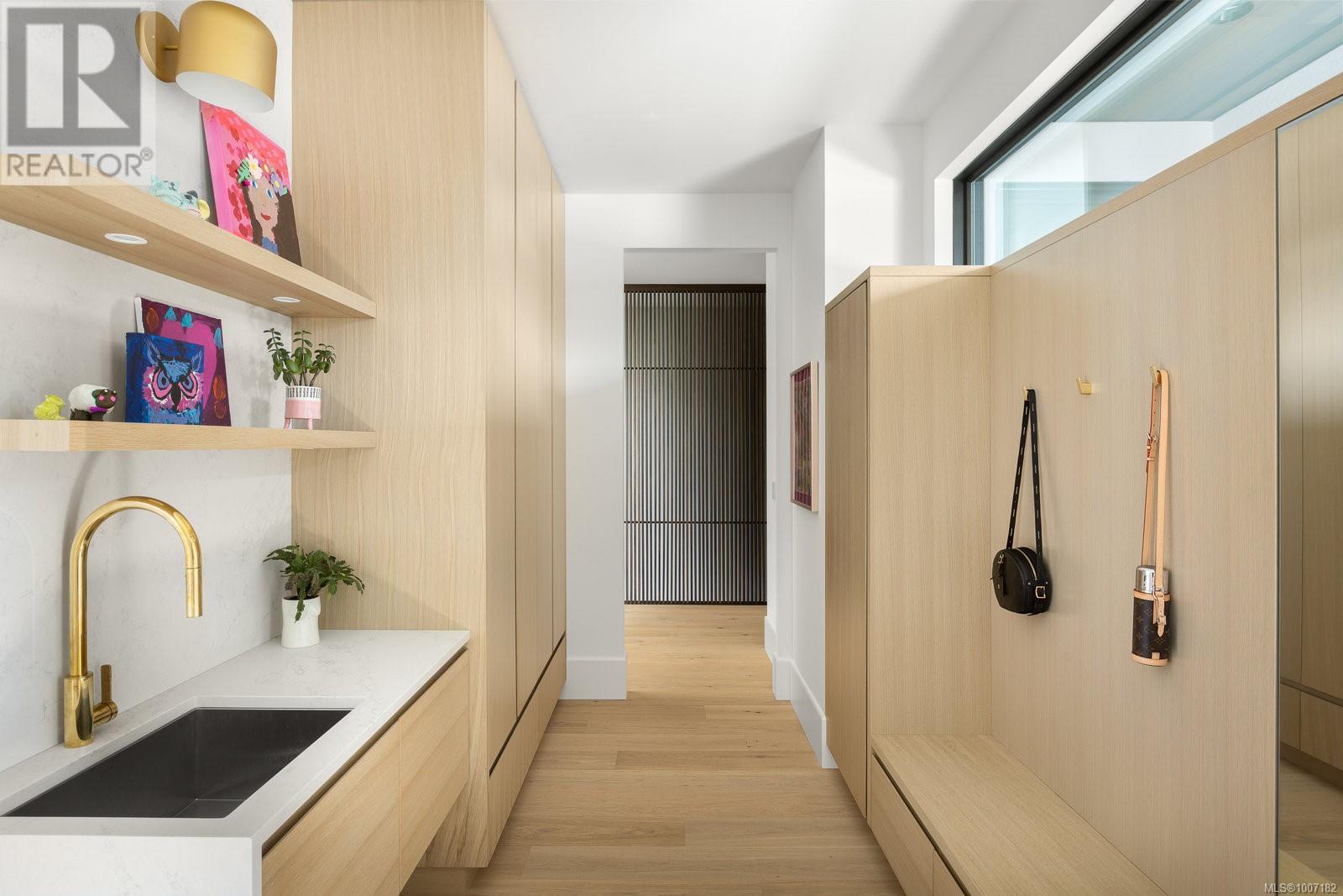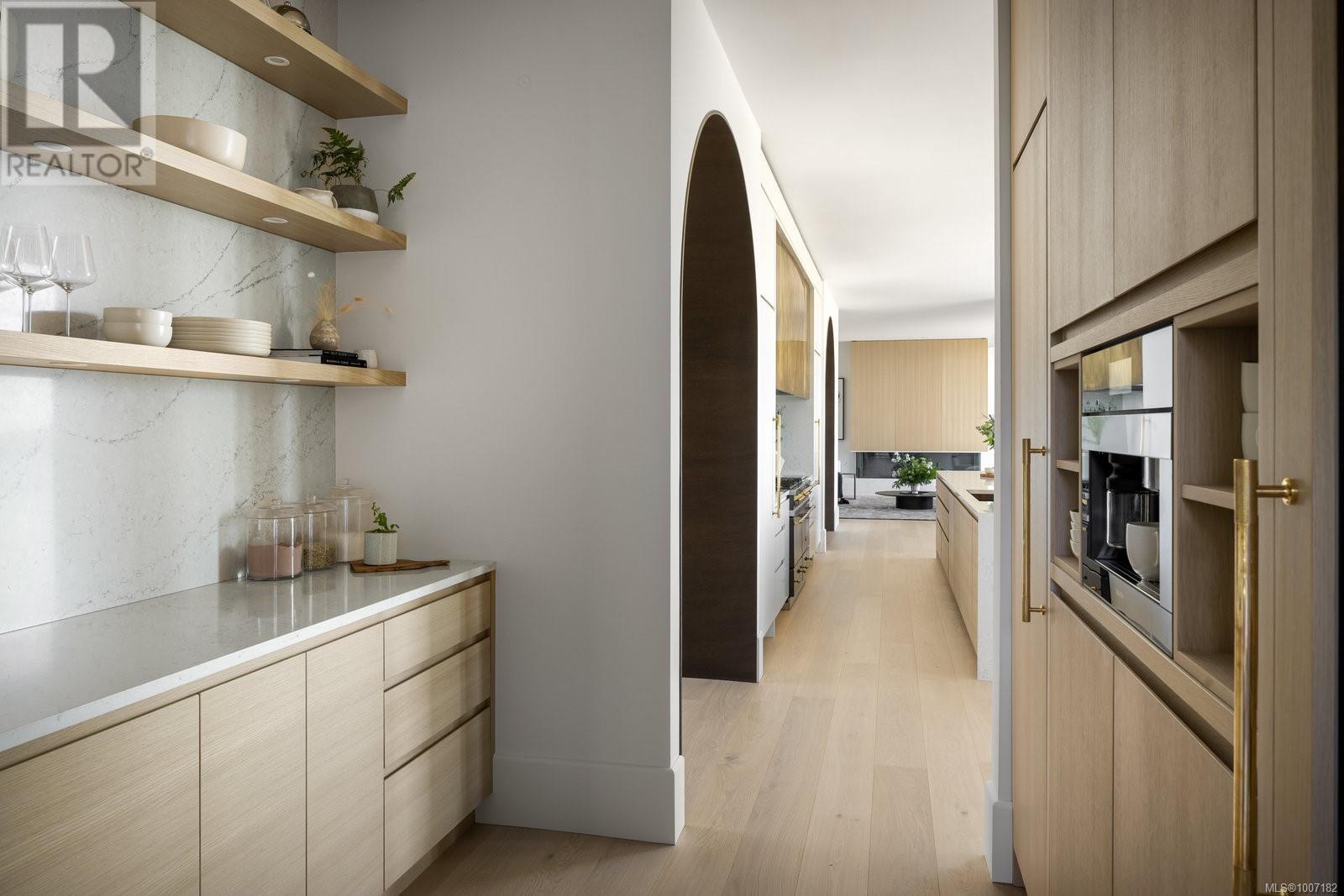 Experience Unparalleled Luxury at Vista del Mare. Perfectly positioned on over half an acre of prime waterfront in the prestigious Ten Mile Point, this architectural masterpiece by Robert Blaney, brought to life by Terry Johal Developments, promises to leave you breathless. Winner of 4 CARE Awards, including Best Single Family Detached Home, Best Innovative Feature, Best Primary Suite and Best Custom Millwork. Step into grandeur with 10-foot ceilings and a show-stopping steel and white oak floating spiral staircase that sets the tone for the rest of this captivating home. The expansive floor-to-ceiling windows on all three levels not only flood the interior with natural light but also offer uninterrupted views of Haro Strait and San Juan Island, making every room a visual delight. The neutral colour palette, accented by targeted designer lighting, creates an ambiance that is both clean and invigorating. The main floor's open-plan design maximizes these ocean views, seamlessly integrating the living, dining, and kitchen areas for effortless entertaining and everyday living. The sky-lit covered patio, adjacent to your complete outdoor kitchen with a deluxe Hestan grill and Fontana Forni pizza oven - imported from Italy- allows for al fresco dining with the backdrop of stunning seascapes, with the occasional killer whale and aurora borealis sighting. Enjoy a dip in the heated pool, followed by a rinse in the outdoor shower. Car enthusiasts will appreciate the attached three-car garage, equipped with two vehicle elevators. Above the garage, a separate, well-insulated guest suite offers a private living area, bedroom, and full bath. (id:2469)