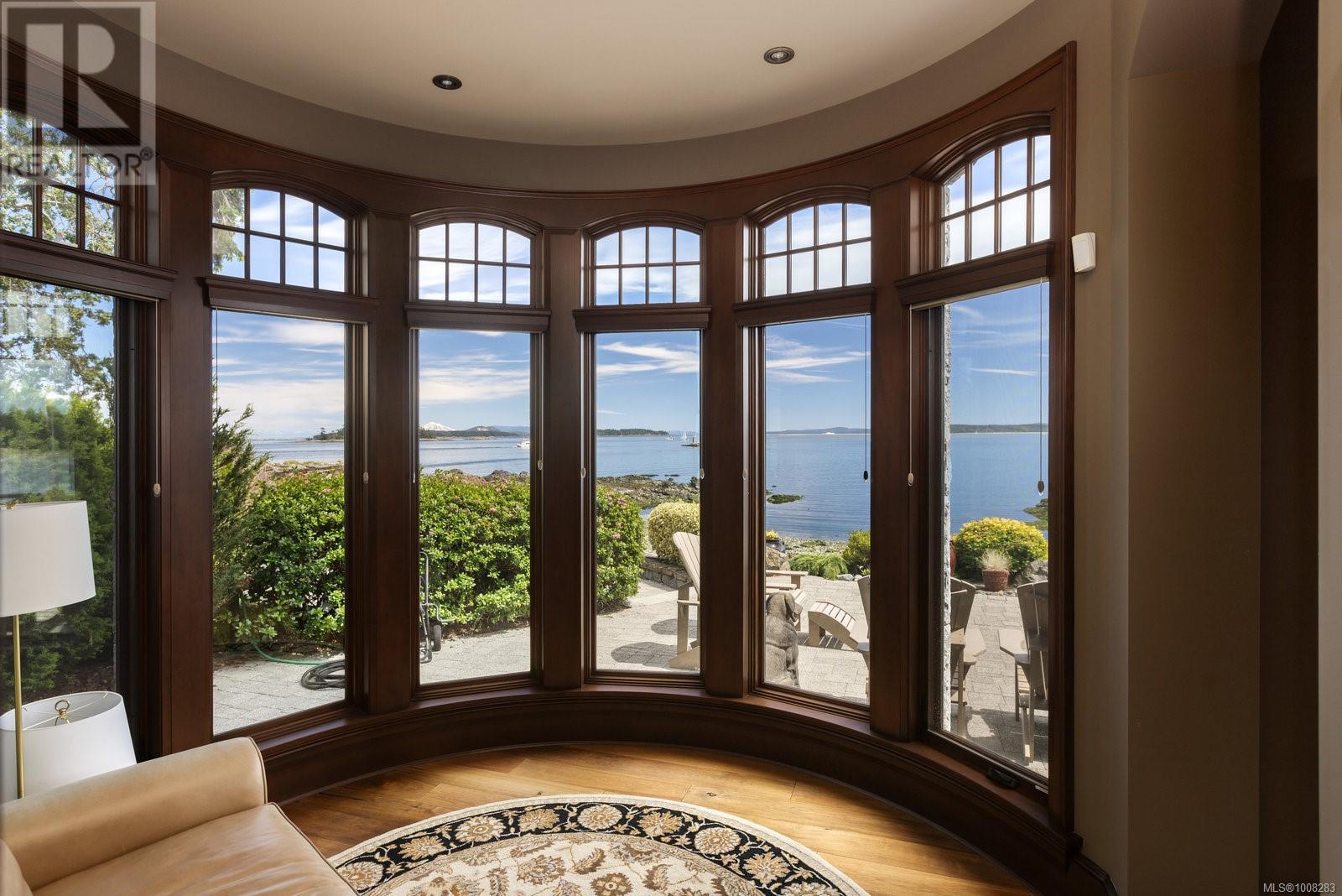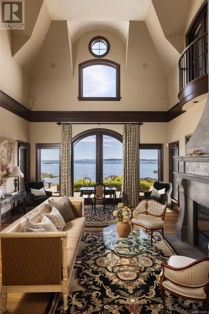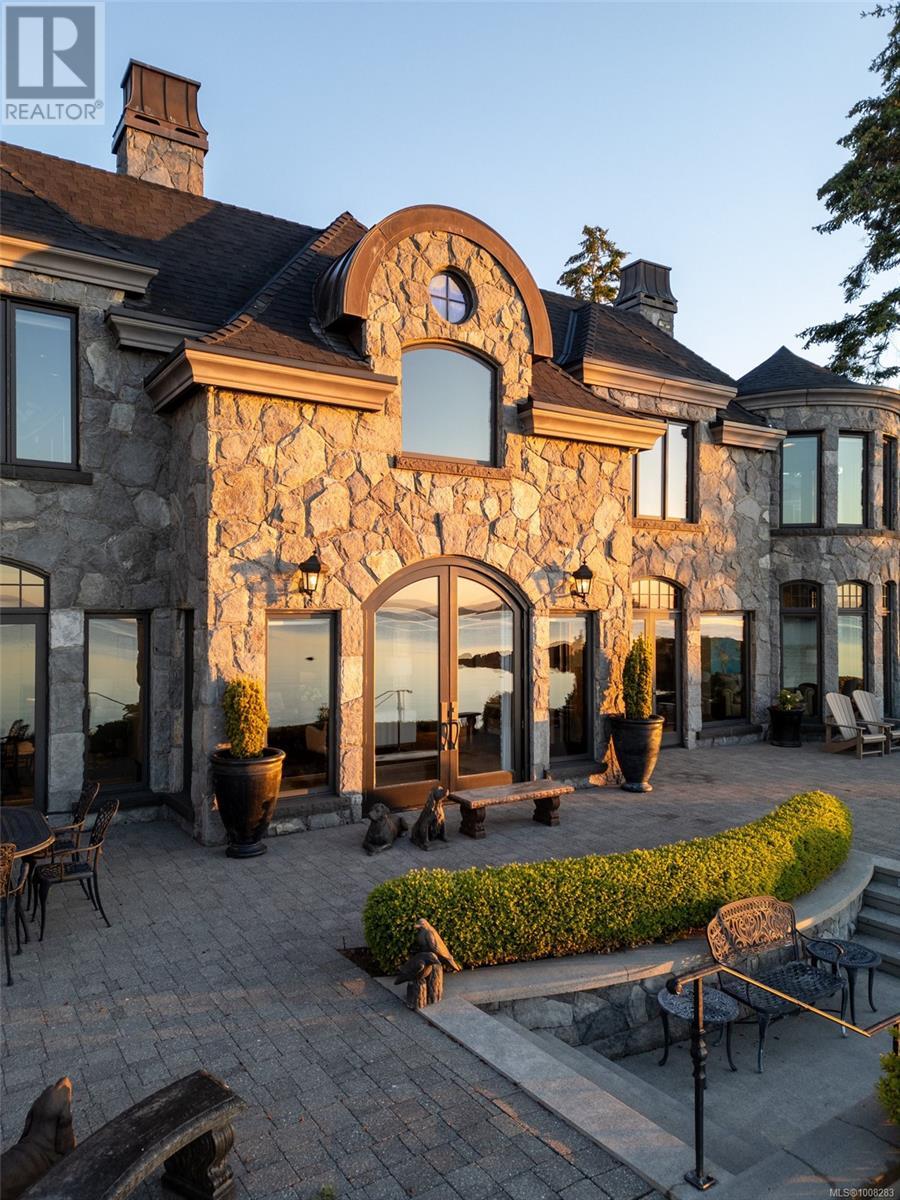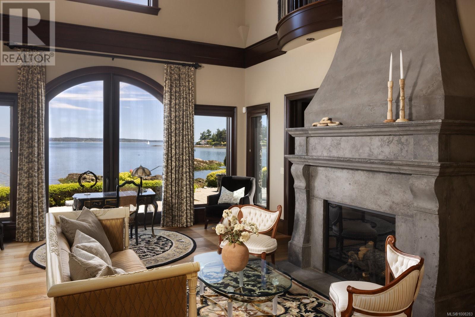 We proudly present this sophisticated West Coast waterfront retreat, showcasing breathtaking southerly panoramic ocean views of the Gulf Islands and Mount Baker. With its soaring ceilings and expansive windows, this solid stone residence creates a sensation of floating on water, offering an unparalleled living experience. Prepare to be mesmerized by the meticulous attention to detail and this home's high-quality construction and finishes, including walnut flooring imported from France, seven indoor fireplaces and custom millwork throughout. With a ground-level entry, guest quarters on the main floor and an elevator to the second level, the home offers enhanced accessibility. The main level boasts an exquisite circular kitchen with high-end appliances and a butler's pantry. The formal dining room is perfect for hosting elegant dinners, while the great room, featuring 21-foot ceilings, creates a grand yet inviting atmosphere. A charming study with built-in shelves and a coffered ceiling provides an ideal home office. Ascending the spiral staircase, you'll find a luxurious primary suite with a circular balcony offering ocean vistas, a serene reading nook, and a relaxing sauna, providing a private sanctuary for rest and rejuvenation. Enjoy your private enclosed sunroom, conveniently accessible from the primary bedroom's walk-in closet. The deluxe media room is ideal for movie nights, while the family room, with its convenient kitchenette and games room, offers additional space for activities. The exterior features are equally impressive, with expansive terraces perfect for outdoor dining, lounging and taking in the views. The low-maintenance, manicured grounds make upkeep easy, while a private hot tub patio offers a serene, relaxing space. Enjoy direct access to a sandy beach with a low-bank waterfront. Fully fenced and gated, this prime location is just minutes from all amenities, with convenient access to the Airport, BC Ferries and world-class marinas. (id:2469)