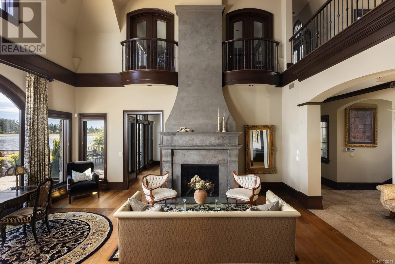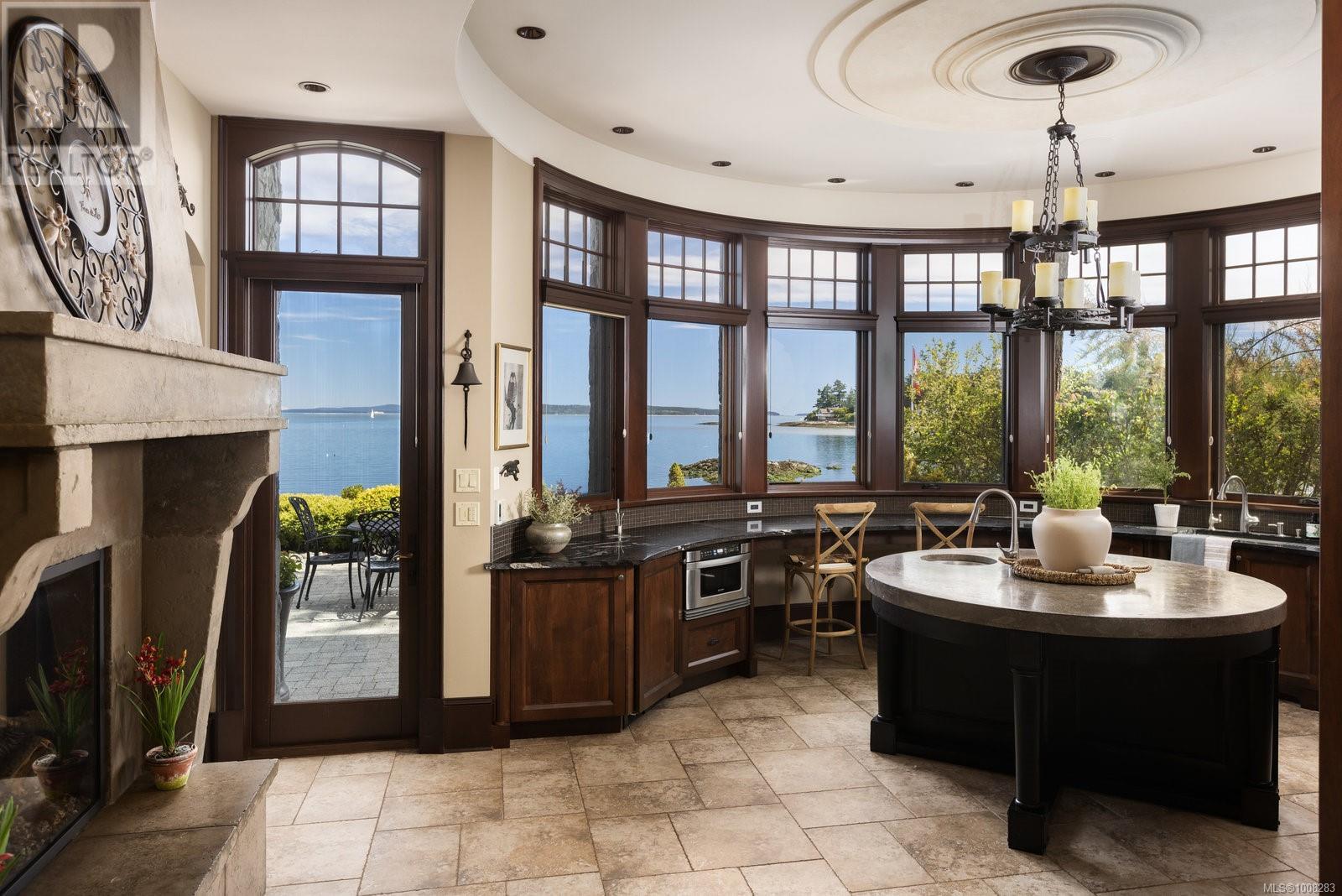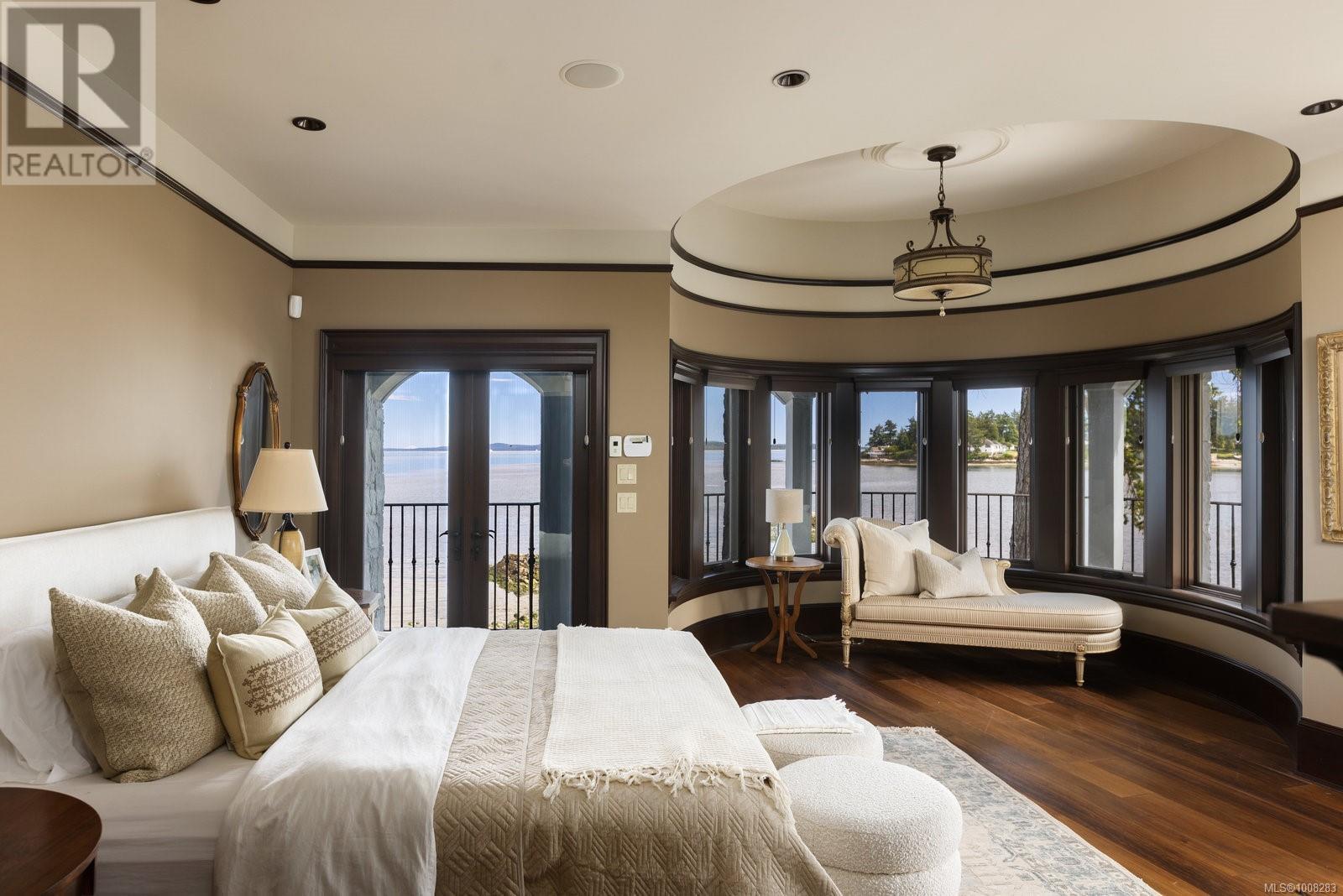 We proudly present this sophisticated West Coast waterfront retreat, showcasing breathtaking southerly panoramic ocean views of the Gulf Islands and Mount Baker. With its soaring ceilings and expansive windows, this solid stone residence creates a sensation of floating on water, offering an unparalleled living experience. Prepare to be mesmerized by the meticulous attention to detail and this home's high-quality construction and finishes, including walnut flooring imported from France, seven indoor fireplaces and custom millwork throughout. With a ground-level entry, guest quarters on the main floor and an elevator to the second level, the home offers enhanced accessibility. The main level boasts an exquisite circular kitchen with high-end appliances and a butler's pantry. The formal dining room is perfect for hosting elegant dinners, while the great room, featuring 21-foot ceilings, creates a grand yet inviting atmosphere. A charming study with built-in shelves and a coffered ceiling provides an ideal home office. Ascending the spiral staircase, you'll find a luxurious primary suite with a circular balcony offering ocean vistas, a serene reading nook, and a relaxing sauna, providing a private sanctuary for rest and rejuvenation. Enjoy your private enclosed sunroom, conveniently accessible from the primary bedroom's walk-in closet. The deluxe media room is ideal for movie nights, while the family room, with its convenient kitchenette and games room, offers additional space for activities. The exterior features are equally impressive, with expansive terraces perfect for outdoor dining, lounging and taking in the views. The low-maintenance, manicured grounds make upkeep easy, while a private hot tub patio offers a serene, relaxing space. Enjoy direct access to a sandy beach with a low-bank waterfront. Fully fenced and gated, this prime location is just minutes from all amenities, with convenient access to the Airport, BC Ferries and world-class marinas. (id:2469)