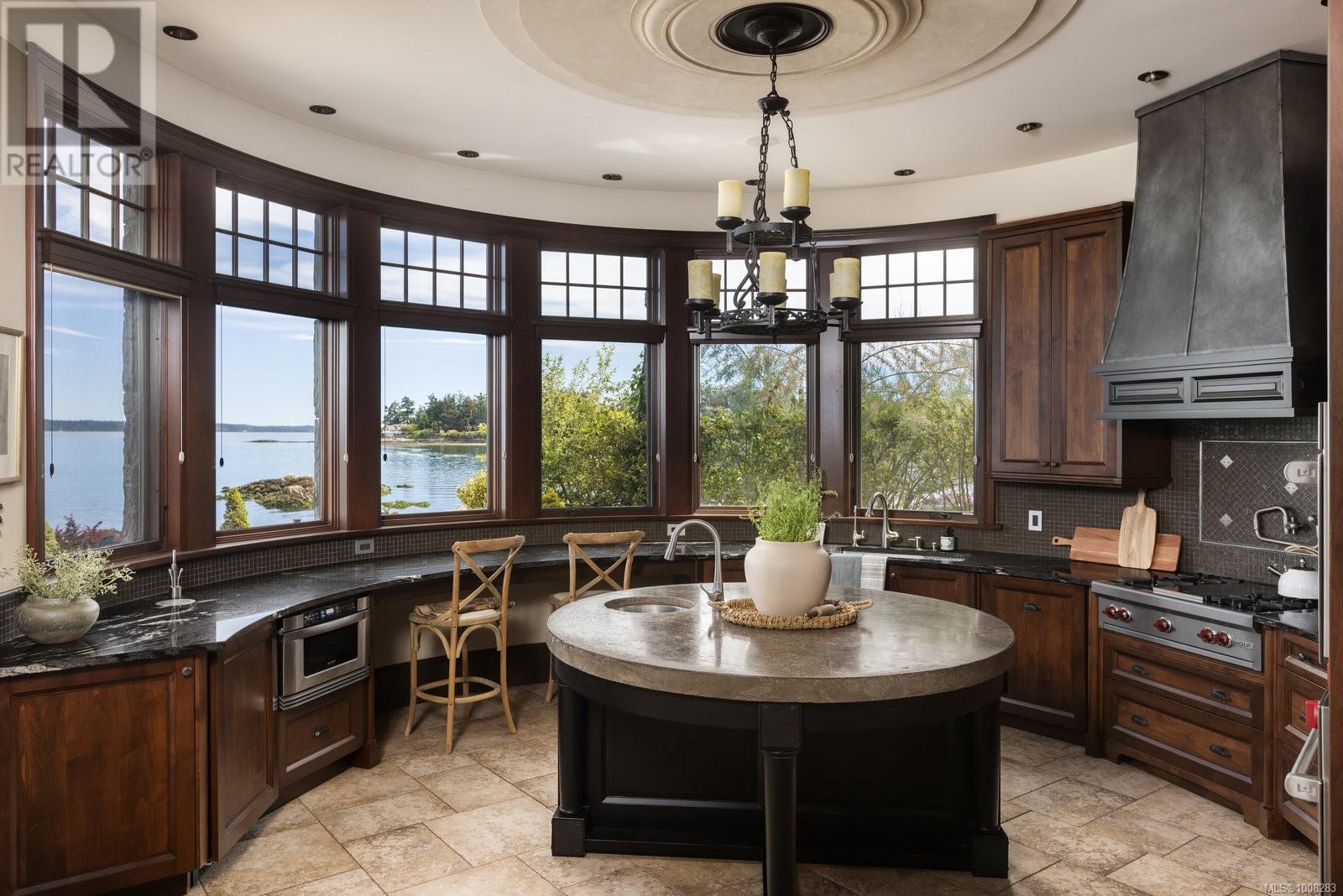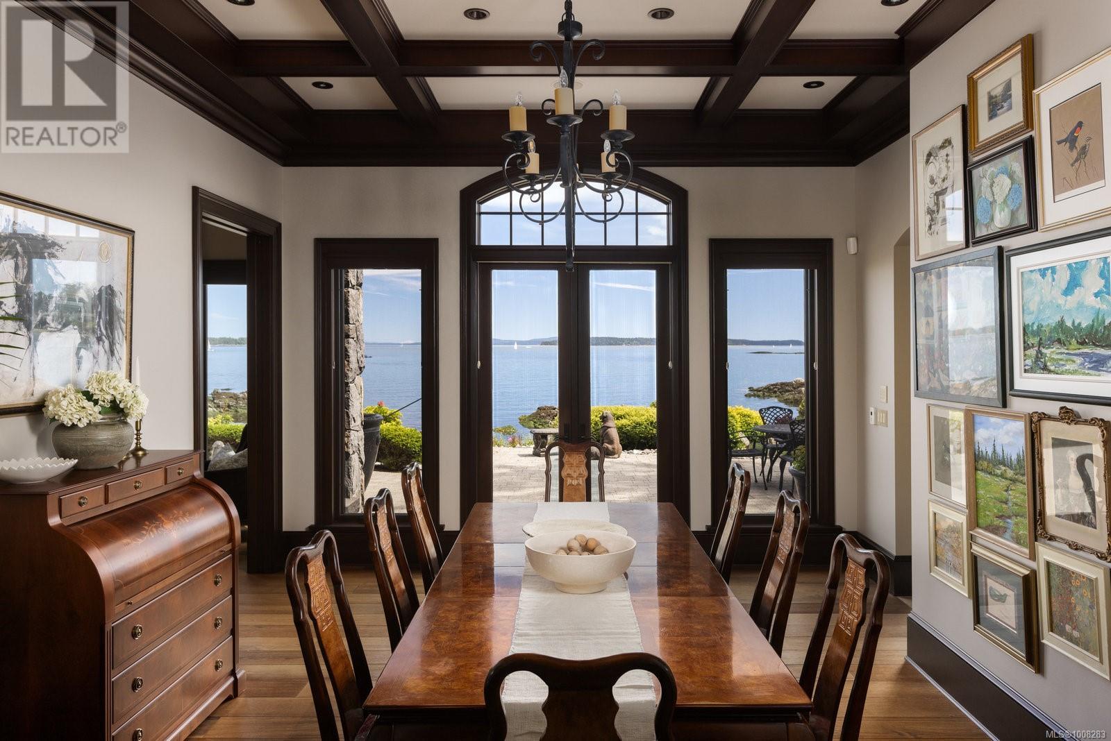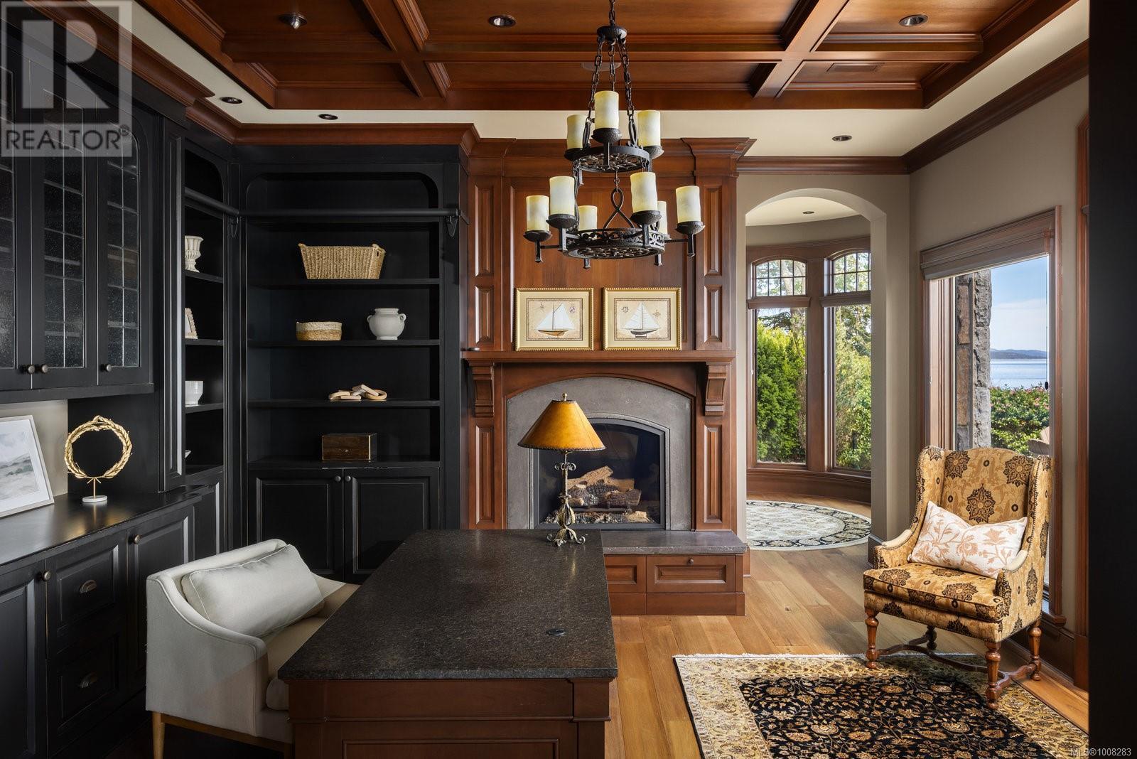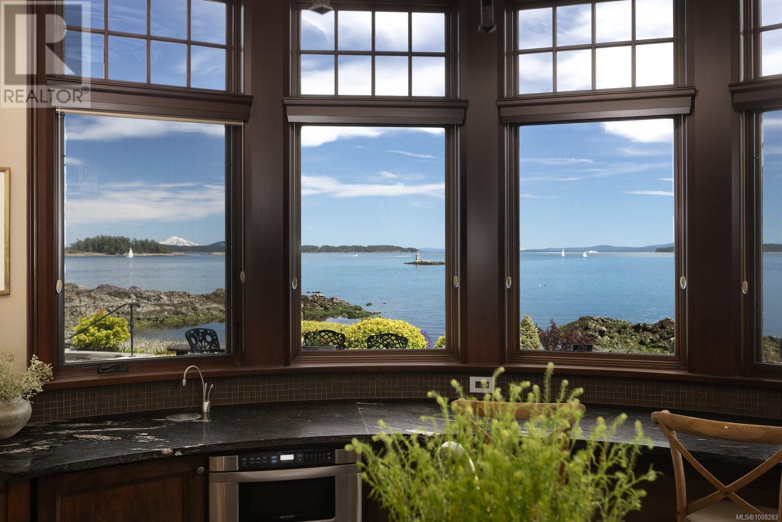 We proudly present this sophisticated West Coast waterfront retreat, showcasing breathtaking southerly panoramic ocean views of the Gulf Islands and Mount Baker. With its soaring ceilings and expansive windows, this solid stone residence creates a sensation of floating on water, offering an unparalleled living experience. Prepare to be mesmerized by the meticulous attention to detail and this home's high-quality construction and finishes, including walnut flooring imported from France, seven indoor fireplaces and custom millwork throughout. With a ground-level entry, guest quarters on the main floor and an elevator to the second level, the home offers enhanced accessibility. The main level boasts an exquisite circular kitchen with high-end appliances and a butler's pantry. The formal dining room is perfect for hosting elegant dinners, while the great room, featuring 21-foot ceilings, creates a grand yet inviting atmosphere. A charming study with built-in shelves and a coffered ceiling provides an ideal home office. Ascending the spiral staircase, you'll find a luxurious primary suite with a circular balcony offering ocean vistas, a serene reading nook, and a relaxing sauna, providing a private sanctuary for rest and rejuvenation. Enjoy your private enclosed sunroom, conveniently accessible from the primary bedroom's walk-in closet. The deluxe media room is ideal for movie nights, while the family room, with its convenient kitchenette and games room, offers additional space for activities. The exterior features are equally impressive, with expansive terraces perfect for outdoor dining, lounging and taking in the views. The low-maintenance, manicured grounds make upkeep easy, while a private hot tub patio offers a serene, relaxing space. Enjoy direct access to a sandy beach with a low-bank waterfront. Fully fenced and gated, this prime location is just minutes from all amenities, with convenient access to the Airport, BC Ferries and world-class marinas. (id:2469)