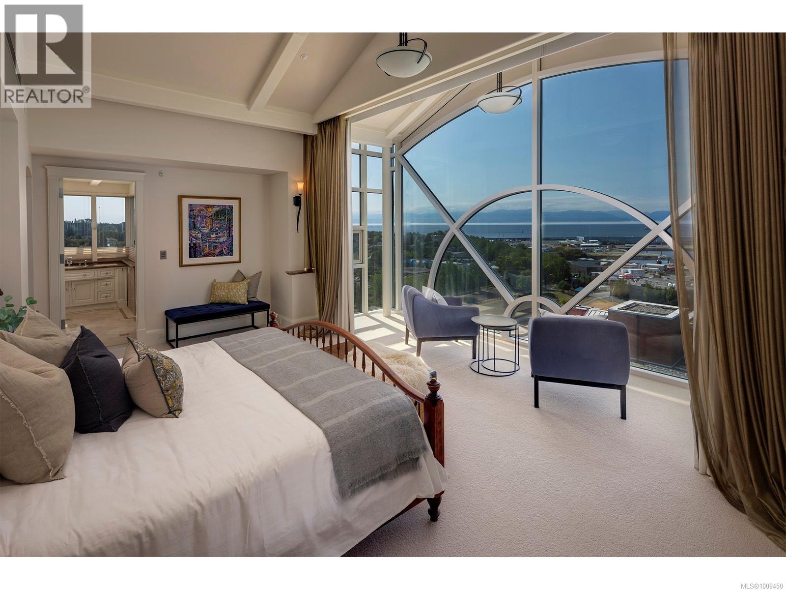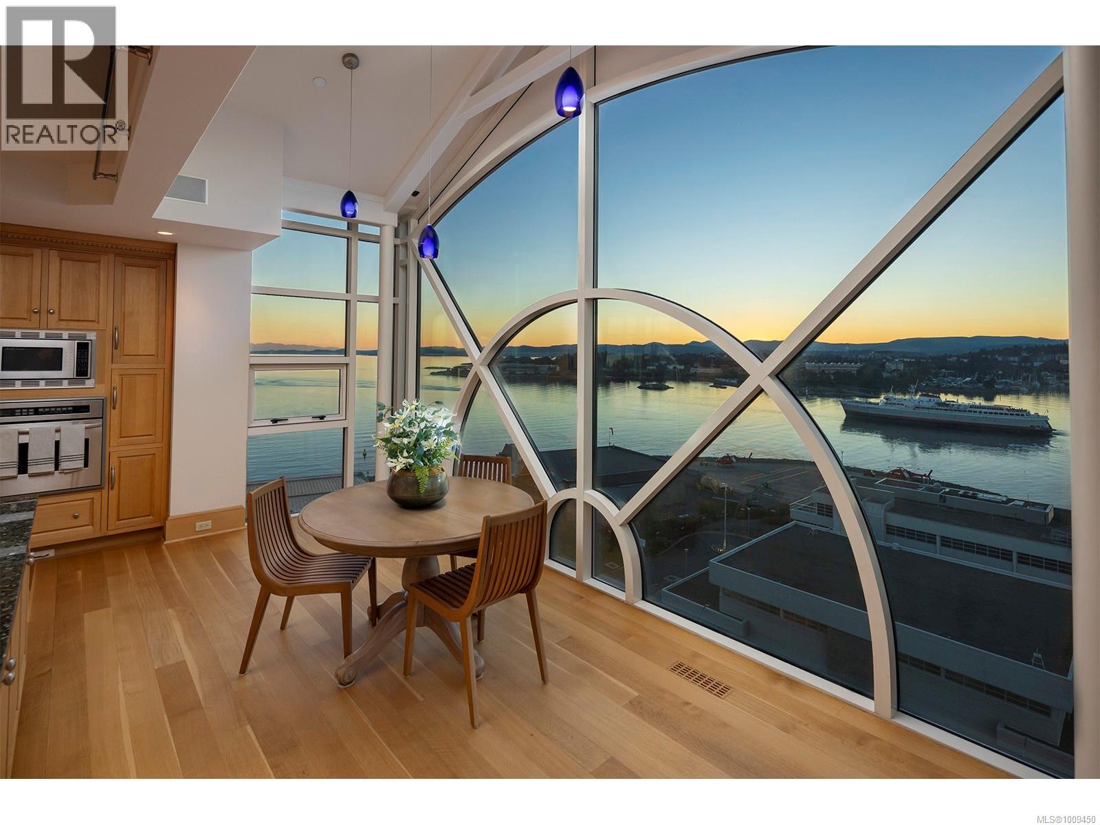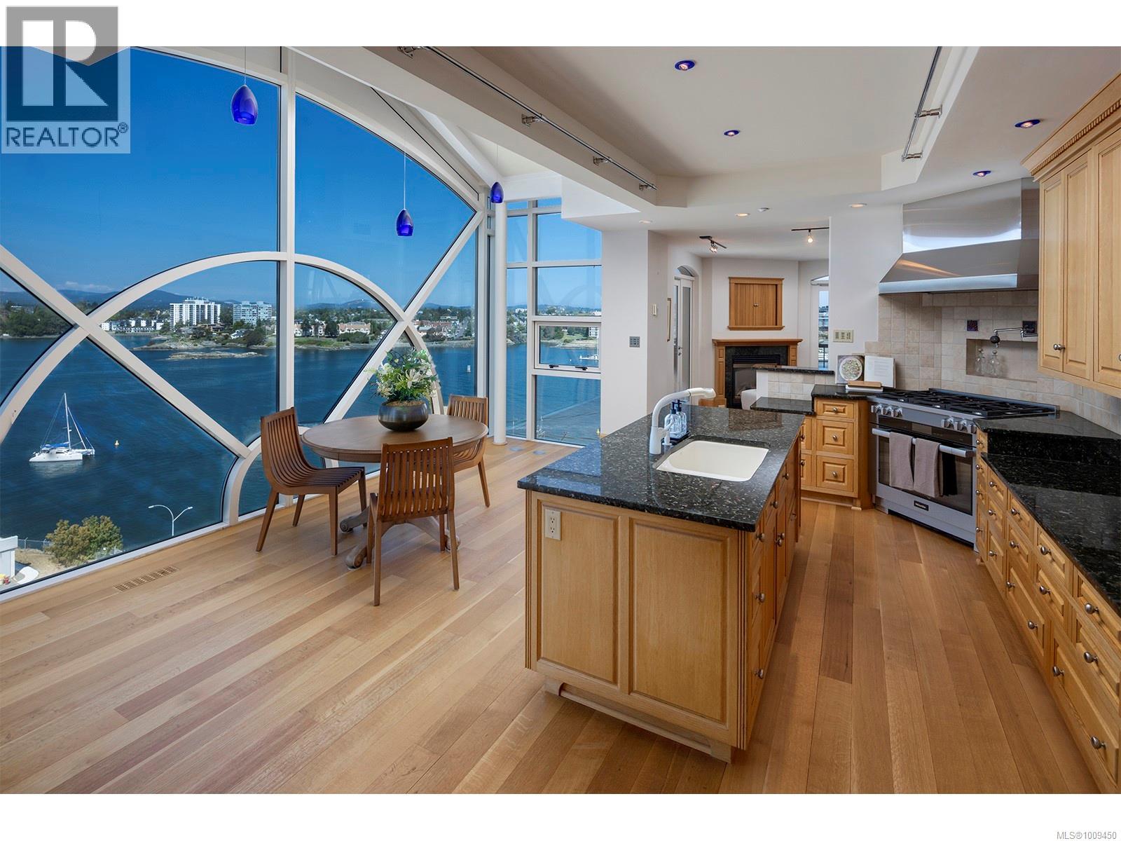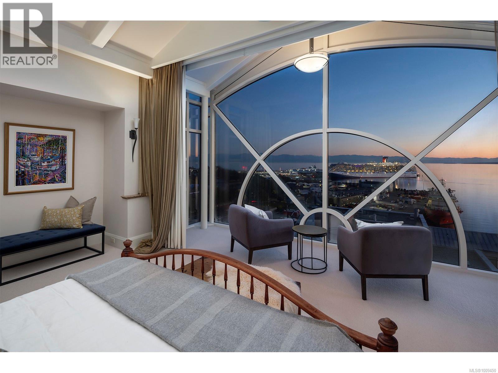 Welcome to this iconic waterfront Shoal Point penthouse, high above Victoria’s beautiful Inner Harbour, with 360 degree views from harbour across the Juan de Fuca Strait toward the snow-capped Olympic Mts.! With fine craftsmanship evident throughout, this one-owner executive suite was designed for the developer’s personal use, achieving its goal of providing an “inspirational” lifestyle in beautiful Victoria. Upon stepping off your private elevator, the foyer greets you with one of this home’s nine fireplaces and leads you to a welcoming sunroom. Custom white oak mill work and paneling and floor-to-ceiling Palladian windows throughout, truly set this home apart. The gourmet kitchen includes hi-end appliances, a second prep station, pantry, casual eating area and floor-to-ceiling windows. The living room features heights of over 23 feet in some areas with a galleried second floor, and the formal dining room with fireplace can accommodate grand-scale entertaining! This level also includes a beautiful wood-paneled study/den with fireplace, guest bedroom with ensuite plus a 2-pce bath.. An internal elevator takes you to the primary bedroom level with dual his and hers ensuite bathrooms, dressing rooms and expansive ocean views, two balconies, hot tub and laundry room. A 360-degree glass observation level comprises the third story of the home, including a glass-covered fishpond and a huge ‘wow’ factor in every direction! Several terraces, some of which are covered, offer a variety of options for outdoor living. This home includes two large storage rooms (one used as a temperature-controlled wine cellar) and three underground parking spaces. Shoal Point is built to exacting standards (R 2000 building); air conditioning and earthquake protection. Other building amenities incl. concierge service, fitness centre with indoor pool and weight/exercise room, putting green, and bicycle & kayak storage. Just steps from Victoria's incredible Inner Harbour (id:2469)