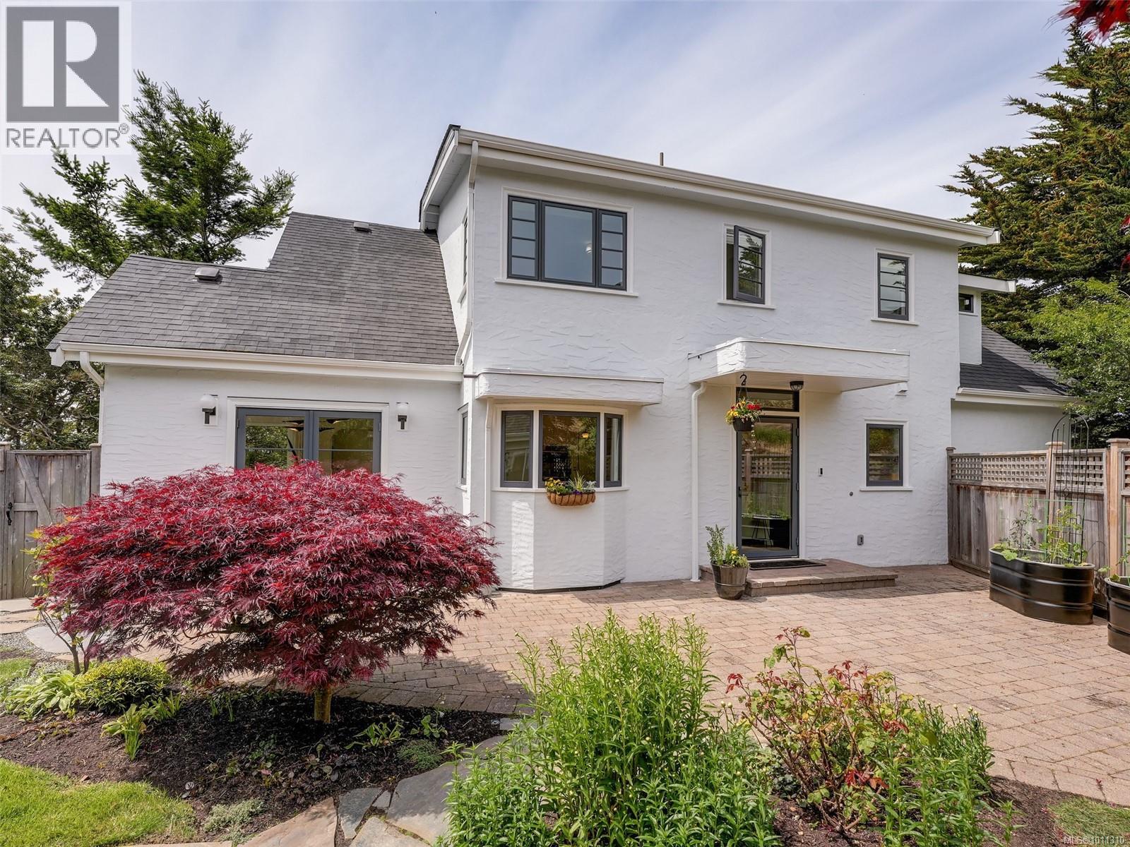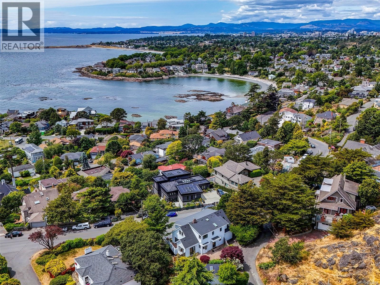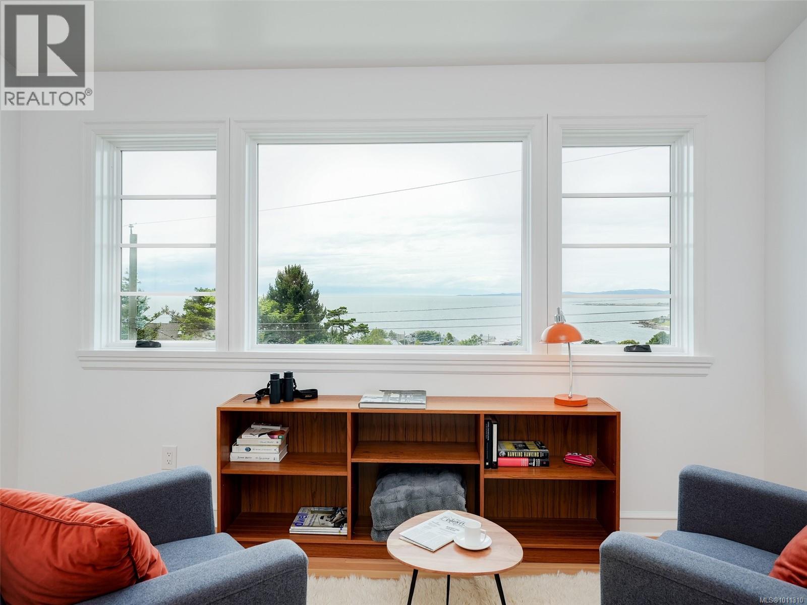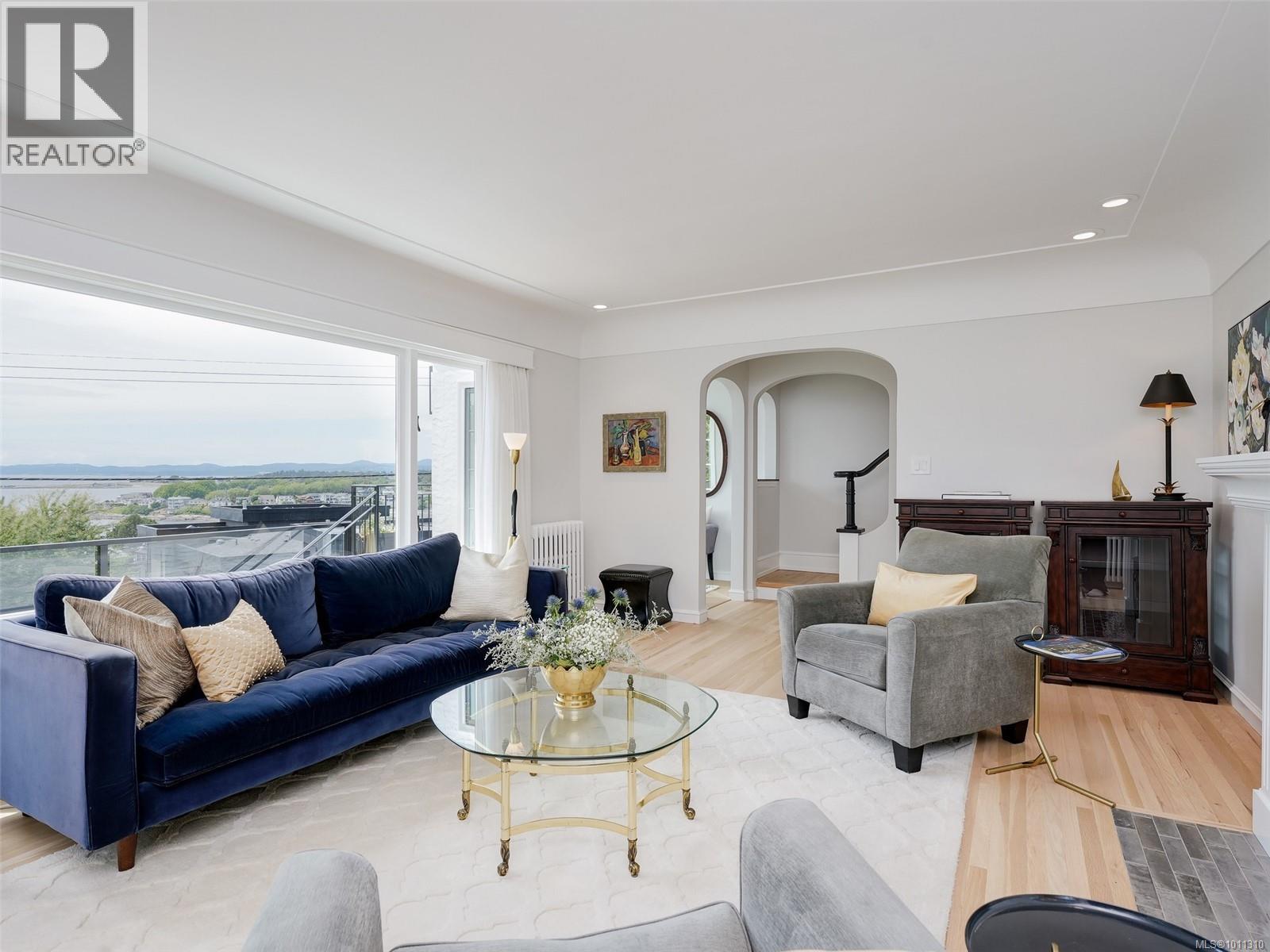 With panoramic views over the Juan de Fuca Strait and Olympic mountains, this remarkable home offers a rare combination of modern luxury, architectural character, and sought-after location. Exquisitely and thoroughly upgraded by the current owners, the new design blends timeless charm with modern elegance. The custom kitchen by Douglas Grant features marble counters, top of the line appliances and herringbone oak floors. The master suite has vaulted ceilings and a multi-room ensuite with views. French doors link the main living spaces to an ocean view deck as well as to the warm south facing rear patio garden, nestled beneath Walbran Park that naturally extends the private backyard. Tech systems include an integrated UNIFI WiFi network with ‘smart’ components, privacy-focused security and weather-aware irrigation. A short walk to Gonzales beach, this home is part of the diverse and family-focused Harling Point neighbourhood, a peaceful retreat in a world class recreational oasis. (id:2469)