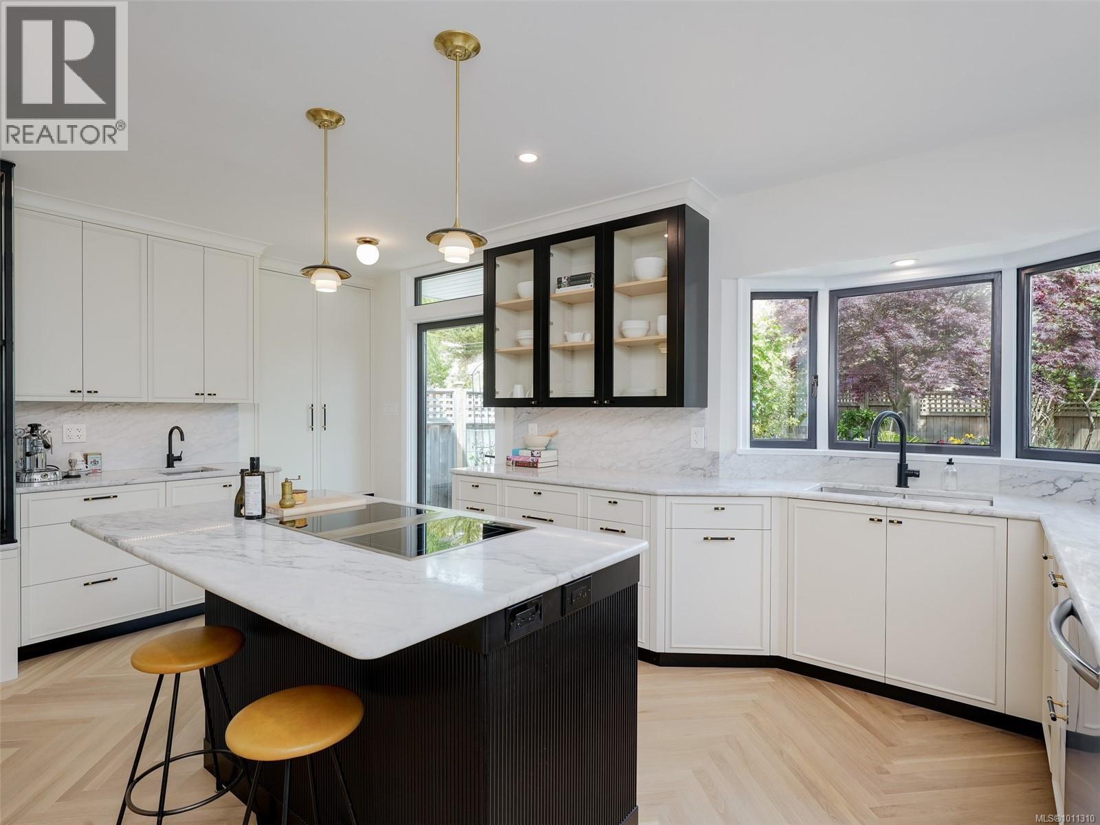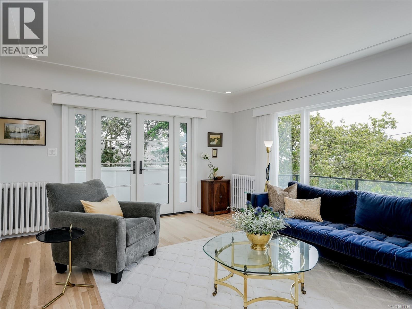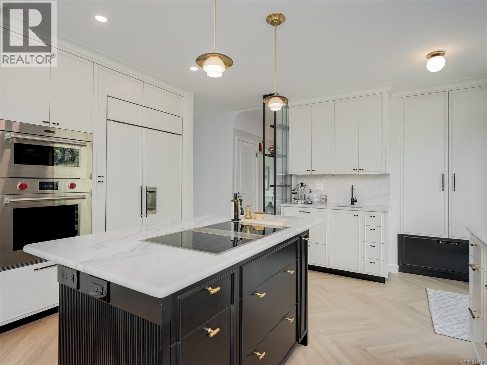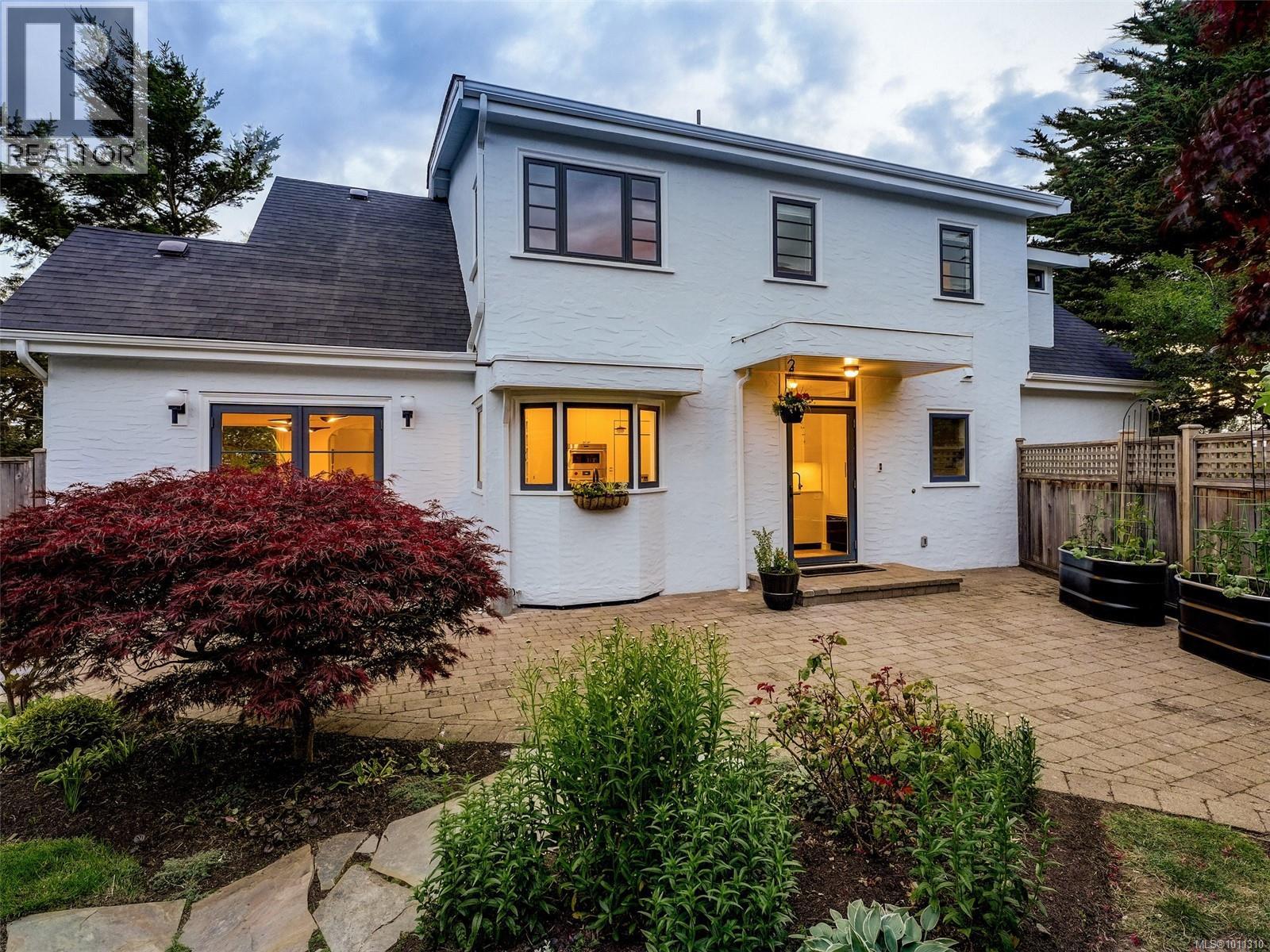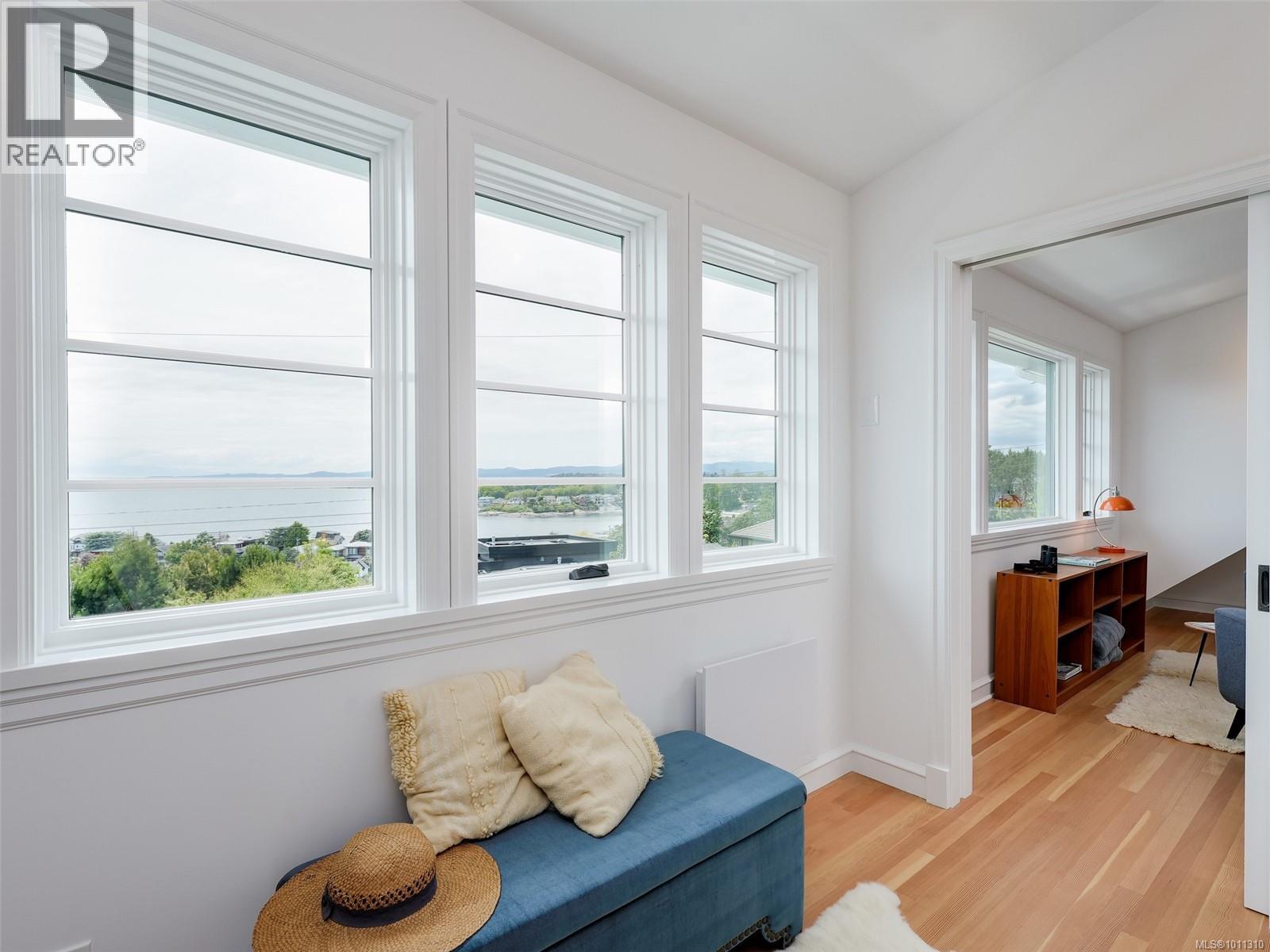 With panoramic views over the Juan de Fuca Strait and Olympic mountains, this remarkable home offers a rare combination of modern luxury, architectural character, and sought-after location. Exquisitely and thoroughly upgraded by the current owners, the new design blends timeless charm with modern elegance. The custom kitchen by Douglas Grant features marble counters, top of the line appliances and herringbone oak floors. The master suite has vaulted ceilings and a multi-room ensuite with views. French doors link the main living spaces to an ocean view deck as well as to the warm south facing rear patio garden, nestled beneath Walbran Park that naturally extends the private backyard. Tech systems include an integrated UNIFI WiFi network with ‘smart’ components, privacy-focused security and weather-aware irrigation. A short walk to Gonzales beach, this home is part of the diverse and family-focused Harling Point neighbourhood, a peaceful retreat in a world class recreational oasis. (id:2469)