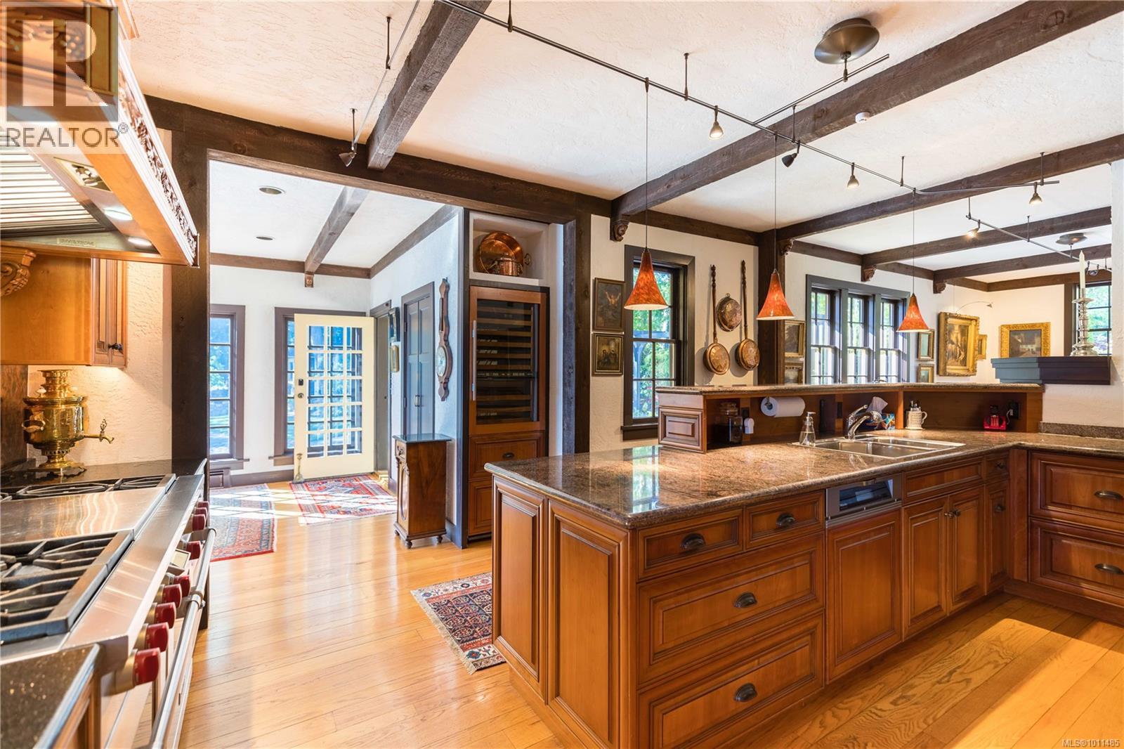 TWO LOTS & NO LAND TRANSFER TAX! Discover timeless charm at this expansive estate in North Saanich’s Towner Bay Country Club. Safeguarded by a stone seawall, 605 Towner Park offers 2.24 acres of sun-drenched, low-bank oceanfront. Follow the semi-circular stone driveway, past lush gardens, a greenhouse, and one of two tranquil ponds. Here, a plethora of unique outdoor spaces, from courtyard to balconies & patios, invite you to savor the coastal lifestyle. Enter to find a blend of Craftsman & English country influences replete with rich parquet flooring, wood-panel walls, exposed timber framing & vaulted ceilings. Panoramic windows throughout warm a myriad of sun-drenched living spaces with the ocean as your backdrop. A study in form & function, the kitchen boasts custom wood cabinetry, a Wolf dual oven gas range, granite counters, and a striking copper backsplash. Enjoy casual meals in the adjacent informal dining area or host elegant dinners in the formal dining room, both with ocean views & French doors to the sunroom. Retreat to the primary bedroom, with its garden/courtyard views, custom built-in headboard, and walk-in closet with bespoke cabinetry. The ensuite impresses with marble surfaces, and a frameless glass shower. Settle into the serene study with its cozy fireplace, wood-carved shelving, and charming courtyard. Or, rack up the billiards in the games room with its opulent red carpets, custom wood wet bar, and covered patio walkout. Below is your haven for entertainment & wellness; a rec room with projector, wet bar, and tile fireplace. The gym features a frameless glass shower, rubberized floor, and walkout access to the hot tub & outdoor shower. Upstairs, a dramatic landing leads to four guest bedrooms, each with enchanting views of the ocean. Experience the pinnacle of oceanfront living at this extraordinary sanctuary. *Property to be purchased through acquisition of shares in Towner Bay Country Club Ltd* *Transfer Tax Exempt* (id:2469)