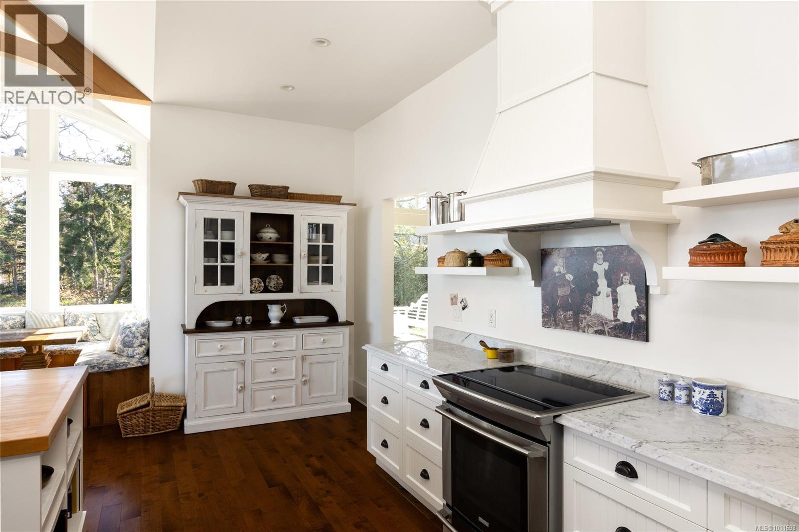 Welcome to 2600 Queenswood Drive, an extraordinary oceanfront retreat nestled on nearly 2.8 acres in one of Vancouver Island’s most prestigious enclaves. Gated and private, with the potential to subdivide, this timeless estate offers panoramic views of the Haro Strait, Gulf Islands, and Mt. Baker. The Hamptons-style residence blends classic East Coast charm with West Coast ease, featuring more than 6,000 sqft of beautifully curated living space. Soaring ceilings, expansive windows, and a seamless connection to the outdoors define the main level, which includes a sophisticated living room, elegant dining area, a hand built Walnut library/media room, and a chef’s kitchen designed for both function and flair. The main floor primary suite is a true sanctuary, while the upper level offers 3 additional bedrooms, 2 with ensuite. A walkout lower level includes a flexible studio or guest quarters. Lush landscaping, stone pathways, a private launch point for kayaking, and a detached 3-car heated garage with gardener’s toilet complete this rare seaside setting—just minutes to Cadboro Bay Village and UVic. (id:2469)