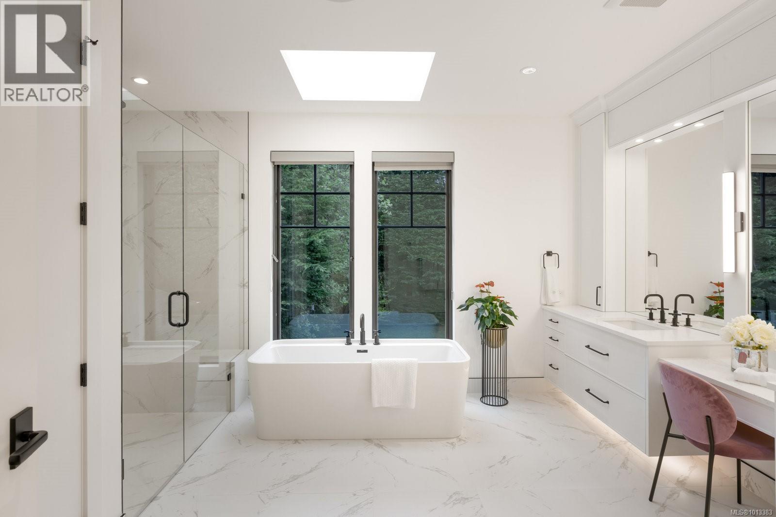 Experience the unobstructed waterfront views from this custom-designed Seaside Smart Home, crafted by award-winning Zebra Design and built to perfection by a top-tier builder. Situated on a large private lot in one of Victoria’s most prestigious neighborhoods, this modern minimalist residence blends natural beauty with intelligent design. Step into the expansive open-concept main floor, where a stunning chef’s kitchen features a massive central island, premium Miele appliances, and a full spice kitchen with Fisher & Paykel fittings and extensive custom cabinetry—ideal for everyday living and entertaining alike. A warm fireplace anchors the sophisticated living room, while a flexible multipurpose room awaits your vision: media lounge, gym, office, or art studio—the possibilities are endless. A striking floating staircase leads you to the upper level, where four spacious bedrooms—each with its own luxurious En-suite—offer comfort and privacy. The laundry room is conveniently located upstairs too. The primary and secondary master suites boast breathtaking views of the ocean and the snow-capped Olympic Mountains, a welcoming start to your day. Outdoors, enjoy a seaside front yard reminiscent of a living coastal painting, and a serene backyard sanctuary perfect for relaxation and escape. This exceptional home offers the ideal balance of indoor-outdoor living. Located on prestigious Beach Drive, you are moments from the Oak Bay village with its shops and restaurants. Nearby are the Victoria Yacht Club, Cattle Point boat launch, oceanfront parks, private schools, golf courses, kayaking spots, the marina, and waterfront dining. This is more than a home — it's a lifestyle. Clean-lined architecture, seamless smart home features, and unmatched privacy combine to create your elegant, timeless dream home by the sea. (id:2469)