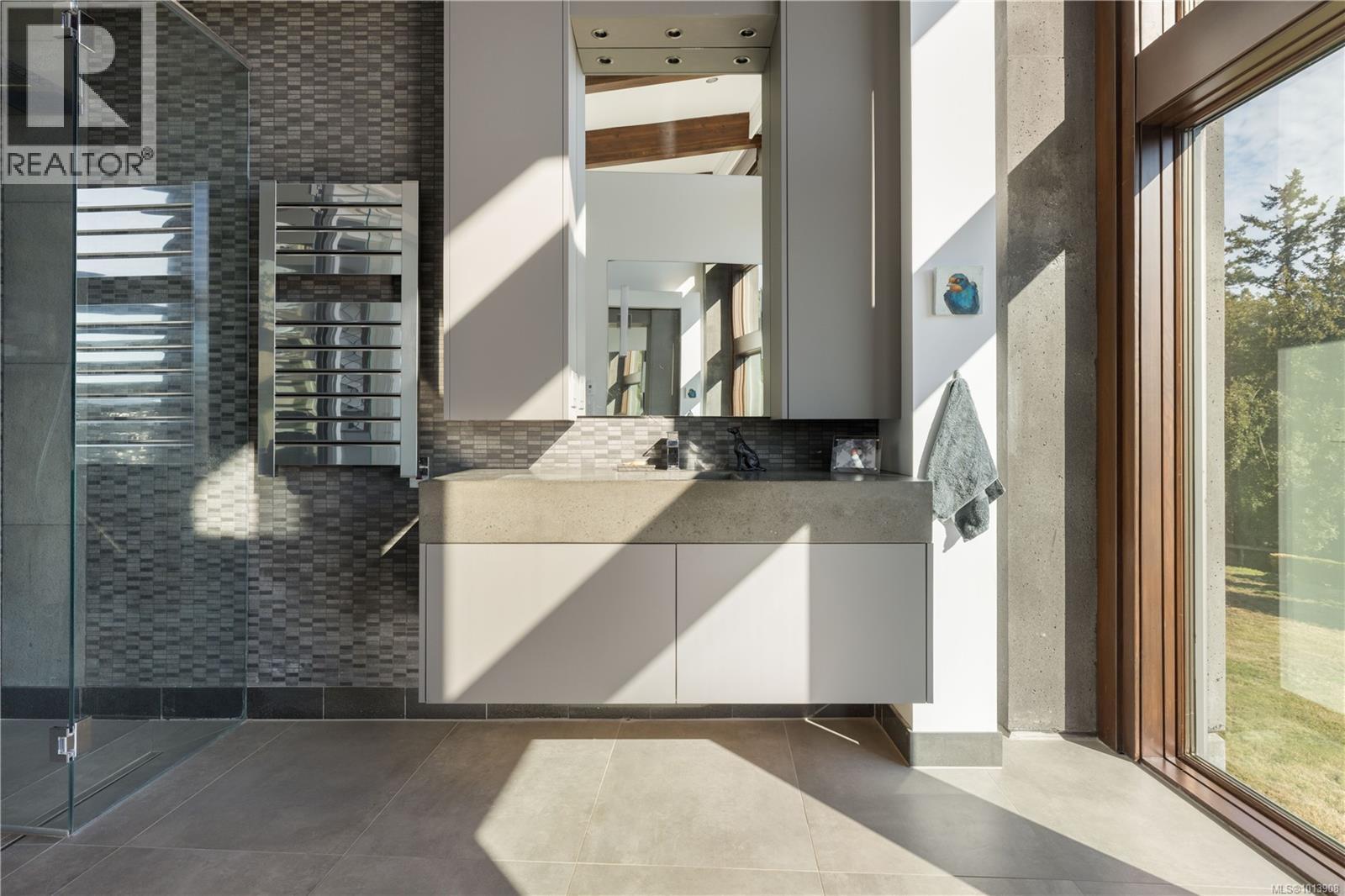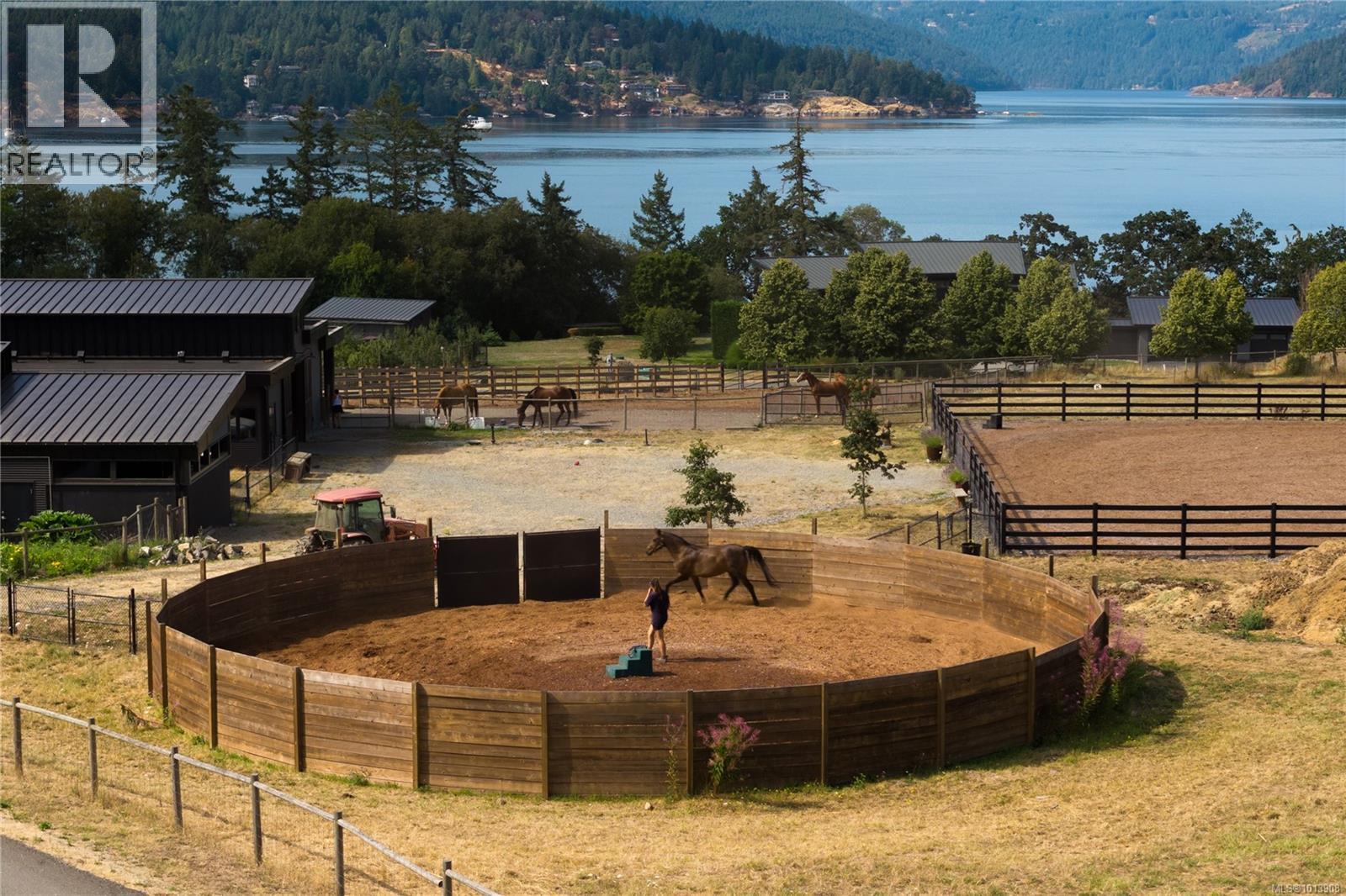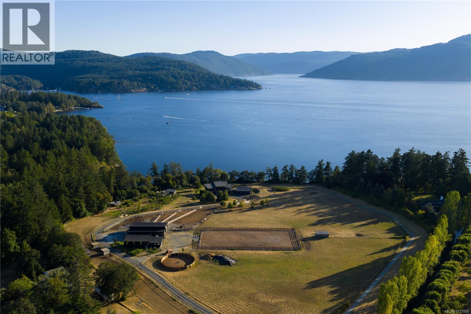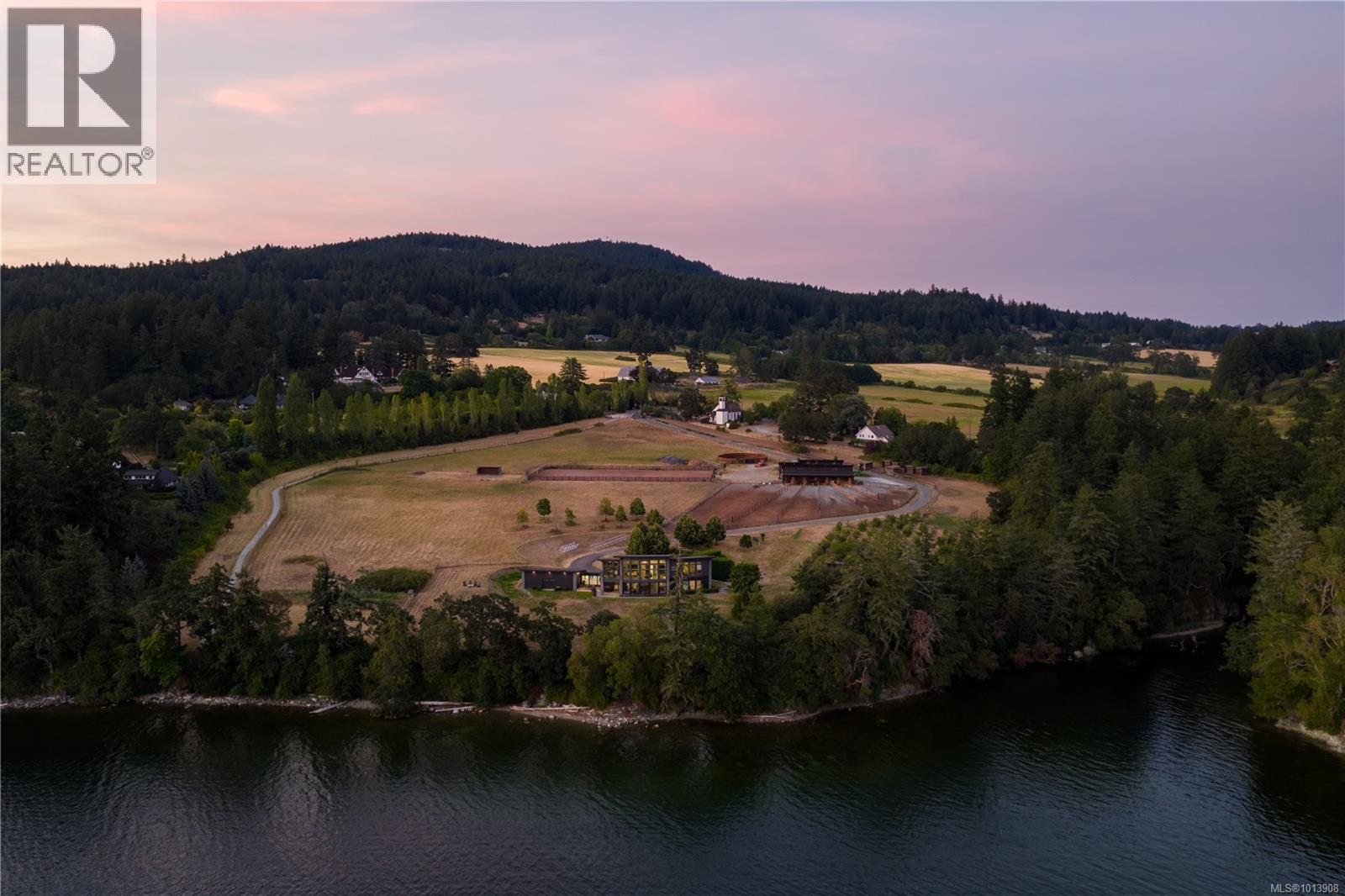 Roundstone Estate – A luxury equestrian property by the Sea. Set on nearly 14 acres, including 236 feet of pristine waterfront in Central Saanich, Southern Vancouver Island, this rare offering blends modern architecture with pastoral beauty. The re-imagined 2010 residence showcases steel beams, cedar cladding, Loewen glass, soaring ceilings, and a chef’s kitchen with Wolf, Sub-Zero, and Miele appliances. Comfort is assured with radiant in-floor heating, five-zone cooling, and backup generator. Equestrian facilities include a 72’ x 36’ stable with six stalls, heated tack rooms, wash bay, riding ring, and multiple fenced paddocks and pastures. A 180-mixed-fruit tree orchard, abundant irrigation, and Hagen Creek water rights ensure sustainable living. A self-sustaining sanctuary designed for elegance, equestrian pursuits, and oceanfront serenity a short drive from Victoria International Airport, Swartz Bay ferry terminal and the city of Victoria. (id:2469)