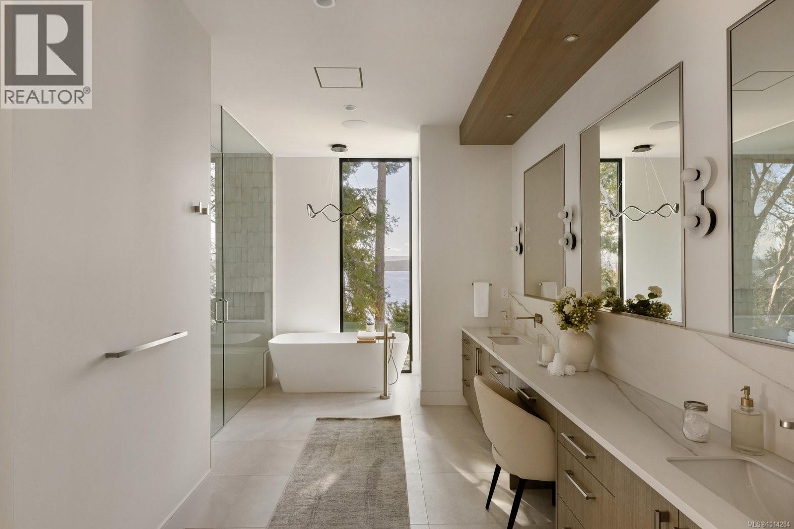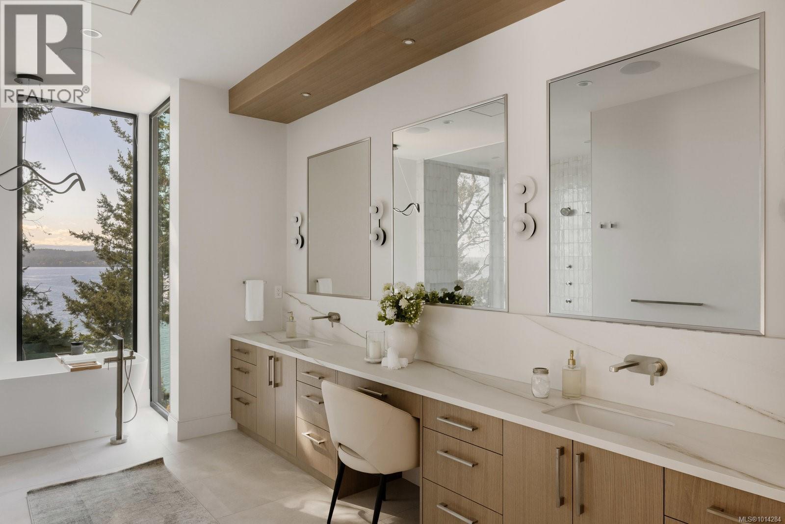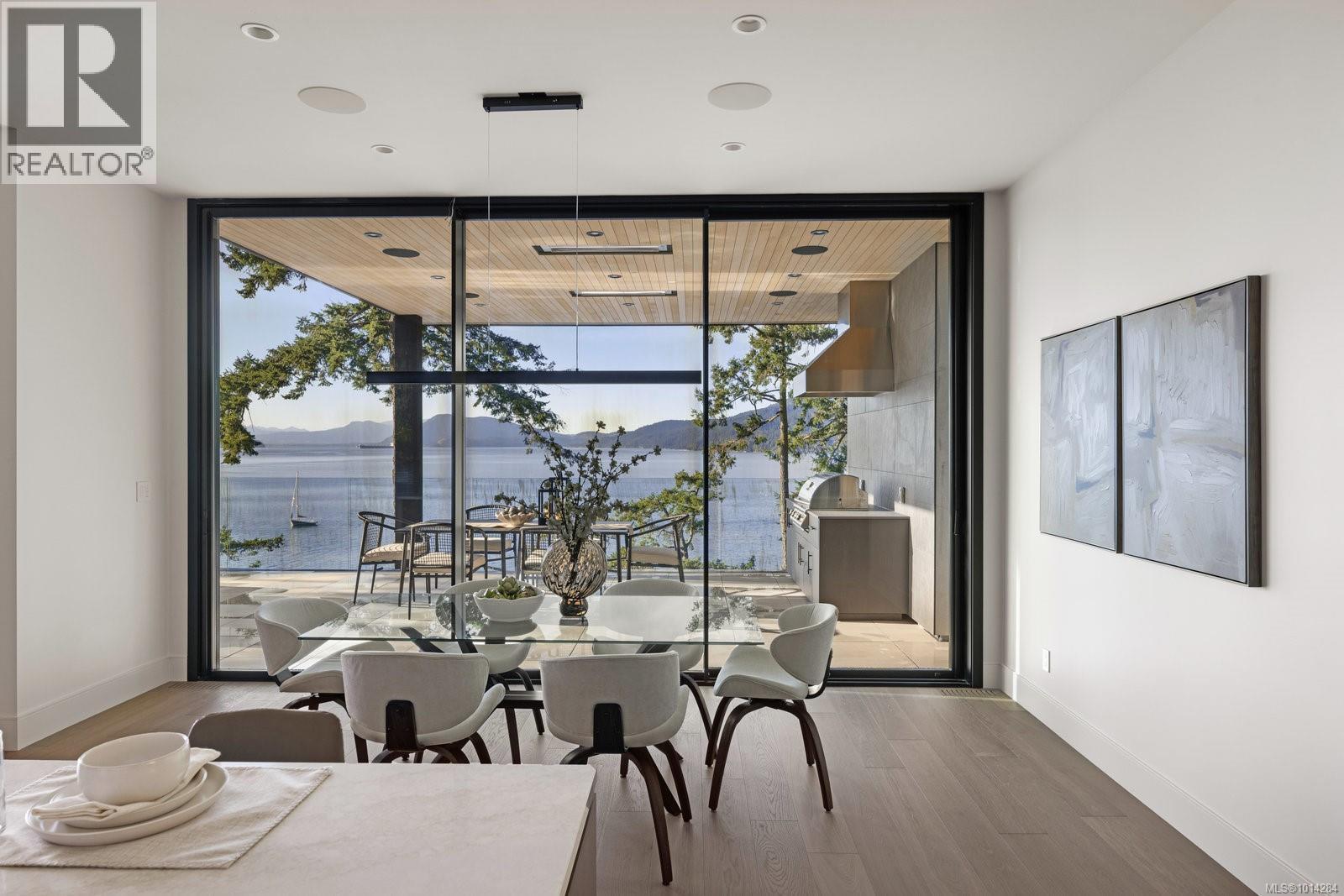 Extraordinary 1.08-acre west-facing waterfront estate in North Saanich, crafted by GT Mann Contracting. This 3,908 sq.ft. gated residence showcases soaring 10–12 ft ceilings and walls of glass capturing sweeping ocean vistas and sunsets. Designed for effortless one-level living, the chef’s kitchen with Miele appliances, butler’s pantry, and custom millwork flows to a heated, partially covered sundeck with outdoor kitchen. Features include a media room, temperature-controlled wine room, office, 3 bedrooms, and 4 baths. The primary suite offers floor-to-ceiling windows, spa-inspired ensuite, and oversized wardrobe. Zoned for a detached guest cottage, the property provides added flexibility. A 3-car garage, manicured grounds, and refined finishes complete this modern masterpiece—an oceanfront sanctuary blending privacy, natural light, and timeless luxury. (id:2469)