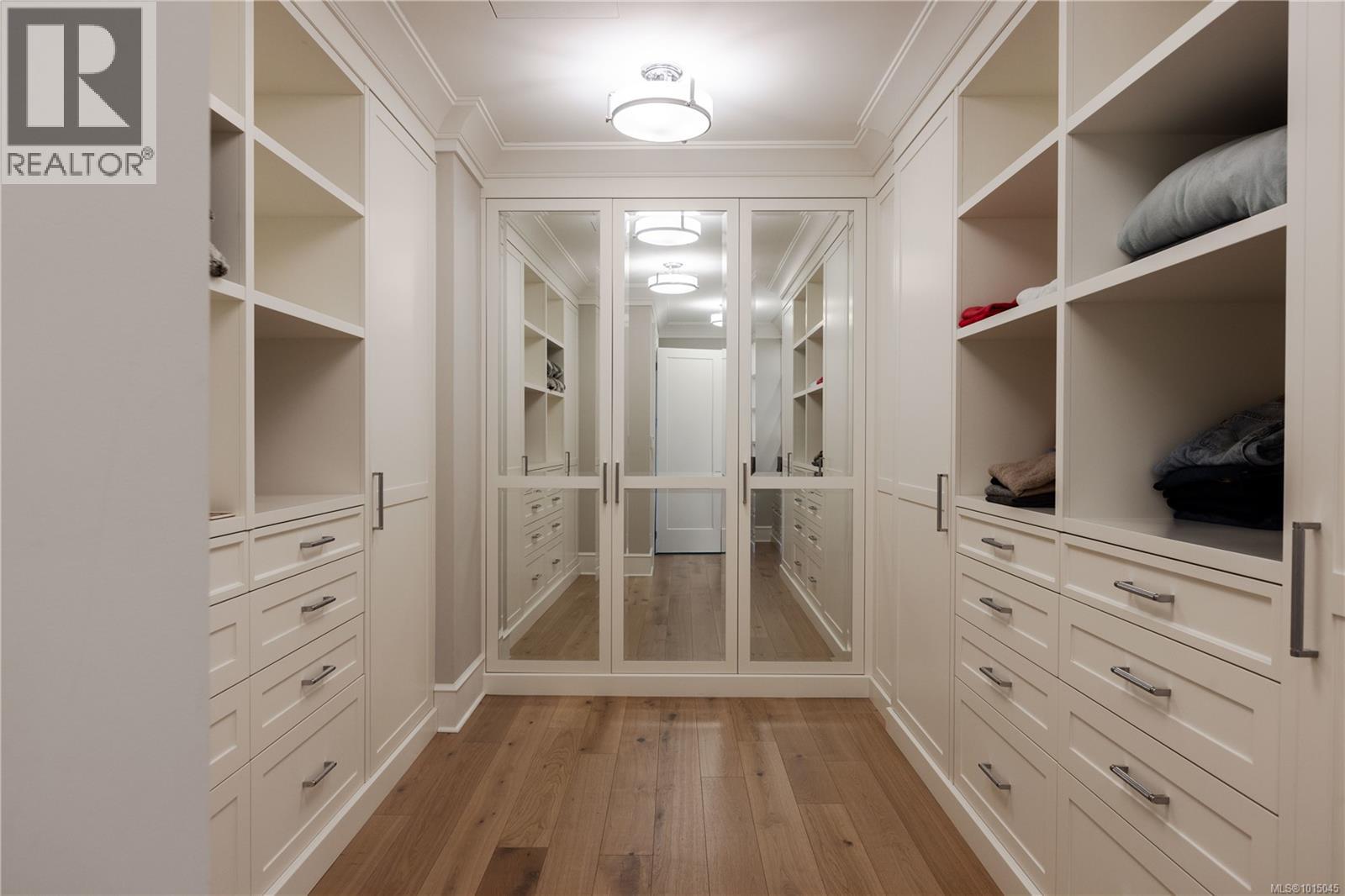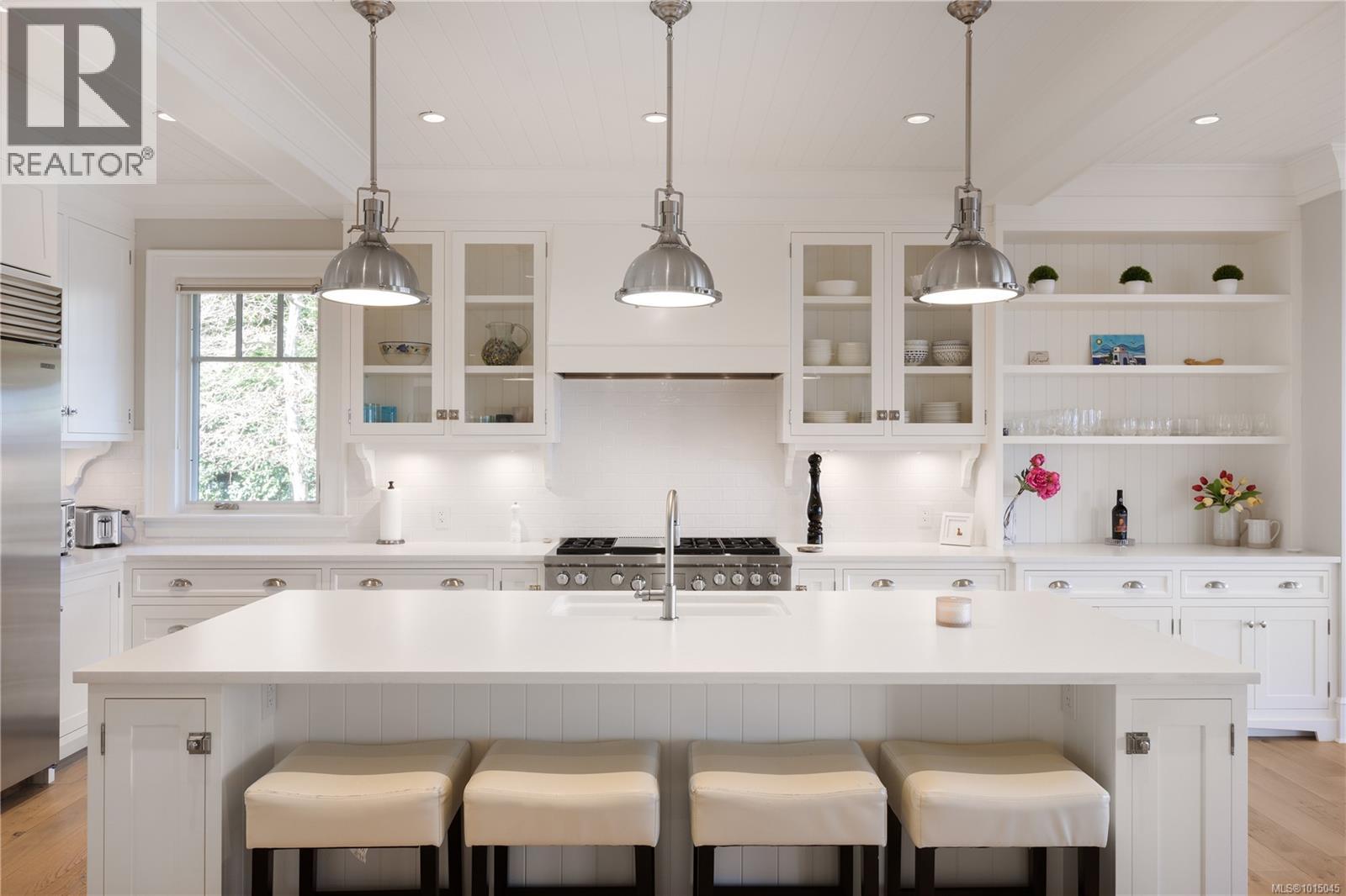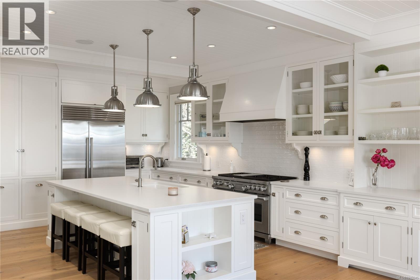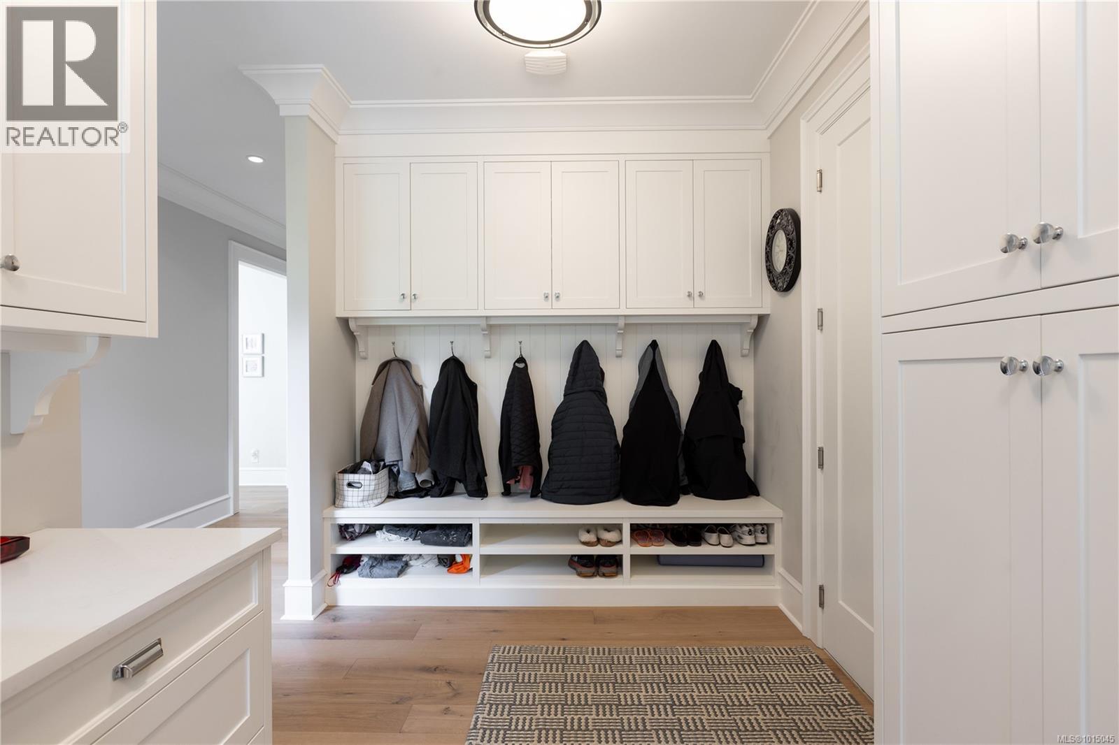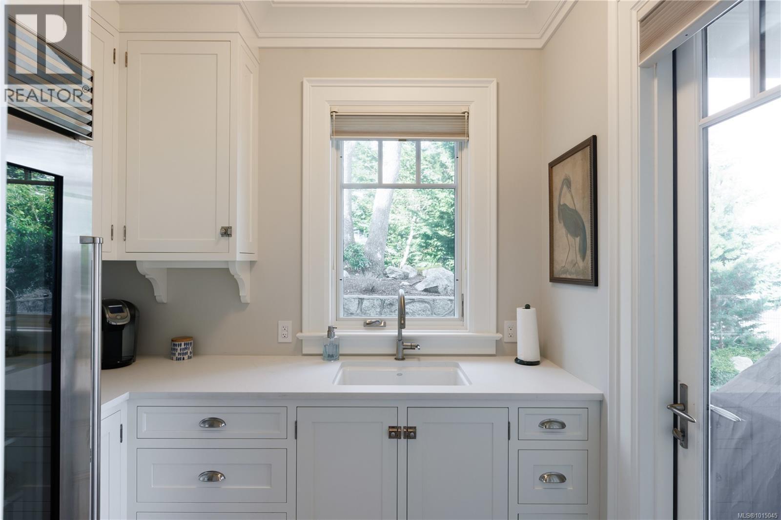 Nestled down a private lane, this oceanfront residence offers modern coastal design & luxurious living. With unobstructed views of the ocean & Mt Baker, the home is set amidst a landscaped garden, complemented by a paver driveway. Inside, white finishes, light oak accents & chrome detailing create a bright, inviting atmosphere, while the light oak flooring and abundant natural light enhance the home's warmth. The spacious living room, complete with a cozy fireplace, opens to a private patio that invites indoor-outdoor living & stunning ocean views. The soaring 9'6'' ceilings are accented with crown molding throughout, creating a sense of grandeur & space. The exquisite chef's kitchen features a double island, butler’s pantry & sleek Wolf gourmet appliances, including two fridges and a freezer, built-in microwave, and dishwasher, offering both convenience and sophistication. The main-floor primary bedroom serves as a peaceful retreat, boasting a 250 sqft walk-in closet and an opulent 5-pc ensuite bathroom with a separate toilet for privacy, along with direct access to the patio. Upstairs, 2 spacious bedrooms each feature ensuite bathrooms, walk-in closets & decks with ocean views, while a second living room, second laundry room, a nanny suite & addl 3pc bathroom complete the upper level. The lower floor is designed for leisure, offering an exercise room, media room, and games nook. This residence includes a spacious double garage, a versatile study room that can easily be converted into a bedroom, and a tucked-away laundry room. Geothermal heating provides year-long comfort in every room. Situated on a small bay, the property is protected from harsh weather while offering ocean access, perfect for paddleboarding or canoeing. Along with a home warranty expiring July 2030, the property is sheltered with a decorative black fence & front gate. Just minutes from parks, shops, schools, UVIC, and Cadboro Bay Village, this is refined coastal living at its best. (id:2469)