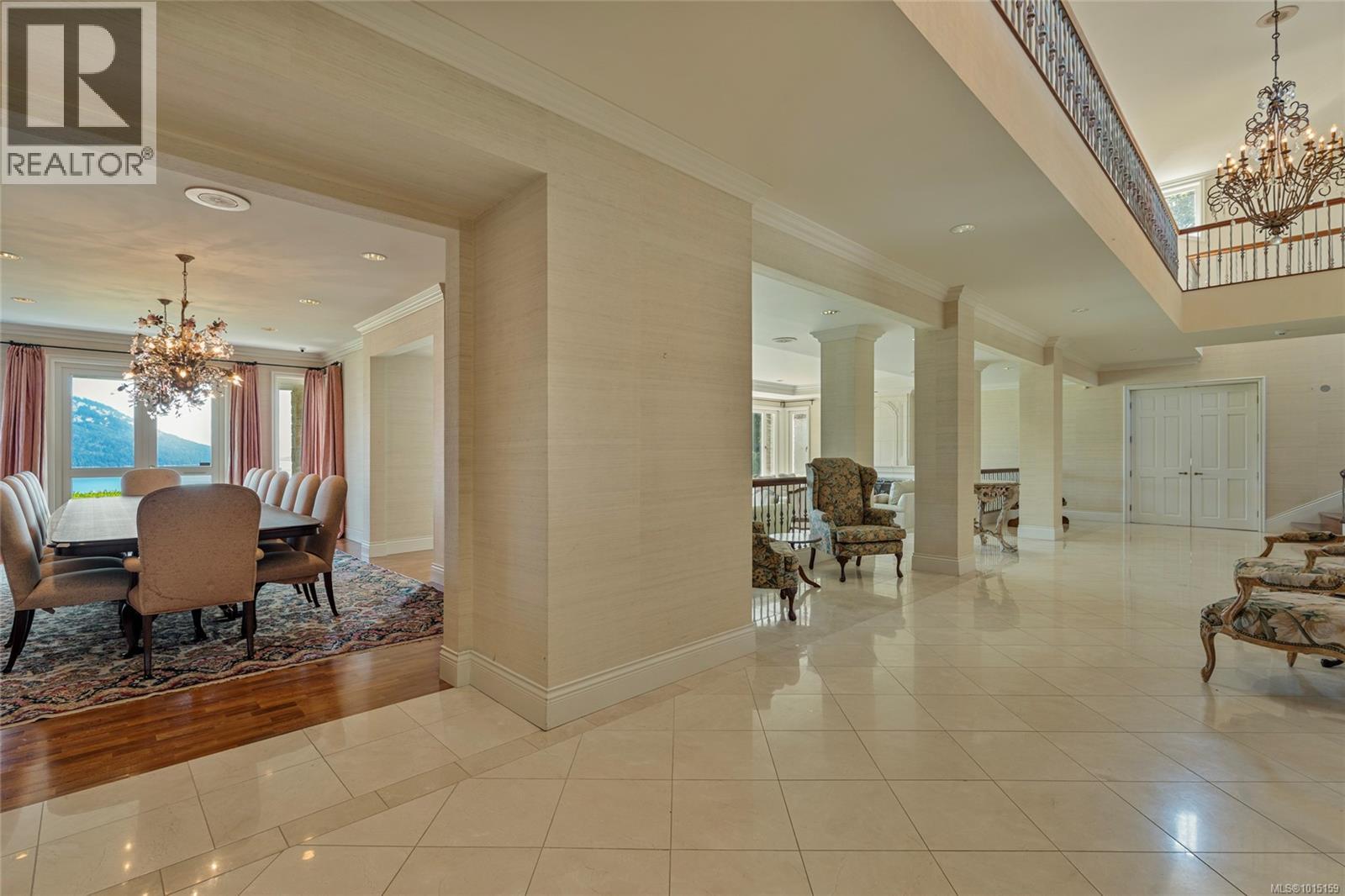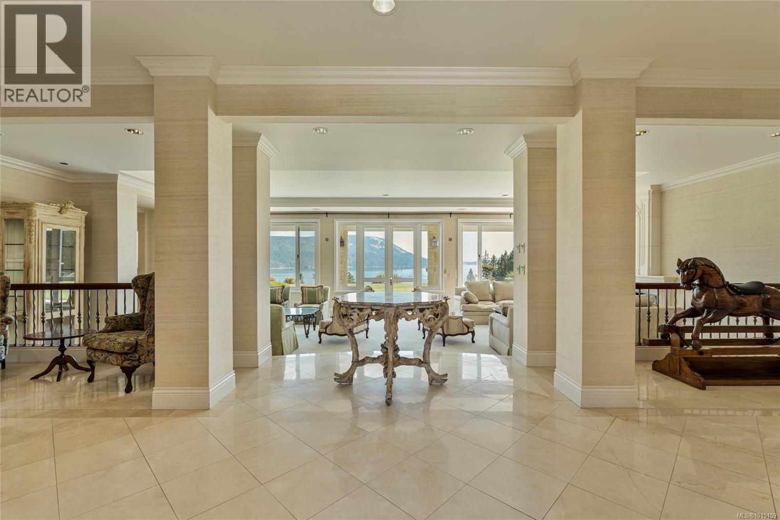 Discover your private paradise in the heart of Cowichan Bay, one of Vancouver Island’s most celebrated seaside communities. Comprised of 3 parcels of land, set on 82 acres, this prestigious waterfront estate offers an unmatched blend of coastal grandeur, sophisticated comfort, and resort-style amenities. Behind its private entry, manicured lawns, mature trees, and winding drive introduce an extraordinary collection of residences and leisure spaces that create a legacy property of rare distinction. The main residence, an architectural masterpiece of over 9,600 sq ft, welcomes with a vaulted marble entry, sunken living room, formal dining, and a gourmet kitchen with granite counters, Gaggenau appliances, and twin Sub-Zero refrigerators. Six upper-level bedrooms include two lavish primary suites, each with private ensuite, while a 4,129 sq ft lower level offers a guest suite with full kitchen, games lounge, fitness studio with steam, and abundant storage. A triple garage completes the residence. The estate further features a 2,833 sq ft guest house with soaring ceilings, custom spiral staircase, and expansive covered patio; two charming cottages; and a 4,245 sq ft secondary residence—ideal for extended family or rental income. Resort-style amenities include an 18’x38’ heated pool with 600 sq ft pool house, hot tub, and a regulation tennis court. For the hobbyist or collector, the grounds also provide a 1,300 sq ft workshop, 825 sq ft storage building, and a 5,000+ sq ft barn. Meticulously maintained with recent upgrades including a renewed well, modern water systems, hot water heating, and new roofing, this estate is as practical as it is breathtaking. Steps from the artisan shops, bakeries, and marina of Cowichan Bay—and surrounded by opportunities for sailing, kayaking, and whale watching—this sanctuary represents the pinnacle of coastal luxury. Rarely does a property of this scale and provenance become available: a once-in-a-lifetime offering on Vancouver Island. (id:2469)