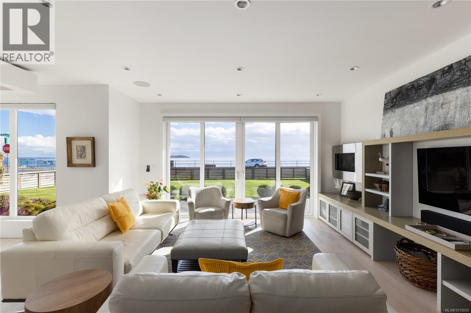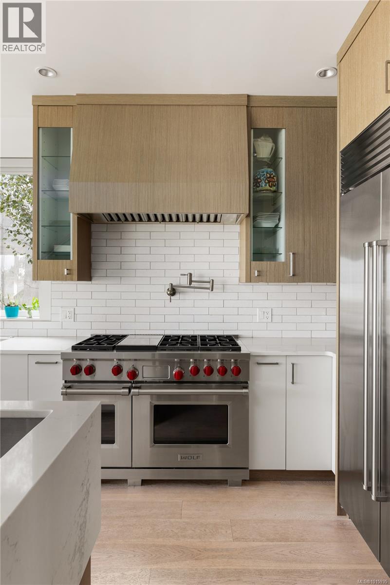 This award-winning modern home by SEBA Design exemplifies coastal contemporary living along Victoria’s iconic waterfront. With over 3,000 sq. ft. of refined design and the convenience of an elevator, it showcases stunning ocean and Olympic Mountain views through expansive windows that fill the interiors with natural light. The main floor blends open-concept living with a gourmet kitchen featuring Wolf and Sub-Zero appliances, an elegant dining area, and a bright family room that opens to the oceanfront patio. A main-floor office and a versatile bedroom ideal for guests or family enhance flexibility, while upstairs, the primary retreat enjoys panoramic views, a luxurious spa-inspired ensuite, and private balcony. Two additional bedrooms, each with their own ensuite, plus a laundry room complete the upper level. Additional features include a double garage and a detached studio/media room. Steps from Willows Beach and Oak Bay Avenue, this residence delivers the best of oceanfront living with sophisticated modern style. (id:2469)