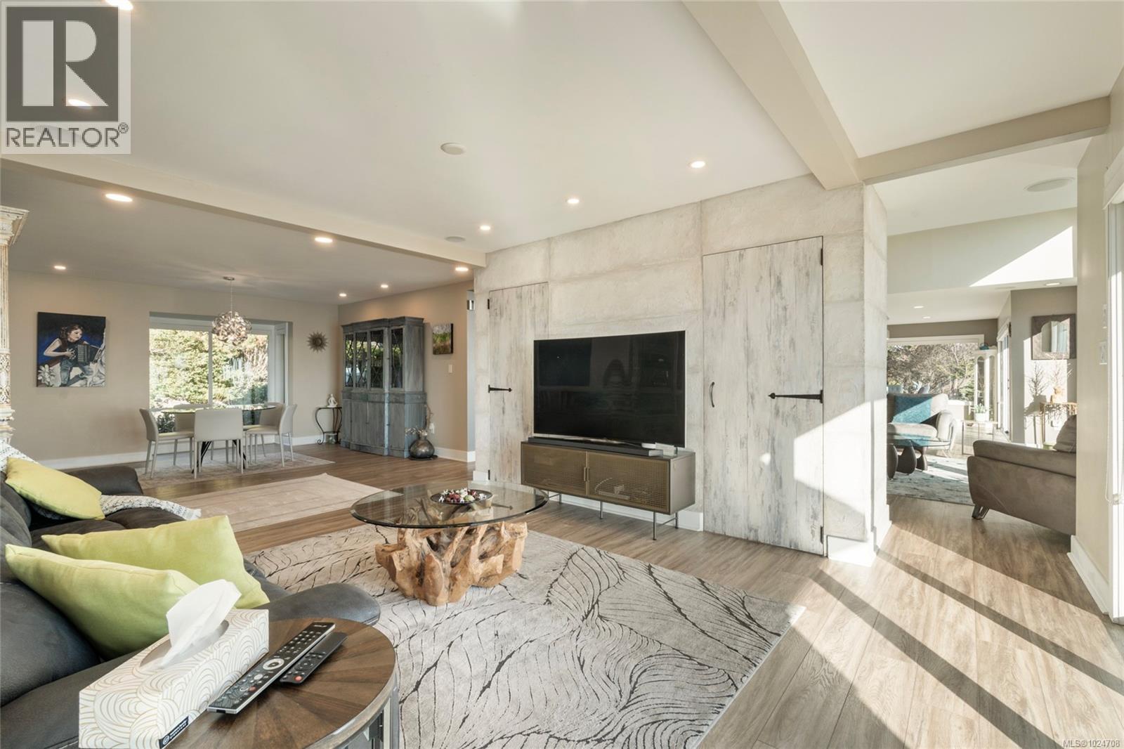 Set on 1.15 acres of private, low-bank oceanfront, this gated Saanich estate offers an extraordinary combination of scale, privacy, and immersive coastal living. A secure entrance welcomes you with manicured landscaping and a cascading waterfall, creating a serene arrival and tranquil soundscape throughout the home. Inside, the residence is filled with natural light, featuring floor-to-ceiling windows that frame sweeping ocean views from nearly every principal room. The home offers eight bedrooms and seven bathrooms, including a spacious primary suite with large windows overlooking the water and a spa-inspired ensuite complete with a jetted tub. The thoughtfully designed kitchen features quartz countertops, modern appliances, a built-in pantry, and multiple gathering spaces, including a breakfast bar with ocean views and a breakfast nook set beside the waterfall. A formal dining area also overlooks the water, ideal for entertaining. The main level includes a nanny or guest suite with separate entrance, while the lower level offers a media area, sauna, and indoor hot tub. Multiple balconies and outdoor sitting areas are positioned throughout the property to take in the views, including a unique oceanfront landing pad and patio perched above the water—perfect for whale watching. Private stairs lead directly to the shoreline, offering easy access for kayaking, paddleboarding, or enjoying the oceanfront lifestyle. The grounds are beautifully landscaped with mature plantings, pathways, and a gazebo, creating a peaceful, park-like setting. A rare offering where privacy, nature, and refined coastal living come together in one of Saanich’s most desirable waterfront locations. (id:2469)