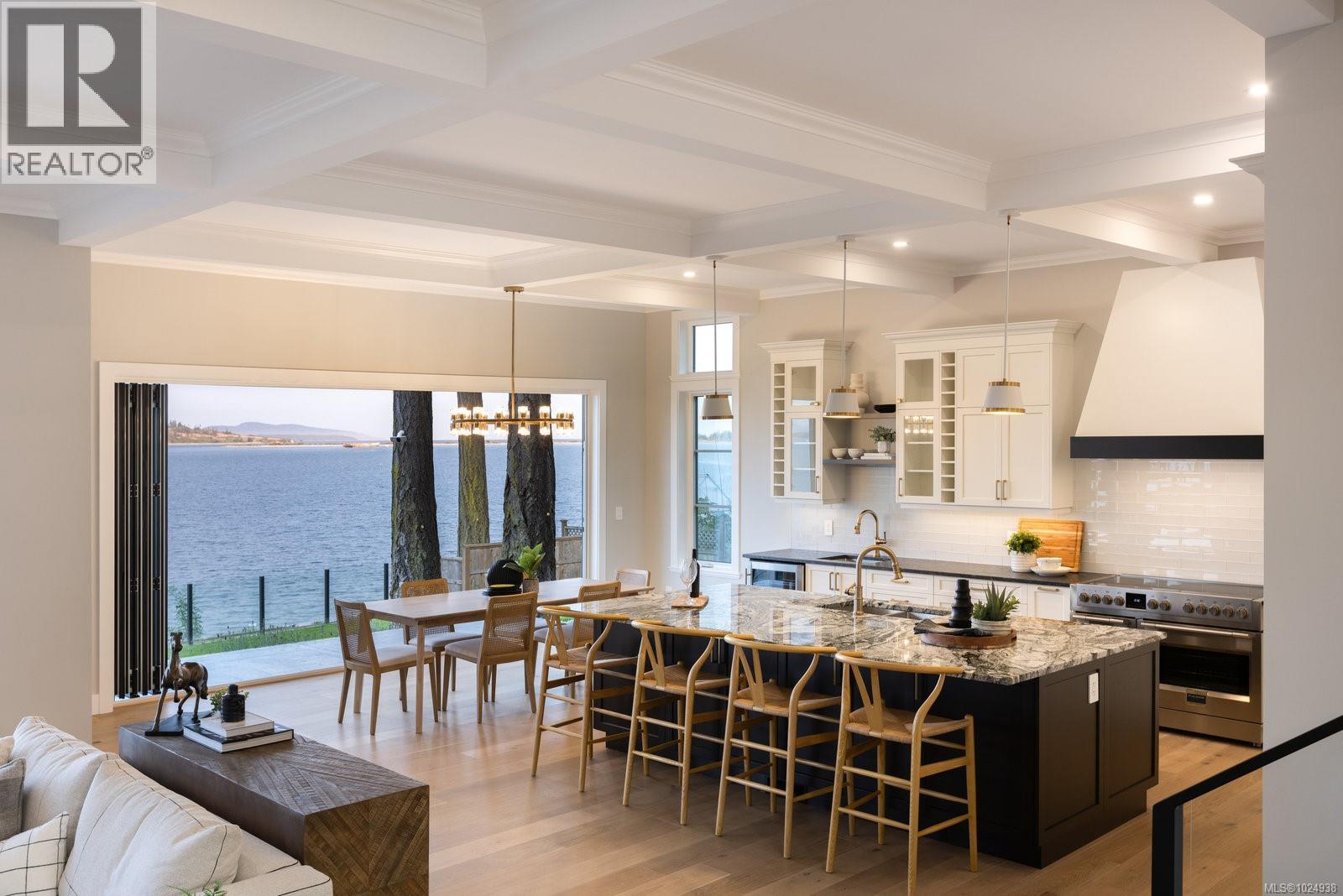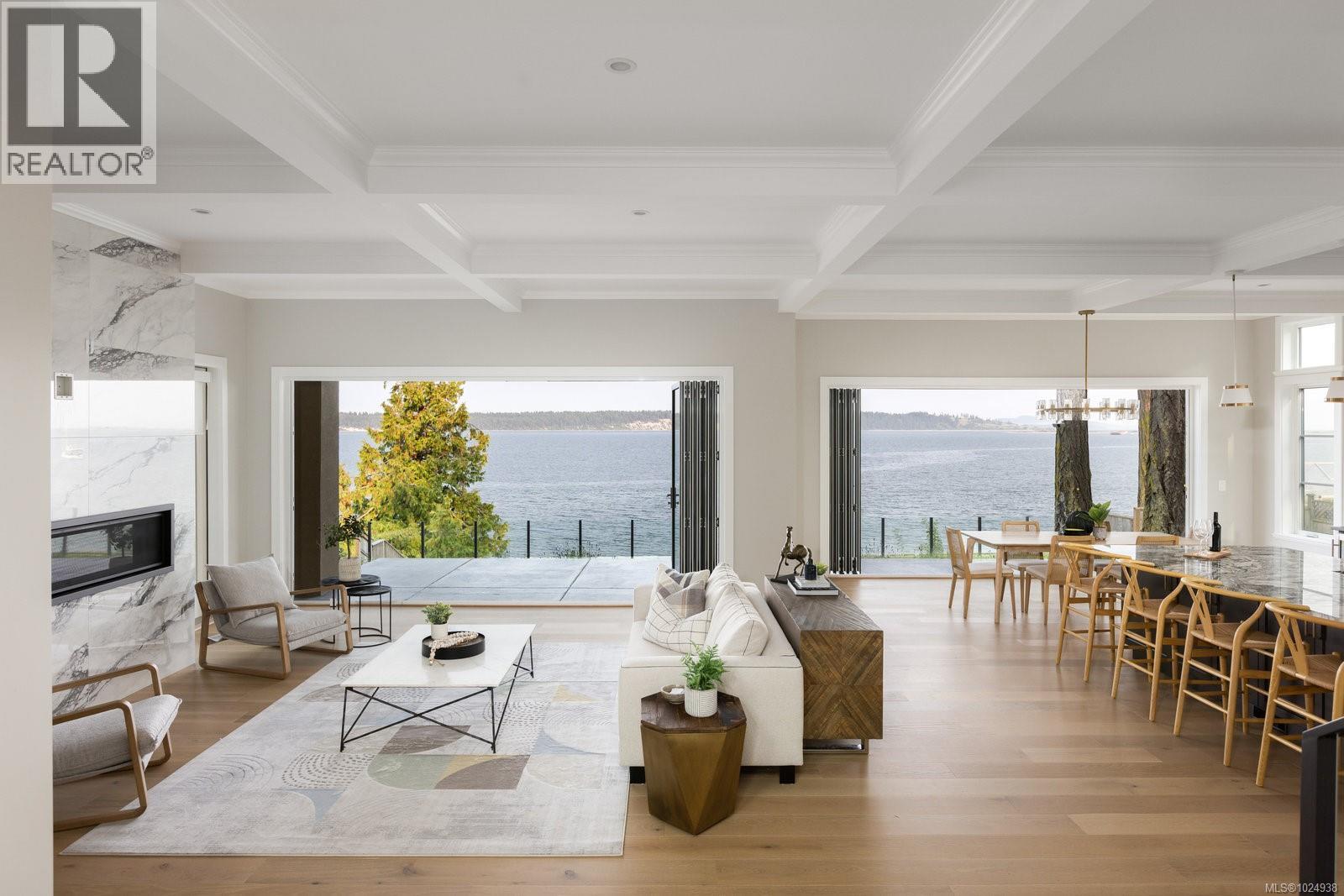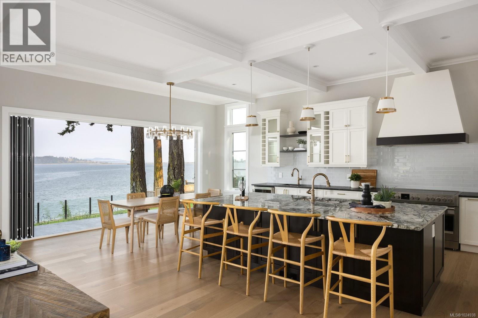 This waterfront estate embodies exceptional craftsmanship & timeless elegance, offering sweeping ocean vistas. Set on a private half-acre with 100 ft of pristine, low-bank waterfront, the home provides direct beach access from the professionally landscaped backyard. Each of the 4 bedrooms boasts stunning ocean views, w/ every room thoughtfully appointed with ensuite & WIC. The open-concept living, dining & kitchen areas are graced w/ soaring 11-ft coffered ceilings & dual nano doors, allowing for a seamless indoor-outdoor flow. The gourmet kitchen is a true centrepiece, featuring custom cabinetry, elegant stone countertops, top-of-the-line Fisher & Paykel appliances & well-appointed butler's pantry. This home also features a media room w/ a wet bar & covered patio perfect for alfresco dining. Additional highlights include a 3-car garage w/ showroom-quality epoxy flooring, extra-high ceilings & an automatic gate for enhanced privacy & security. (id:2469)