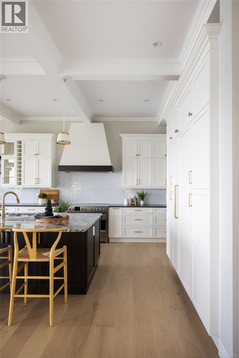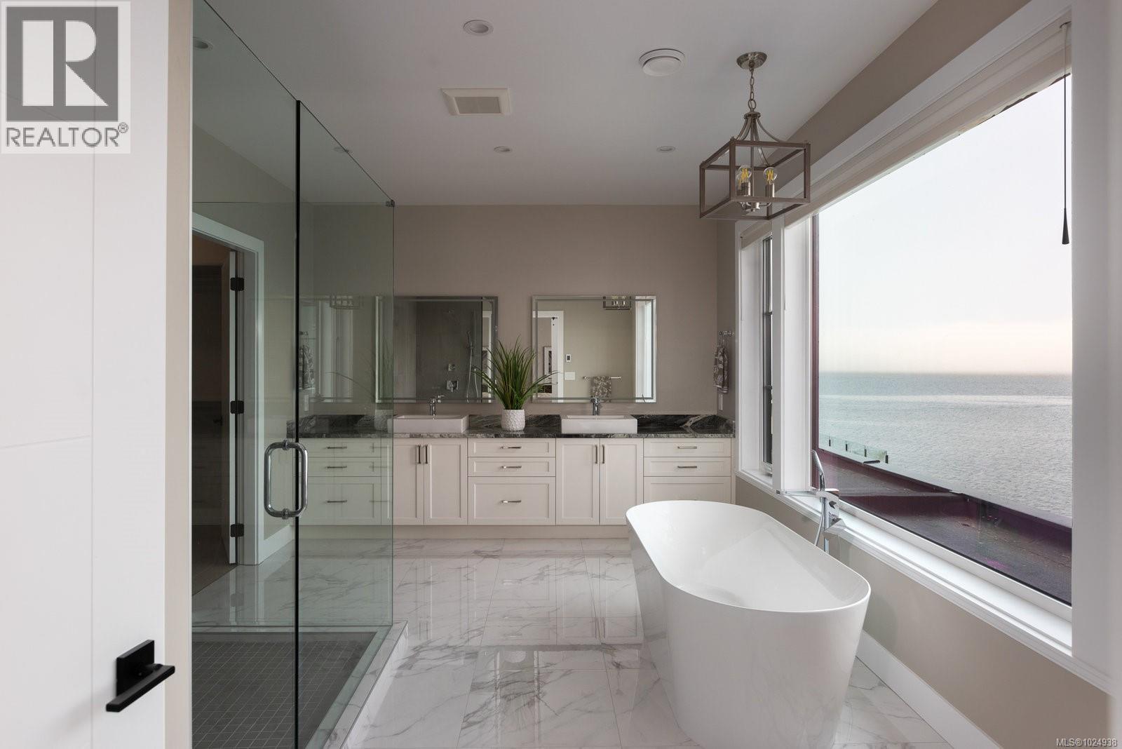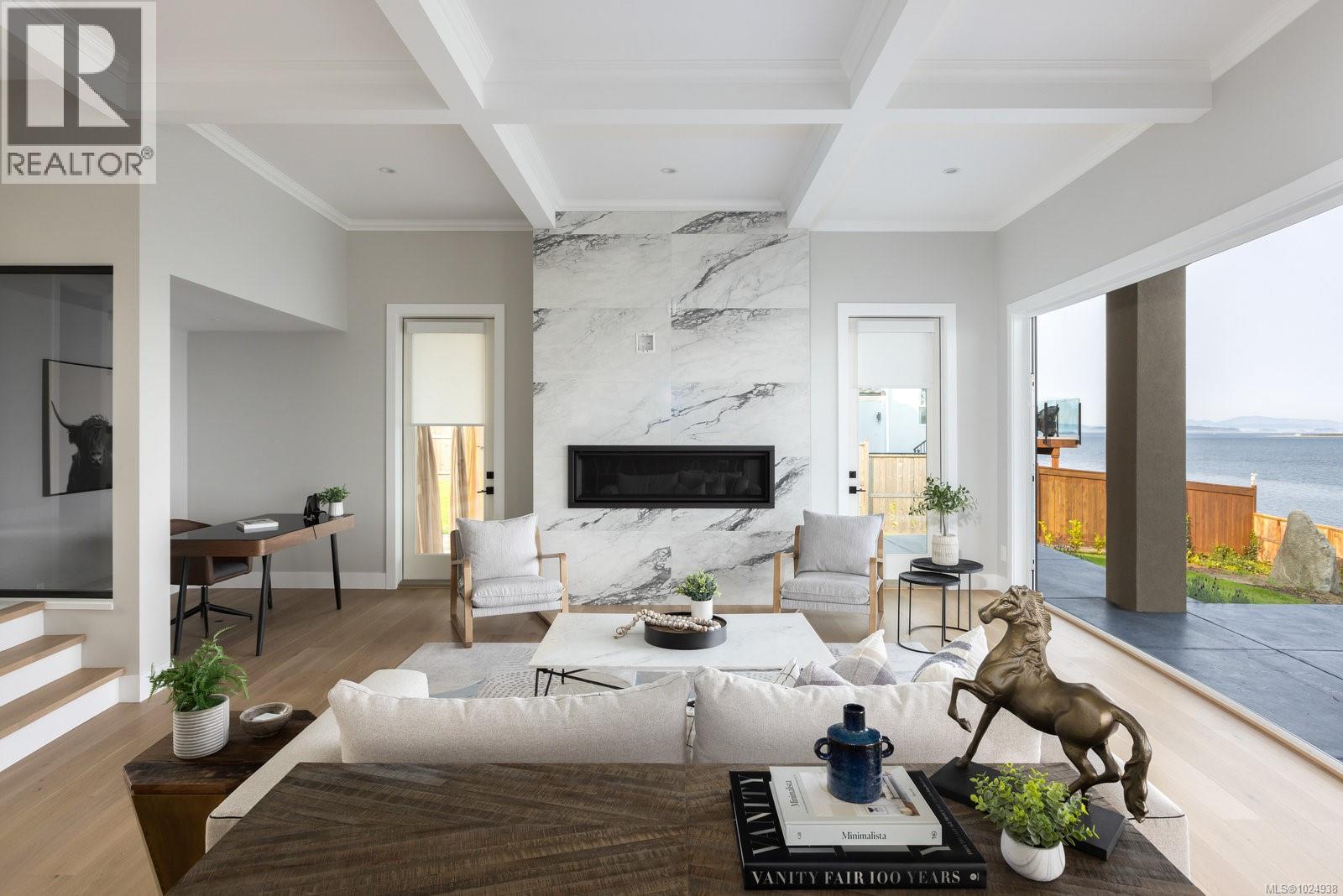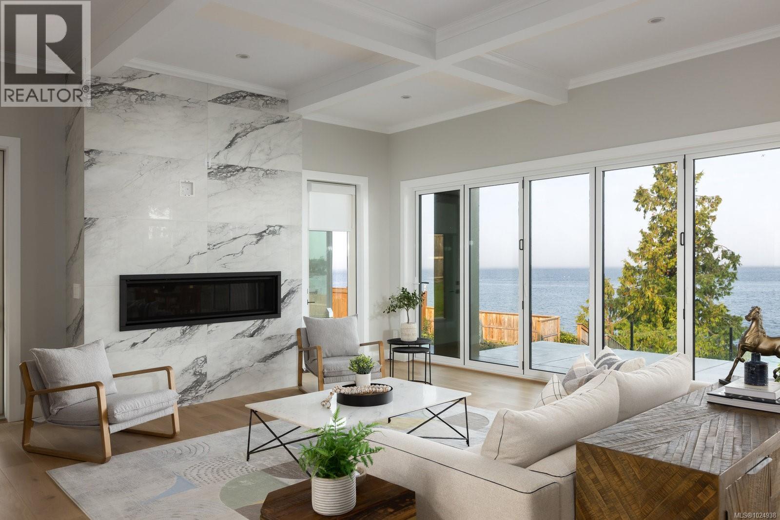 This waterfront estate embodies exceptional craftsmanship & timeless elegance, offering sweeping ocean vistas. Set on a private half-acre with 100 ft of pristine, low-bank waterfront, the home provides direct beach access from the professionally landscaped backyard. Each of the 4 bedrooms boasts stunning ocean views, w/ every room thoughtfully appointed with ensuite & WIC. The open-concept living, dining & kitchen areas are graced w/ soaring 11-ft coffered ceilings & dual nano doors, allowing for a seamless indoor-outdoor flow. The gourmet kitchen is a true centrepiece, featuring custom cabinetry, elegant stone countertops, top-of-the-line Fisher & Paykel appliances & well-appointed butler's pantry. This home also features a media room w/ a wet bar & covered patio perfect for alfresco dining. Additional highlights include a 3-car garage w/ showroom-quality epoxy flooring, extra-high ceilings & an automatic gate for enhanced privacy & security. (id:2469)