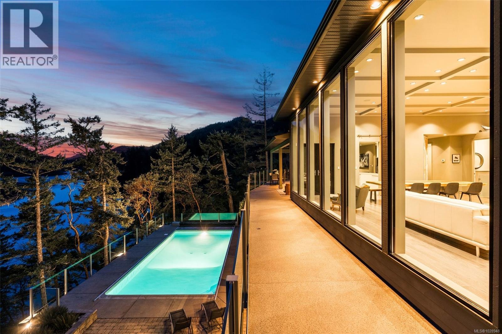 A rare waterfront offering set on over 5 acres with a private dock, valuable foreshore lease, and deep-water moorage, this private gated estate provides direct access to the calm, protected waters of Finlayson Arm for year-round boating, fishing, kayaking, and coastal exploration. Perfectly positioned above the inlet, the home captures breathtaking ocean, mountain, and rugged West Coast views from one of the most extraordinary vantage points on Vancouver Island. Thoughtfully designed to harmonize with its natural surroundings, this custom-built contemporary residence blends modern luxury with the tranquility of coastal living. Expansive windows and natural materials create an inviting and luminous interior, where the beauty of the outdoors becomes part of everyday living. With over 4,500 sq. ft. of beautifully finished living space, the home features five bedrooms and five bathrooms, along with generous living and entertaining areas that flow seamlessly from one space to the next. Every detail has been considered to offer both comfort and elegance, whether enjoying quiet moments or hosting family and friends. The outdoors are equally impressive. A pool, hot tub, and outdoor shower provide a private resort-like experience, while the expansive grounds offer unparalleled privacy and connection to nature. From the dock, residents can enjoy direct water access for boating, kayaking, or fishing, while taking in the dramatic coastal scenery and abundant wildlife. This waterfront sanctuary combines privacy, luxury, and natural beauty in a setting that is both exclusive and serene. With over five acres of land, a thoughtfully designed home, and rare waterfront amenities, it offers an exceptional West Coast lifestyle, just minutes from nearby communities while feeling a world apart. An unparalleled opportunity to own one of Vancouver Island’s most extraordinary coastal estates. (id:2469)