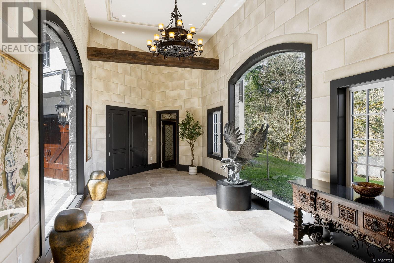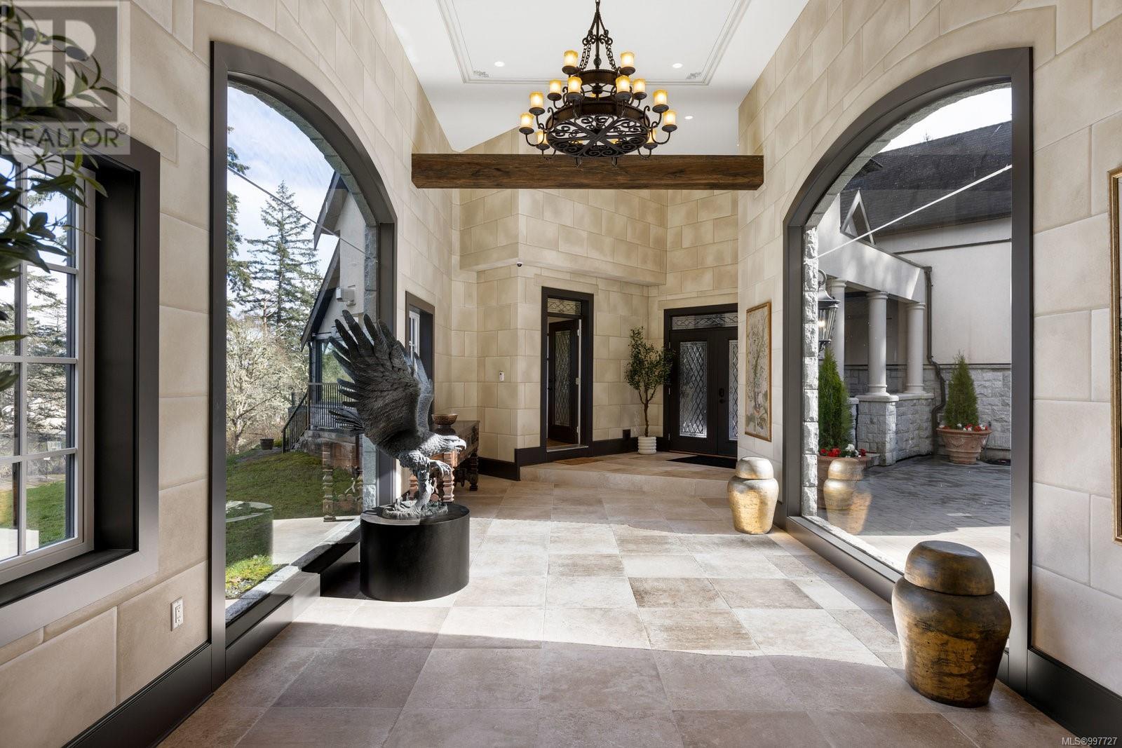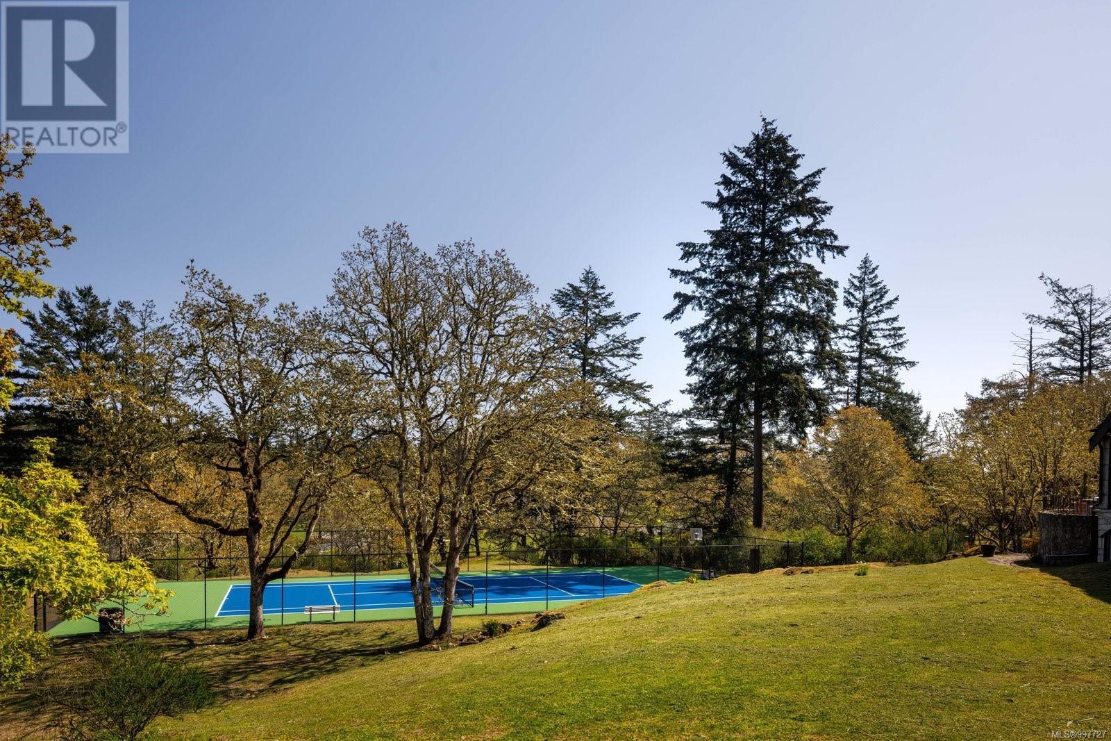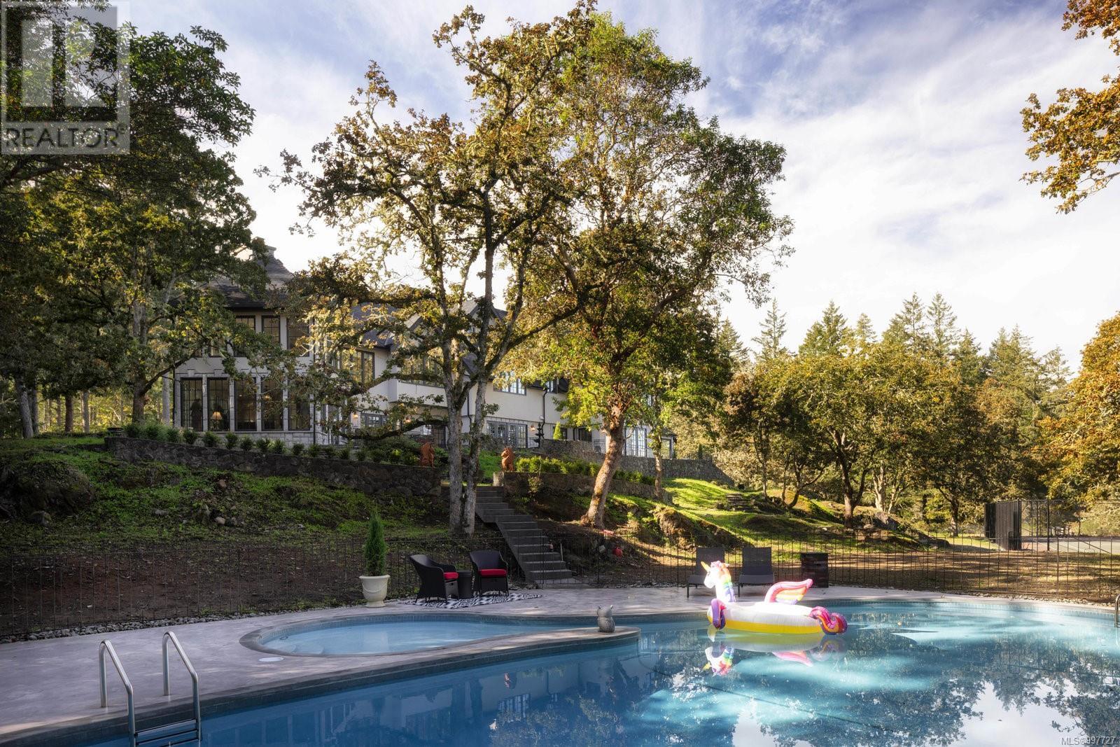 Welcome to 1708 Woodsend Drive — an exceptional legacy property set on 10.9 gated, fully fenced acres just 15 minutes from downtown Victoria. This 7-bedroom, 8-bathroom estate offers luxury, privacy, and timeless elegance. Recently transformed with top-tier finishes and modern systems, the home features a dramatic foyer with 20-foot ceilings, marble-inlaid stone flooring, and custom millwork throughout. Entertain in grand formal living and dining rooms, relax in the sunroom or theatre, or work from the private office. The chef’s kitchen is outfitted with premium appliances including Wolf and Miele, plus a deluxe coffee station and butler’s kitchen. Two laundry rooms ensure convenience for family life or hosting. The primary suite is a retreat of its own, featuring a Ritz Paris–inspired ensuite, fireplace, walk-in closets, blackout shades, and private sunroom. A separate 2-bedroom guest suite, connected via a glass breezeway, offers privacy and comfort. Outdoors, enjoy a tennis/basketball court, oversized pool, restored pool house, stone terraces, firepit, and multiple seating areas—all surrounded by professional landscaping. Built with granite, stucco, new roofing, windows, and modern mechanicals, this estate combines old-world charm with contemporary functionality. Whether you’re a large family, entertainer, or discerning buyer, this home offers a rare lifestyle of sophistication and space—a true legacy property. (id:2469)