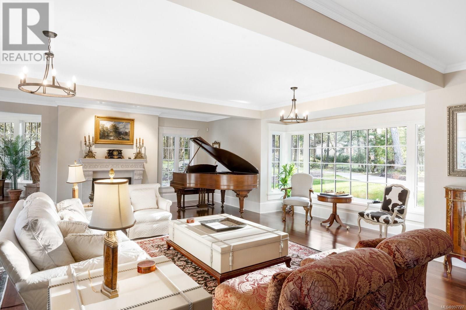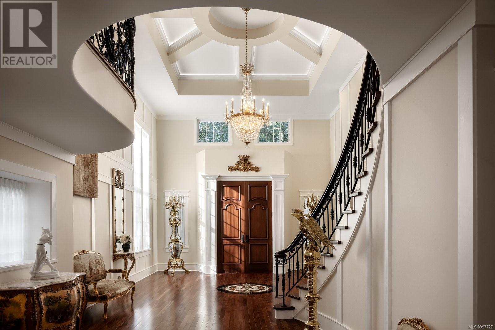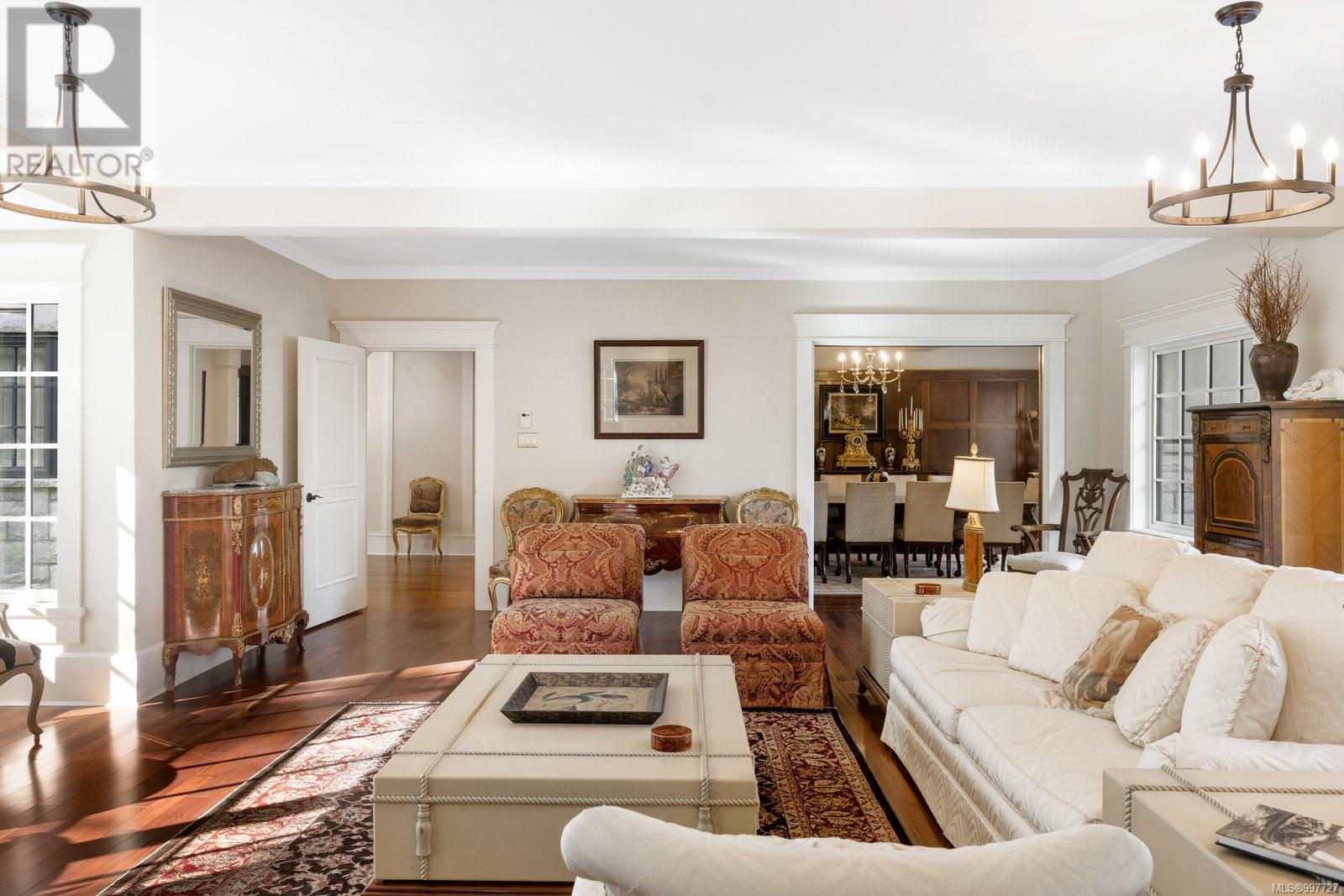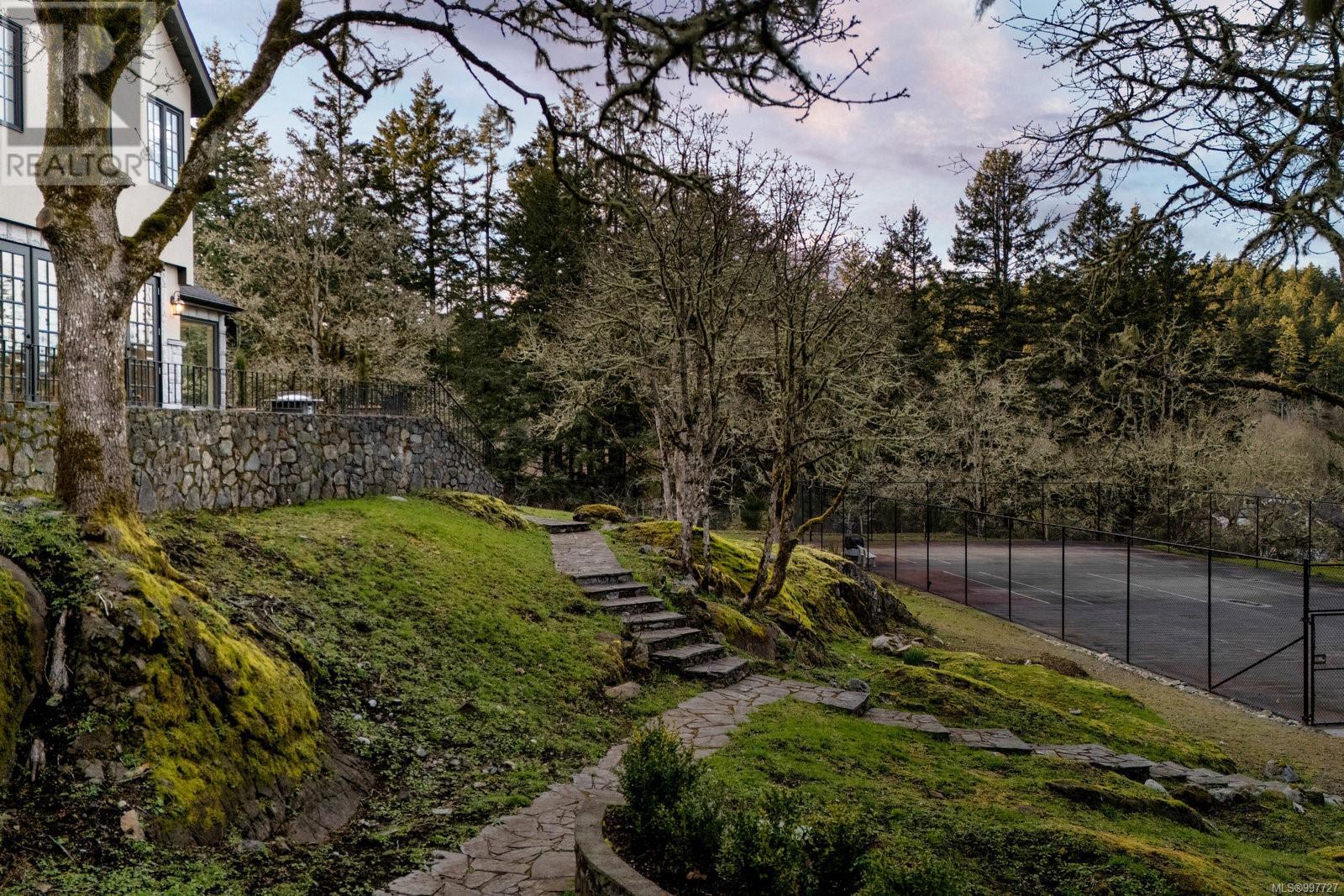 Welcome to 1708 Woodsend Drive — an exceptional legacy property set on 10.9 gated, fully fenced acres just 15 minutes from downtown Victoria. This 7-bedroom, 8-bathroom estate offers luxury, privacy, and timeless elegance. Recently transformed with top-tier finishes and modern systems, the home features a dramatic foyer with 20-foot ceilings, marble-inlaid stone flooring, and custom millwork throughout. Entertain in grand formal living and dining rooms, relax in the sunroom or theatre, or work from the private office. The chef’s kitchen is outfitted with premium appliances including Wolf and Miele, plus a deluxe coffee station and butler’s kitchen. Two laundry rooms ensure convenience for family life or hosting. The primary suite is a retreat of its own, featuring a Ritz Paris–inspired ensuite, fireplace, walk-in closets, blackout shades, and private sunroom. A separate 2-bedroom guest suite, connected via a glass breezeway, offers privacy and comfort. Outdoors, enjoy a tennis/basketball court, oversized pool, restored pool house, stone terraces, firepit, and multiple seating areas—all surrounded by professional landscaping. Built with granite, stucco, new roofing, windows, and modern mechanicals, this estate combines old-world charm with contemporary functionality. Whether you’re a large family, entertainer, or discerning buyer, this home offers a rare lifestyle of sophistication and space—a true legacy property. (id:2469)