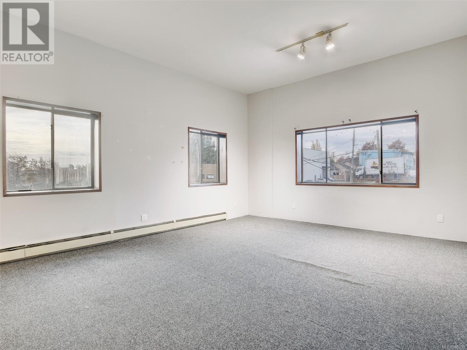 This bright upper floor unit is comprised of office space, finished open space, newer kitchen, and bathroom facilities. The kitchen offers a Stainless steel microwave hood fan, dishwasher and stove. The unit has some new flooring and is freshly painted. 4 on-site parking spots plus street parking. 200 amp service. Baseboard heat. LED lighting throughout, earthquake-proof construction. A few blocks from Uptown with easy access to #1 Hwy. Basic rent is $14.50 per sf/annum with a renewal option, triple net costs are $8.98/sf. Need a smaller space? This unit could potentially be split into two units instead. Immediate possession is possible. (id:2469)